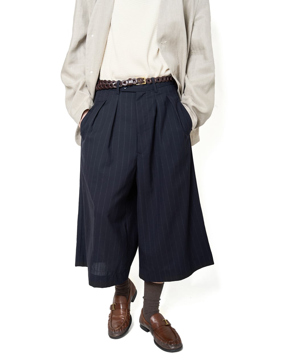 m's braque for MURPHH "CROPPED TUCKED BAGGY PANTS〔NAVY CHALK〕"