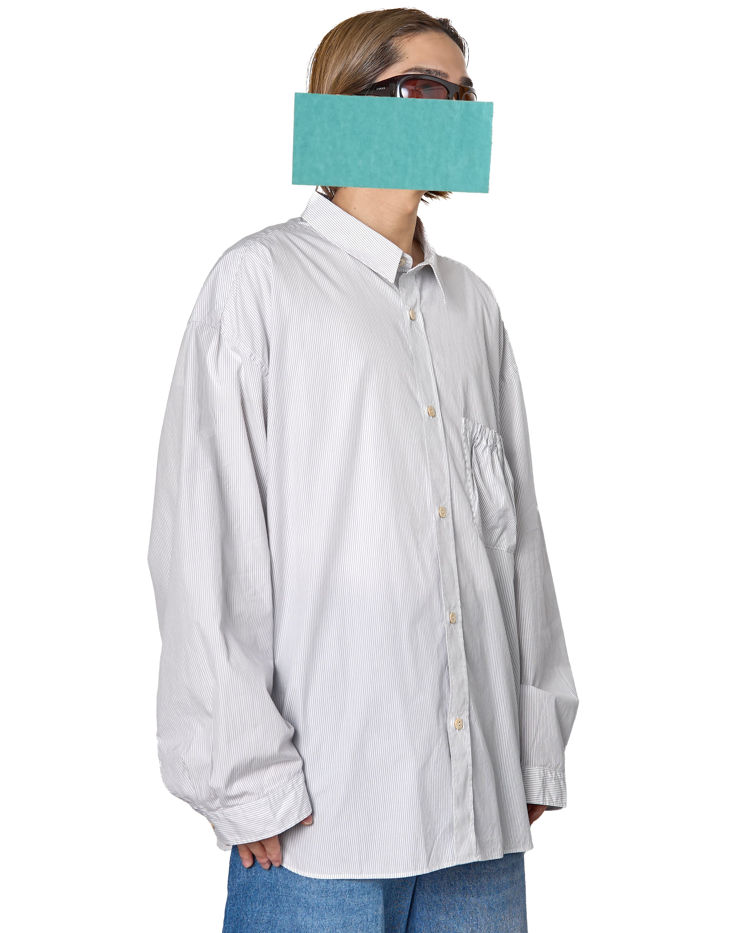refomed "WRIST PATCH WIDE SHIRT〔STRIPE〕"