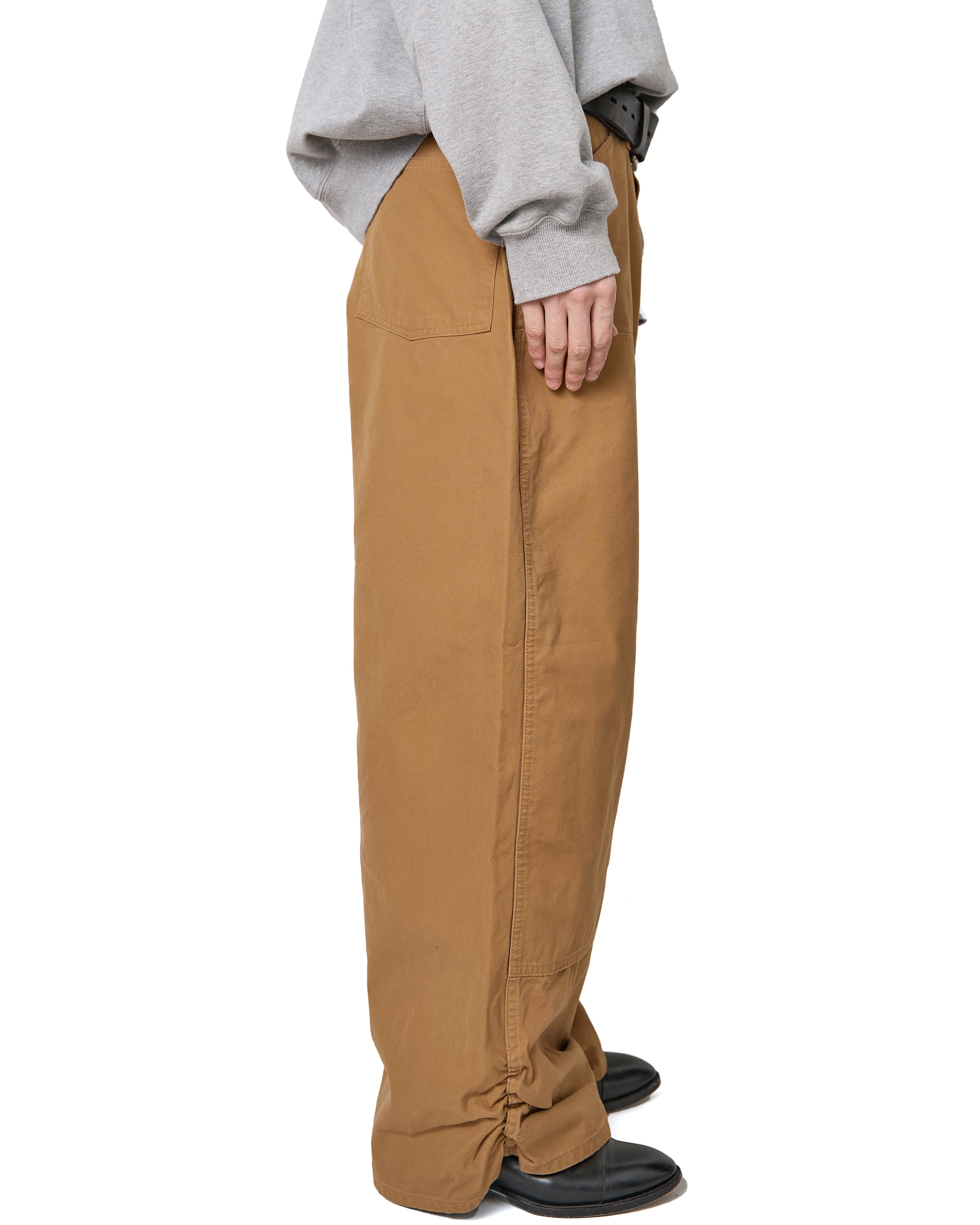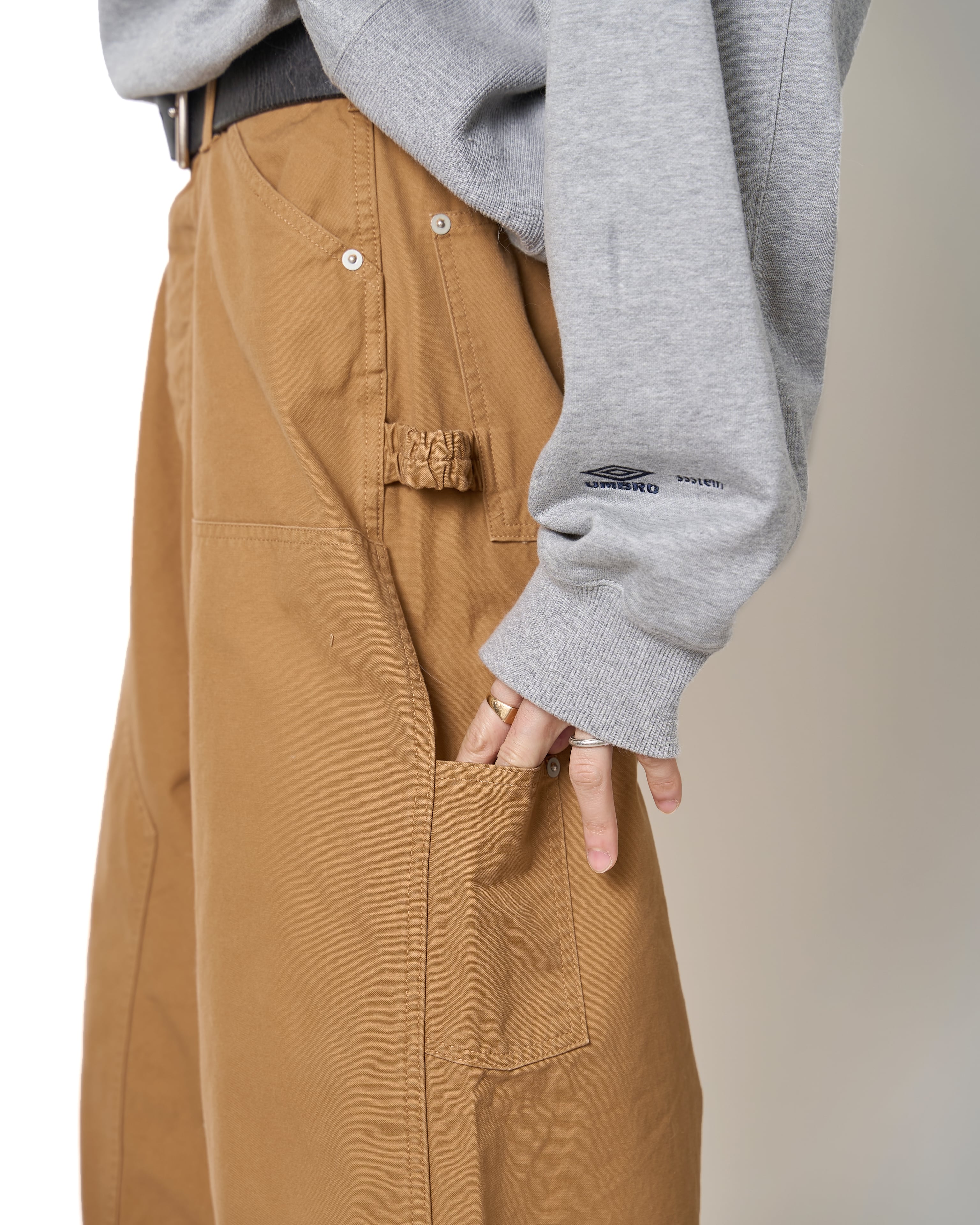 超超ワイドや、5超など職人たちの中ではパンツの太さでキャラクター性を表現していたことからシルエット調整をして制作された、ダブルニーパンツ。裾にはギャザーが入った従来のデザインをアップデートしたモデルです。着用していくと経年変化も期待でき、ヴィンテージアイテムを思わせる退色した色味になっていくのも魅力的な。