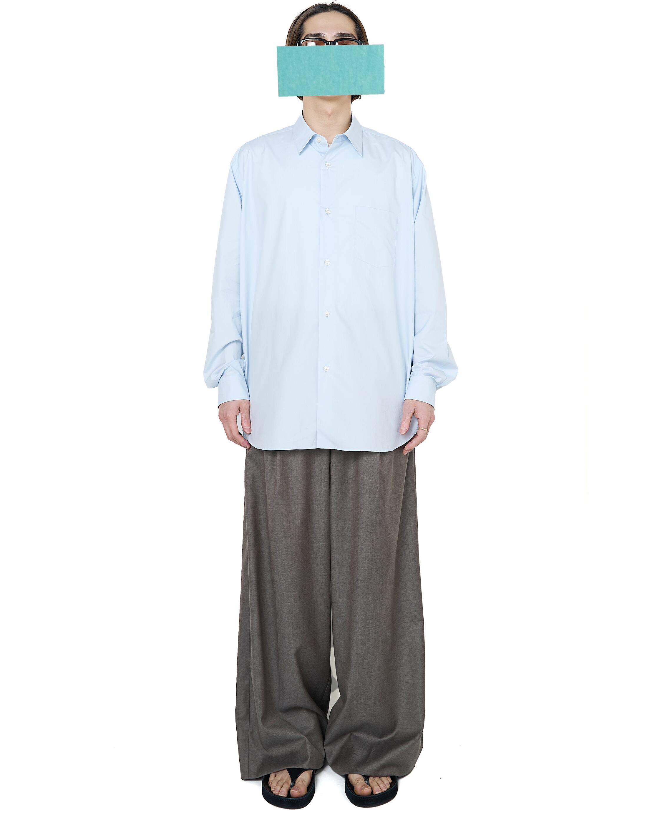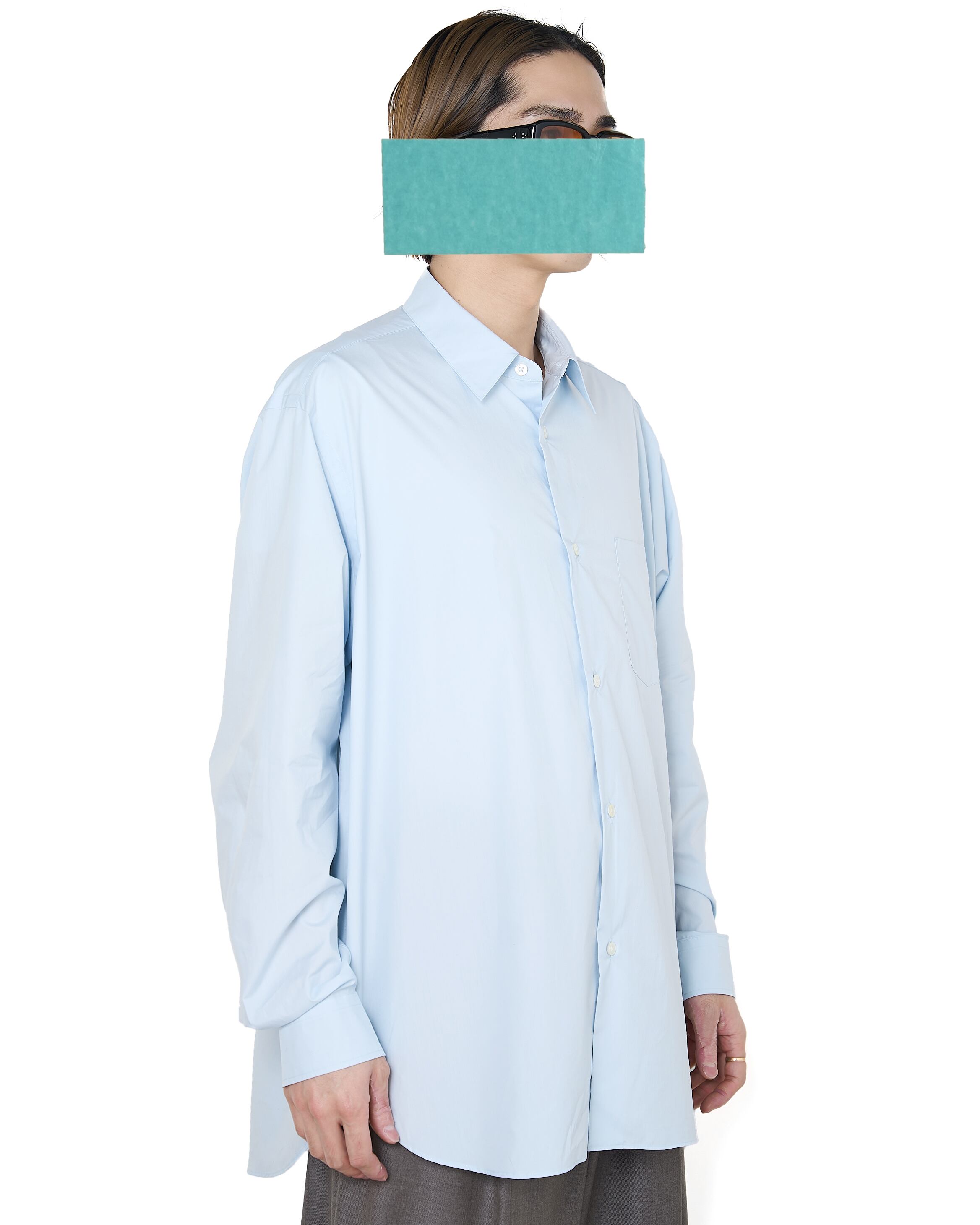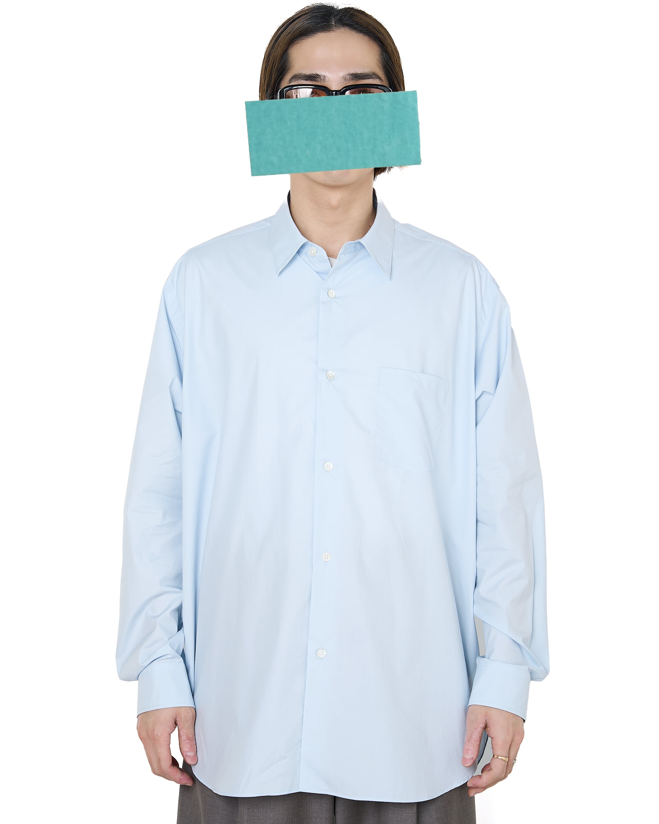 ssstein "SUVIN COTTON OVERSIZED REGULAR COLLAR SHIRT〔OFF BLUE〕"