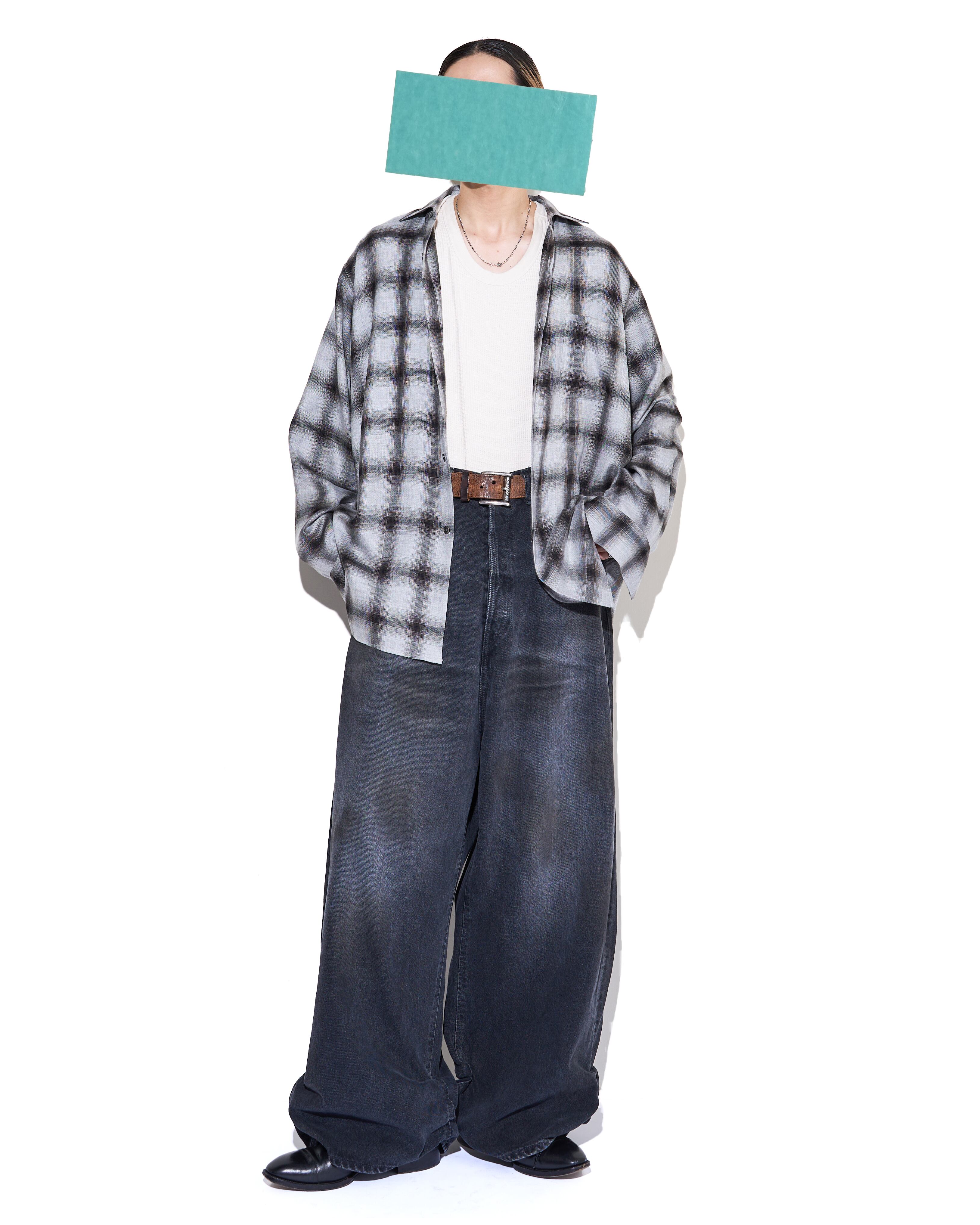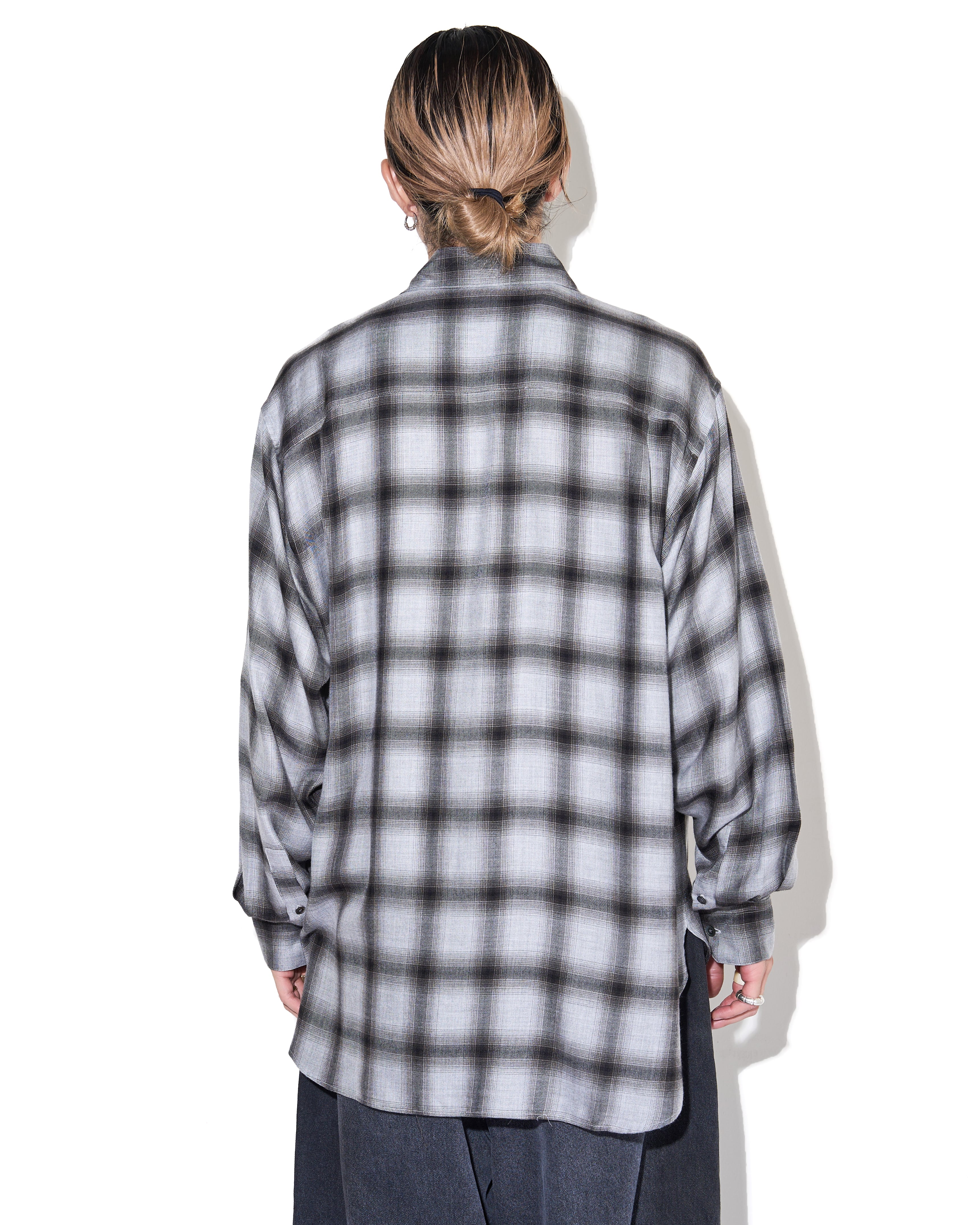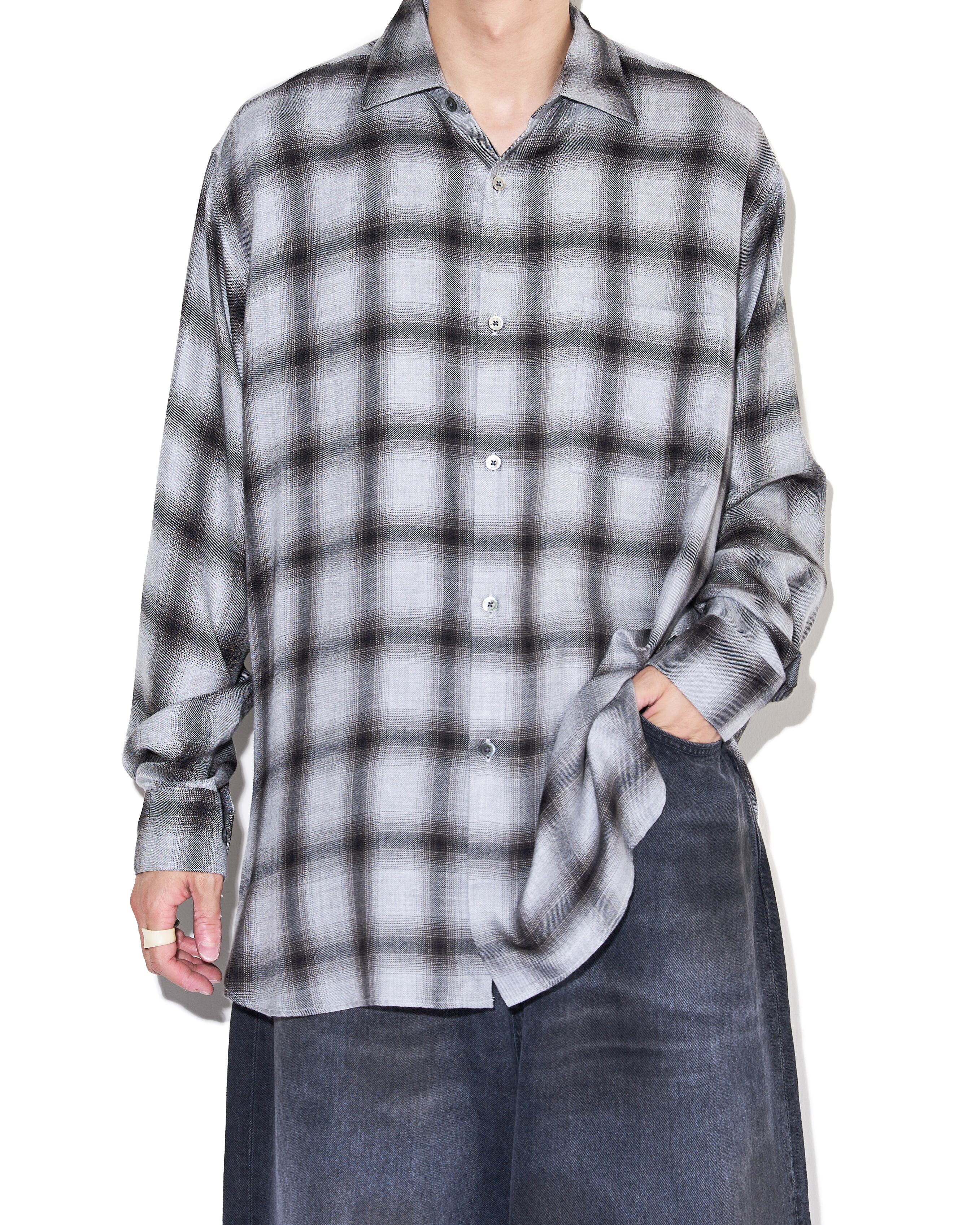 ssstein "RAYON/LYOCELL CHECK OVERSIZED DOWN PAT SHIRT〔BLACK OMBRE〕"