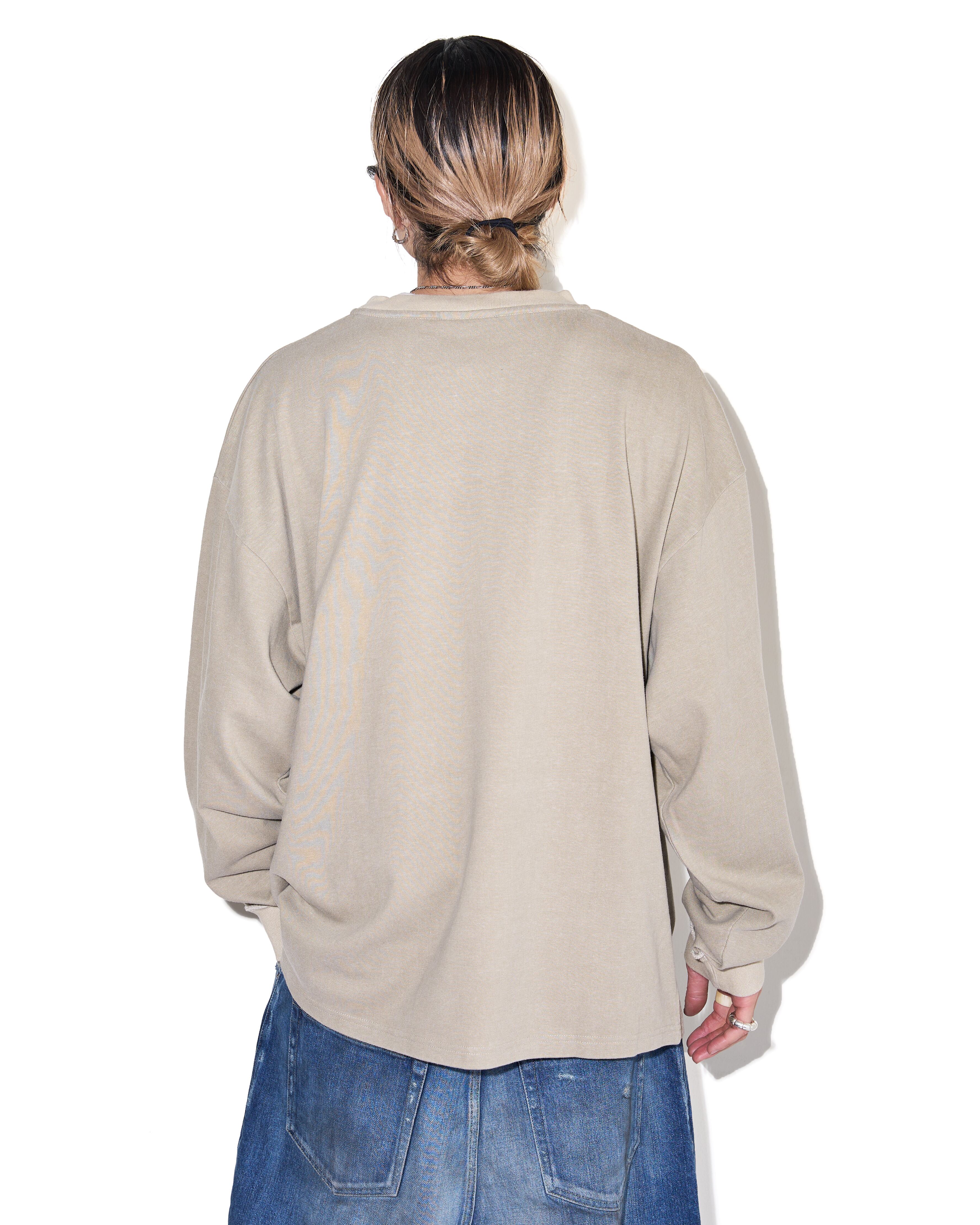 シーズンテーマを象徴する一着。 20/1天竺を使用し、製 品染めを思わせる加工を施すことで、フェード感のある 独特の風合いに仕上げています。着込むほどに生地が馴染み、 時間とともに表情が深まっていきます。
