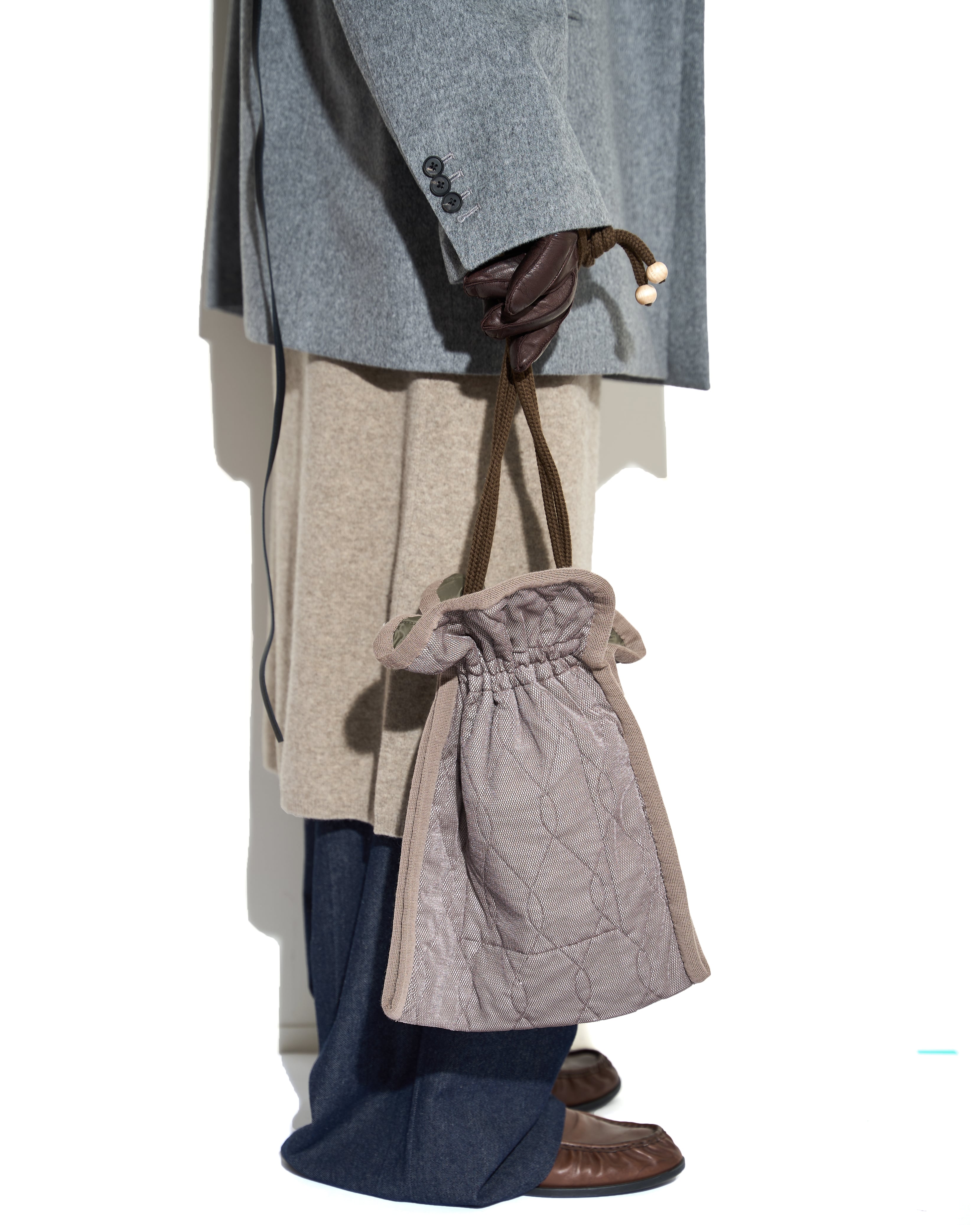 m's braque "SILK-LOFT QUILTING DRAWSTRING BAG〔KHAKI〕"