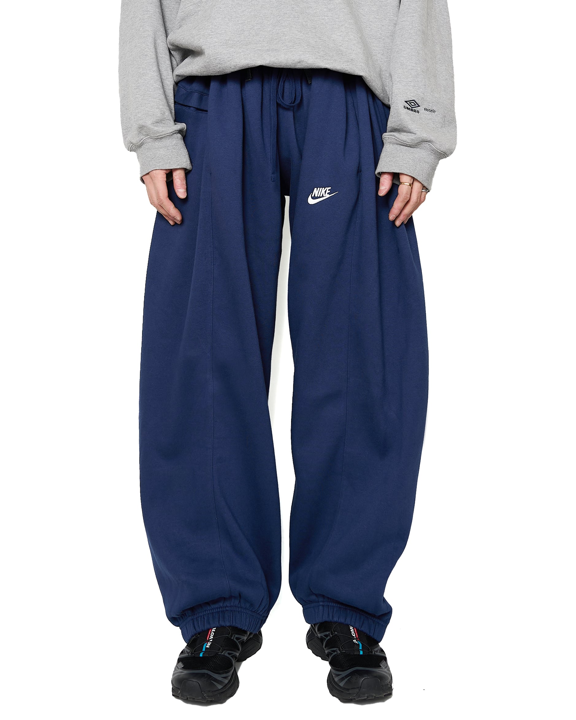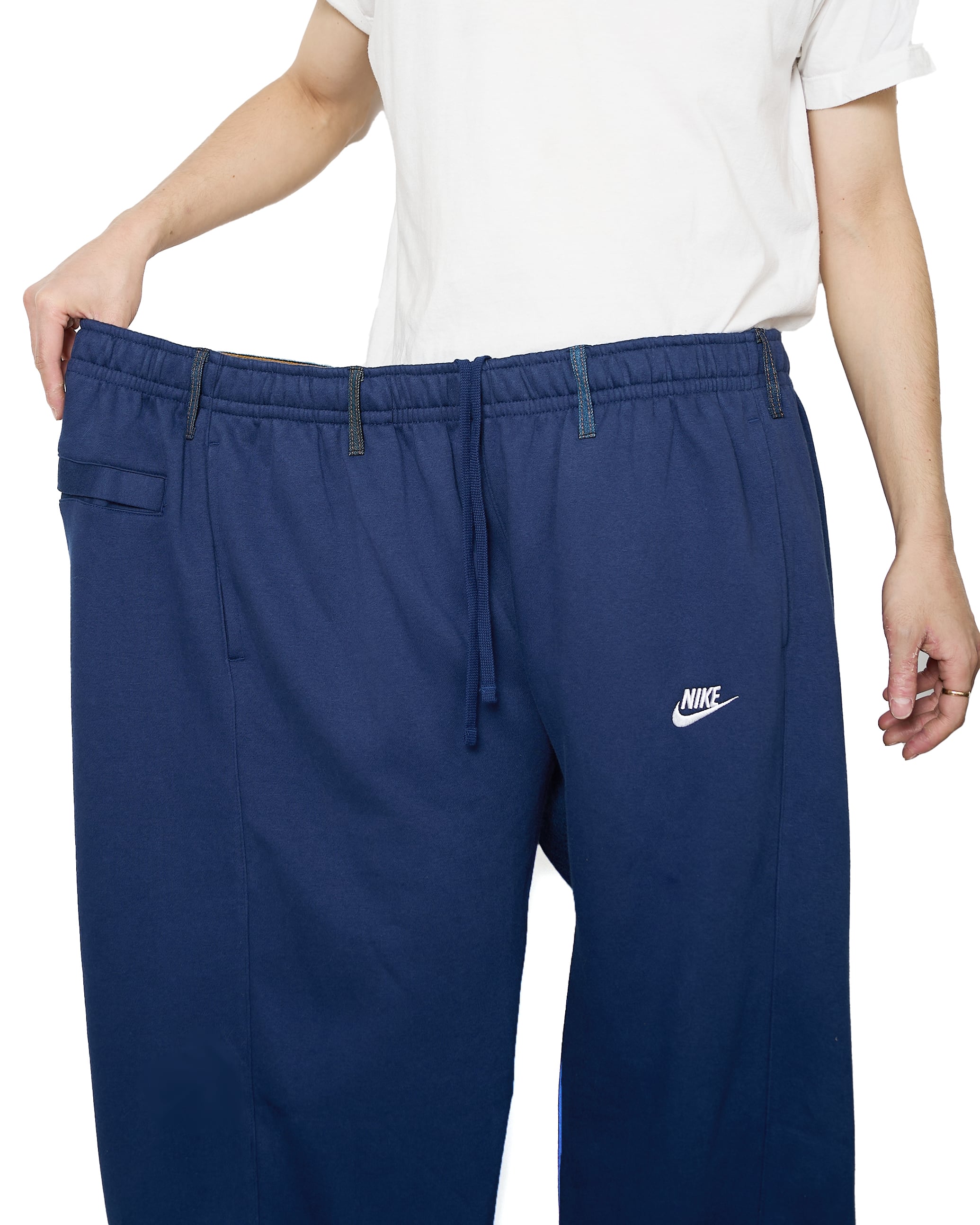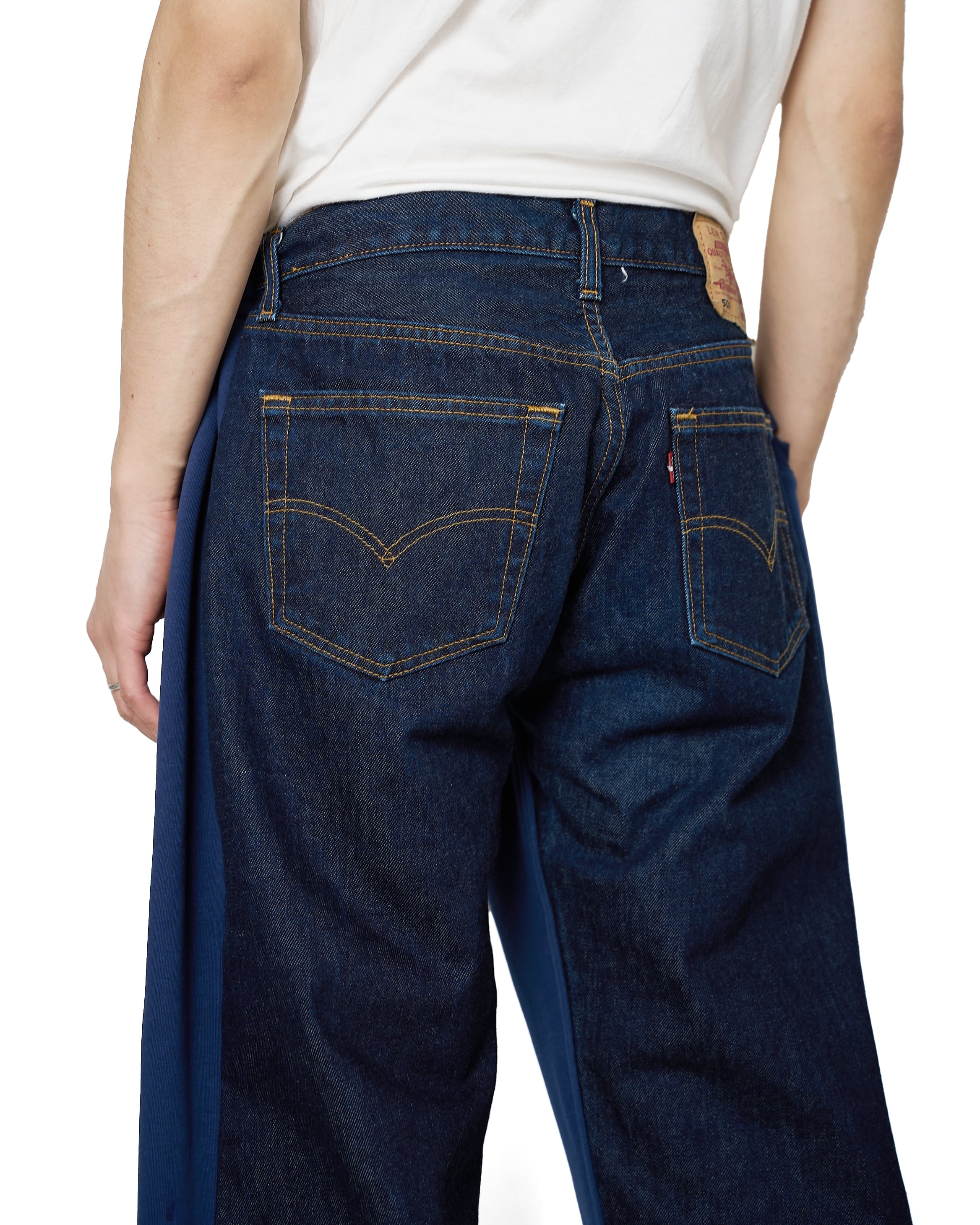 フロントにNIKEのスウェットパンツ、バックにLevi'sのジーンズをドッキングした、モノのアップサイクルを目的としたパンツ。不朽の名作、合わせやすさもさることながら、持っていると幸せな気分になれます。