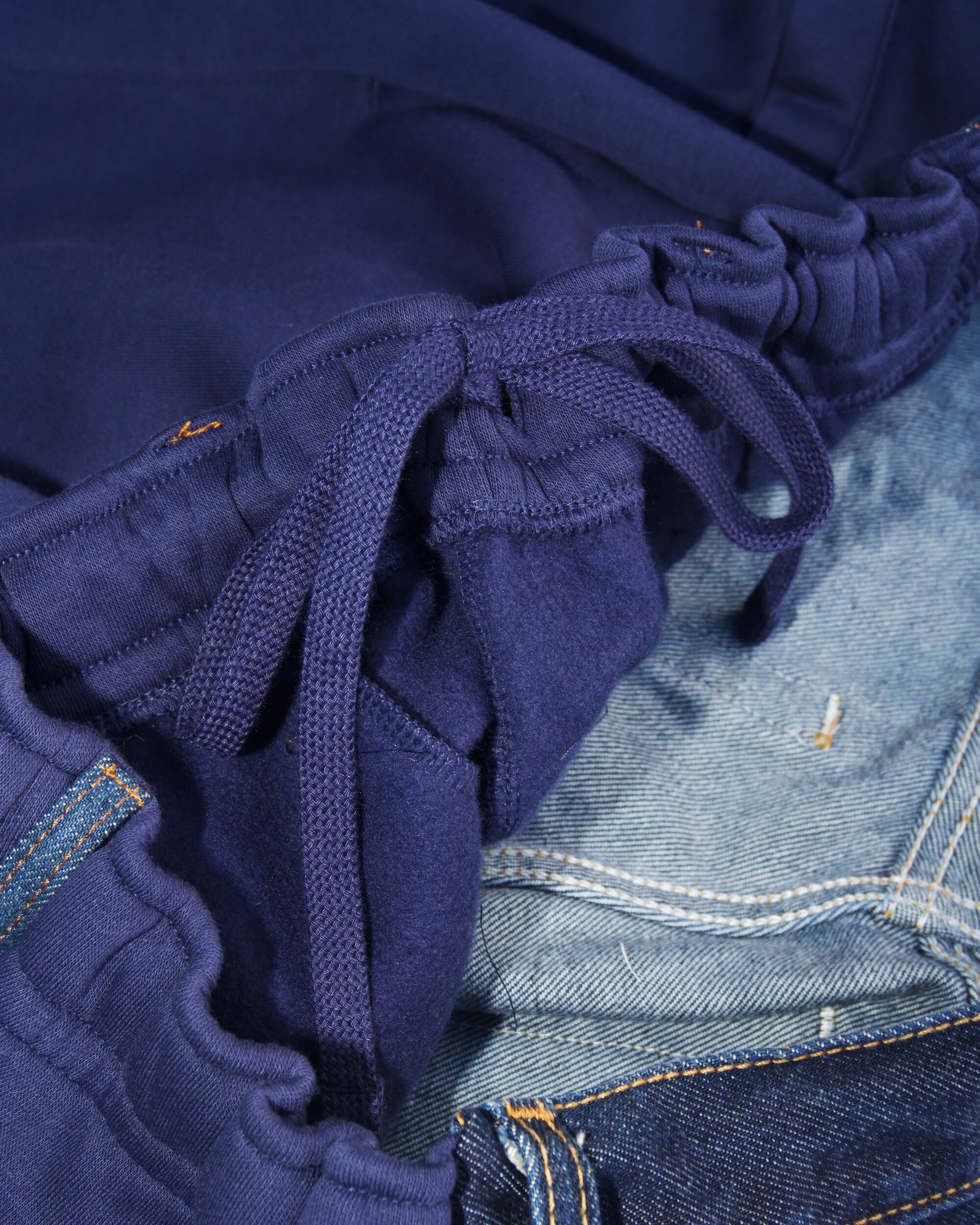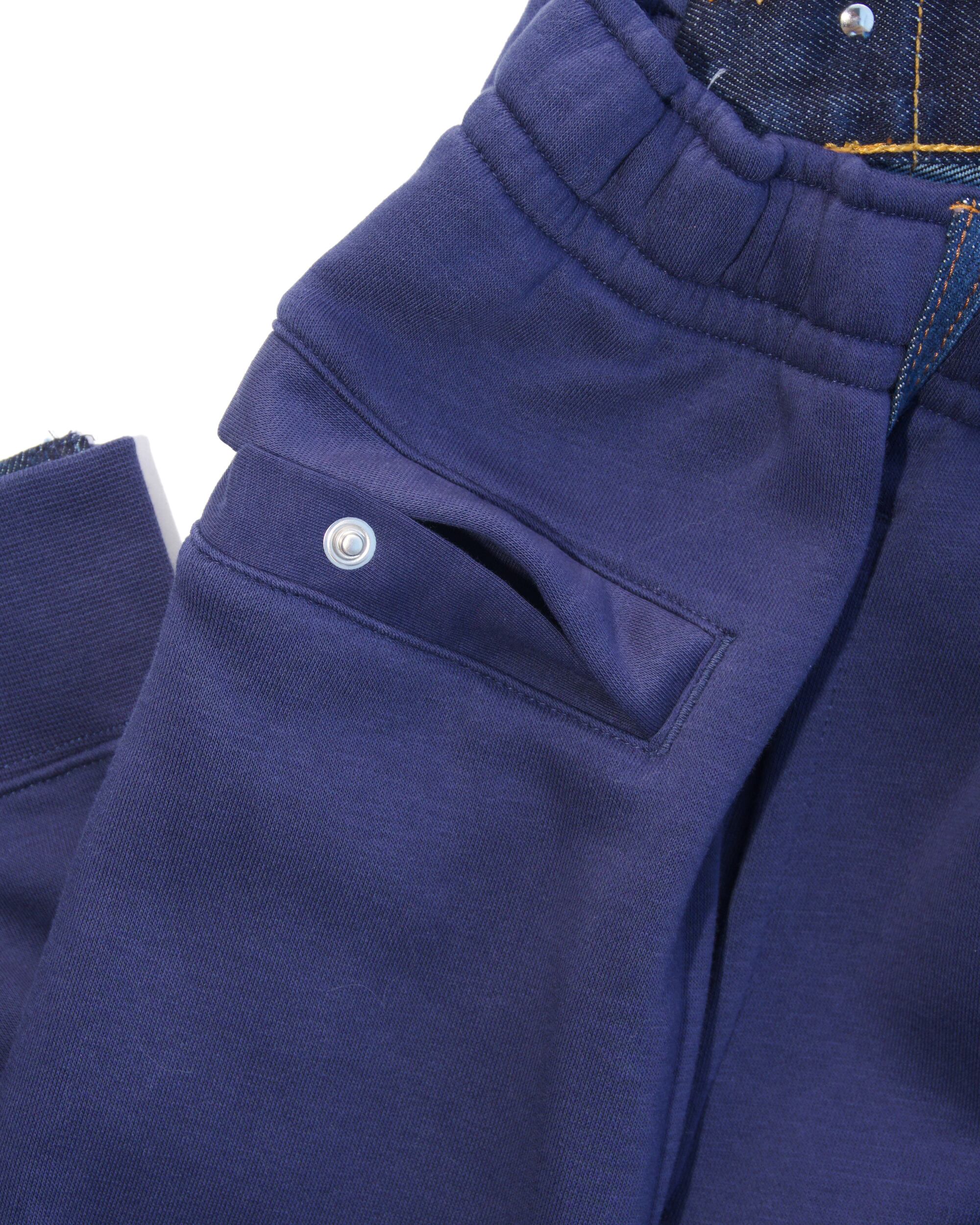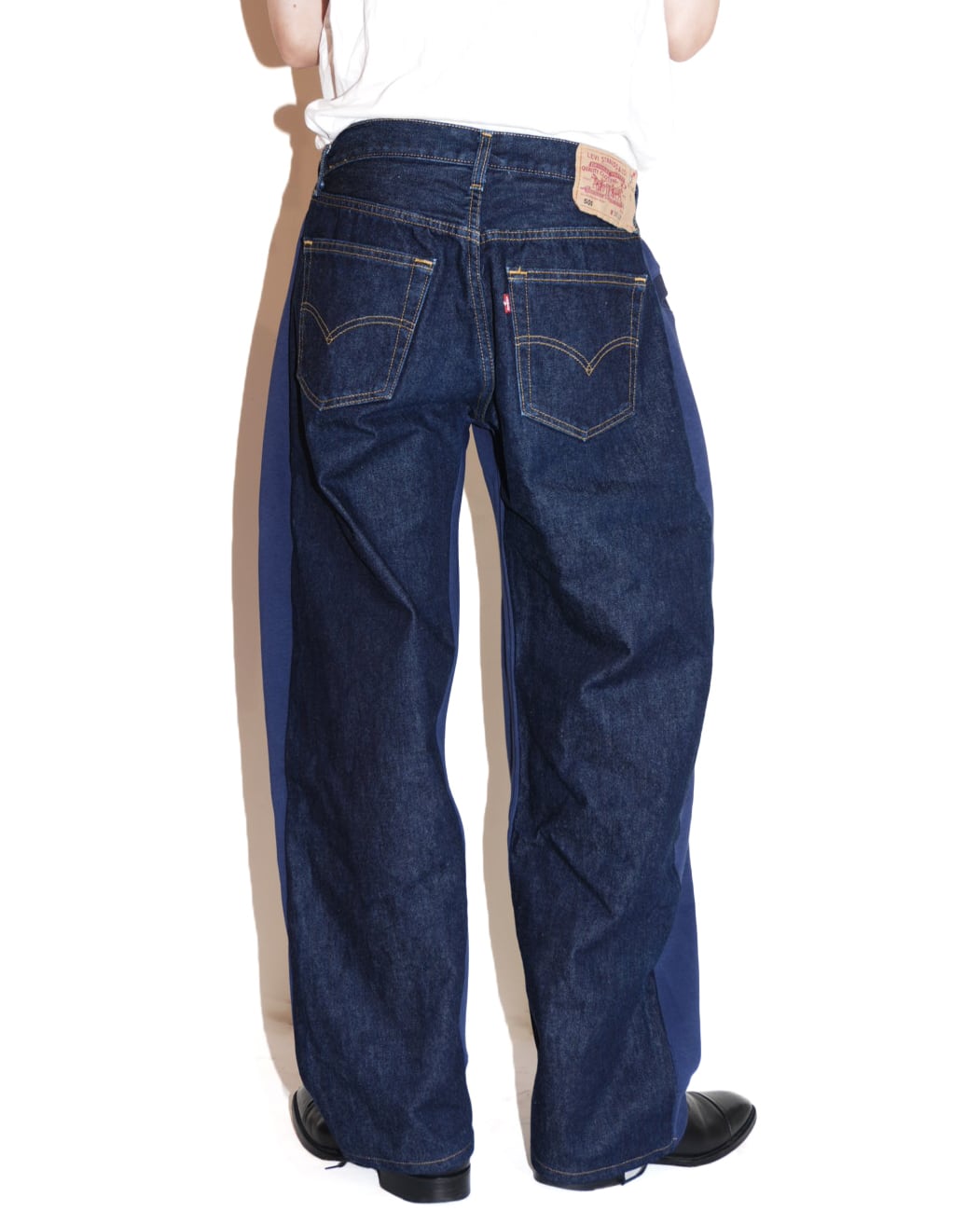 フロントにNIKEのスウェットパンツ、バックにLevi'sのジーンズをドッキングした、モノのアップサイクルを目的としたパンツ。不朽の名作、合わせやすさもさることながら、持っていると幸せな気分になれます。