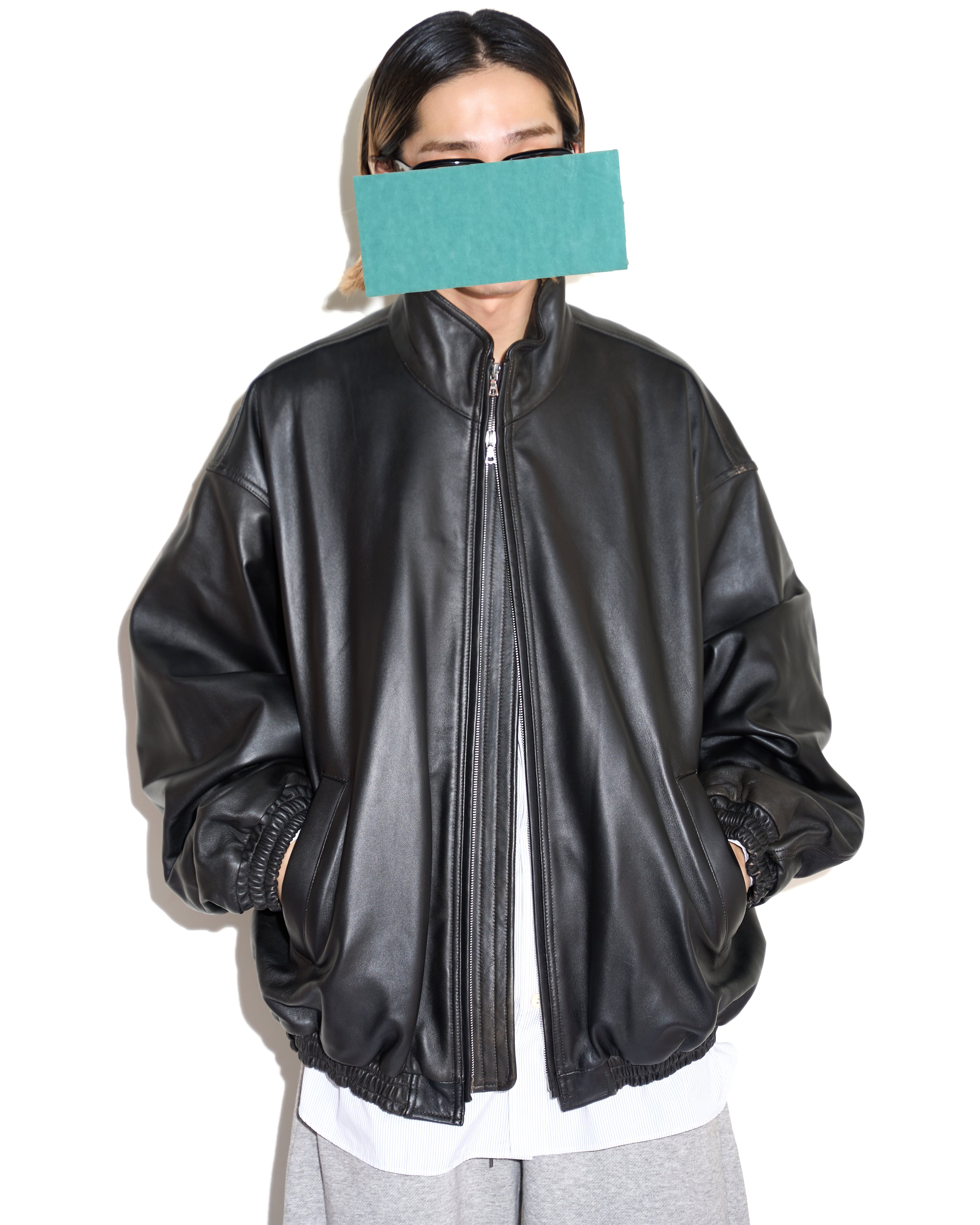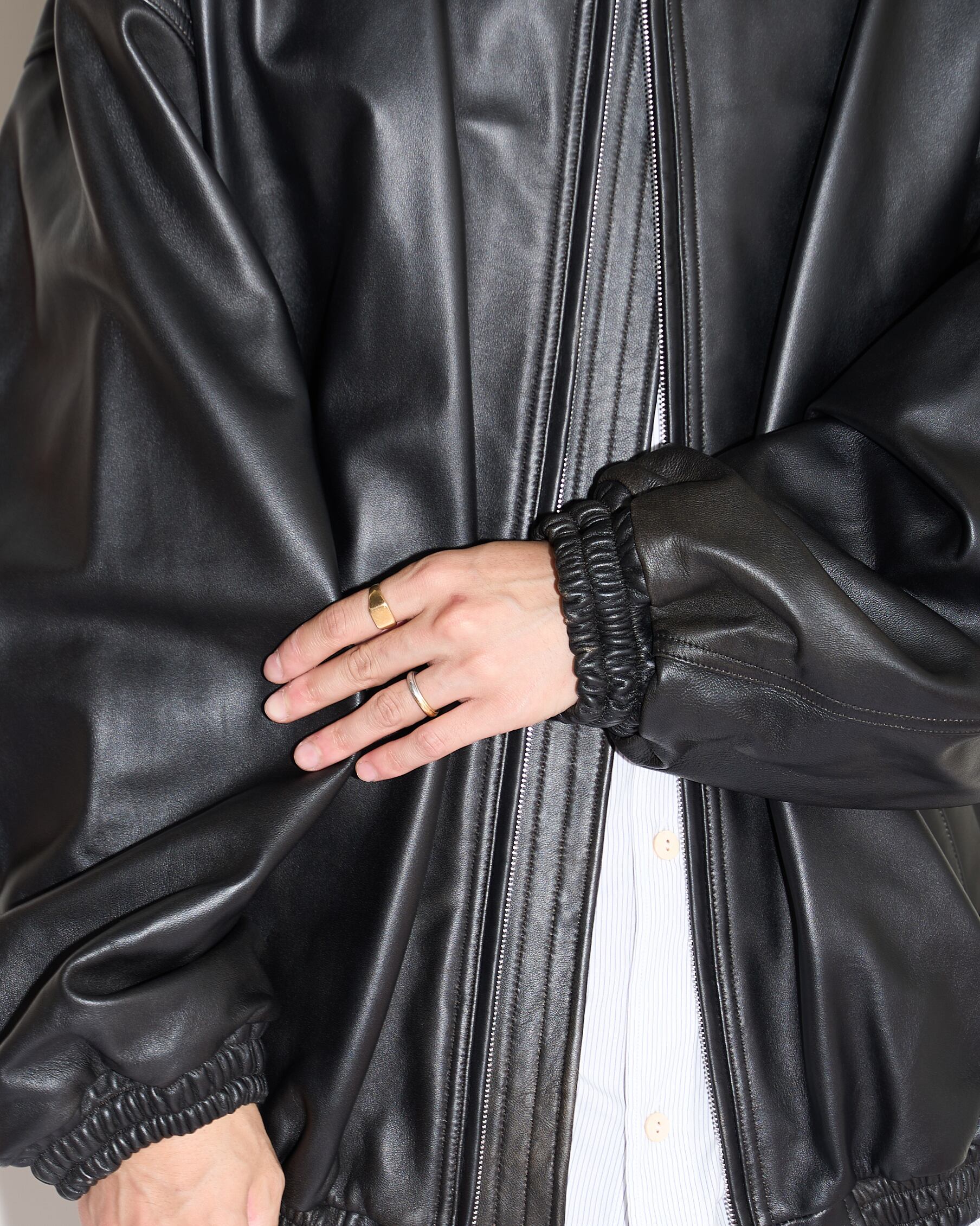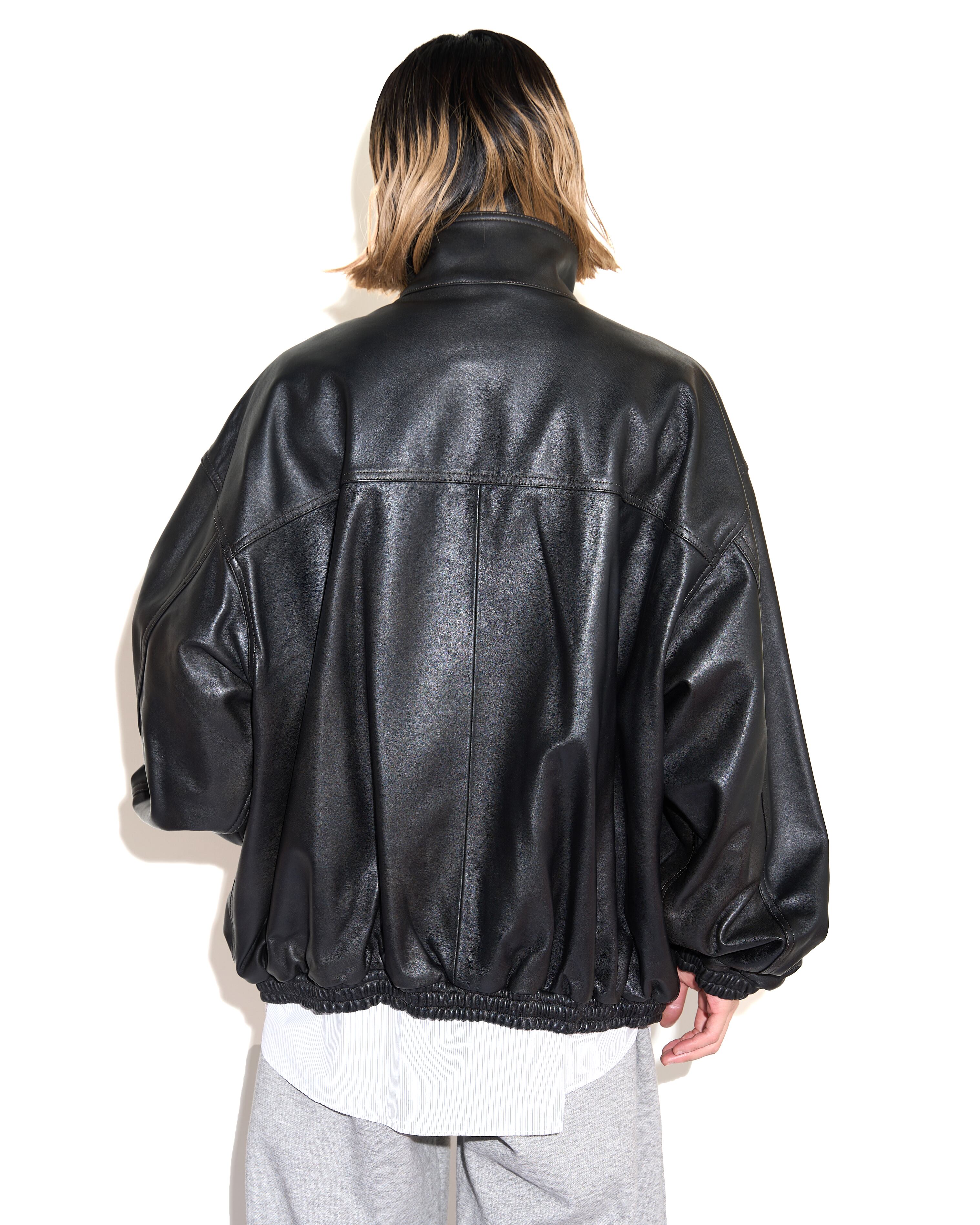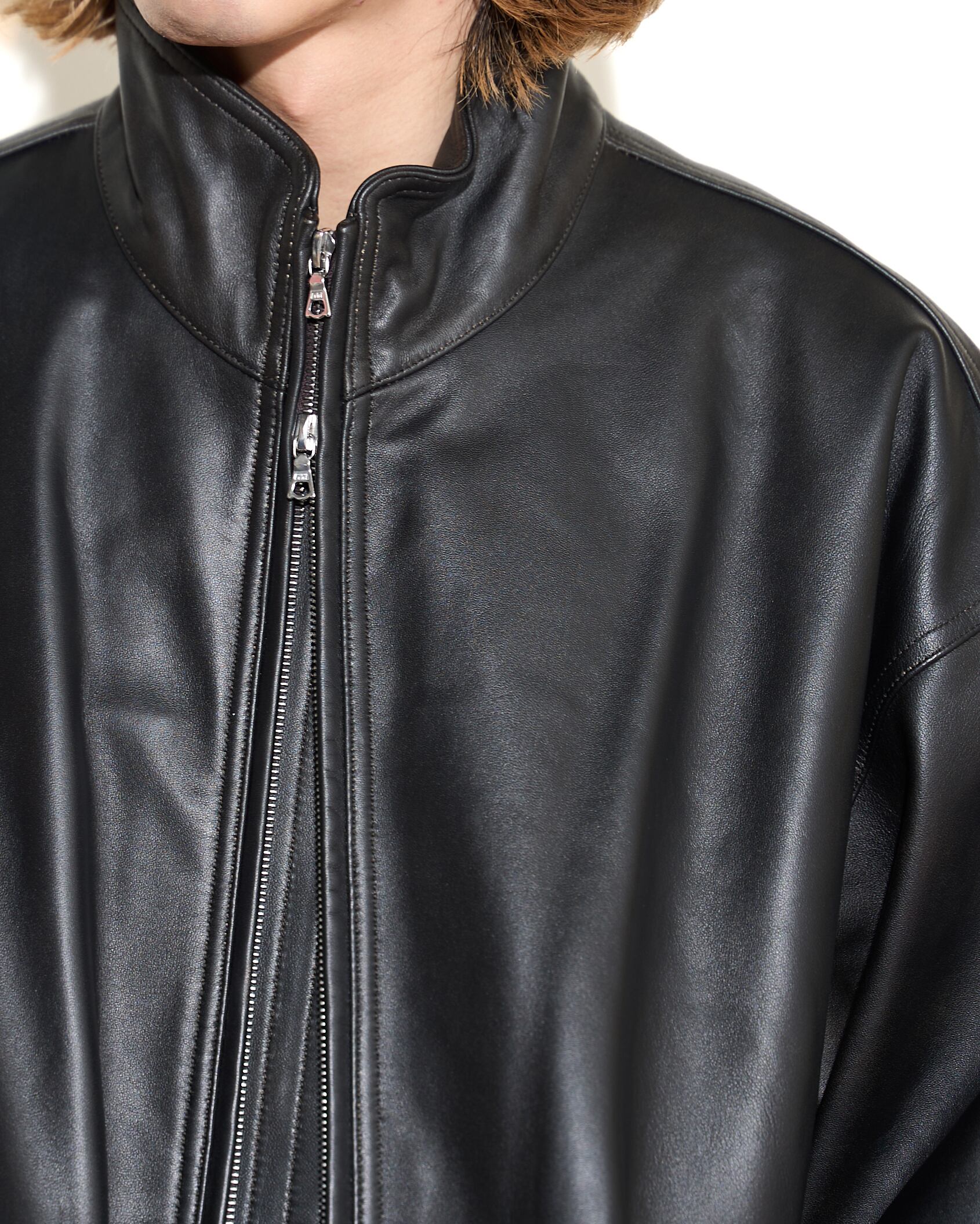 柔らかくしなやかなシープレザーを使用したスタンドカラージャケット。無駄を削ぎ落としたシンプルなデザインで、トラックジャケットのようなディテール。