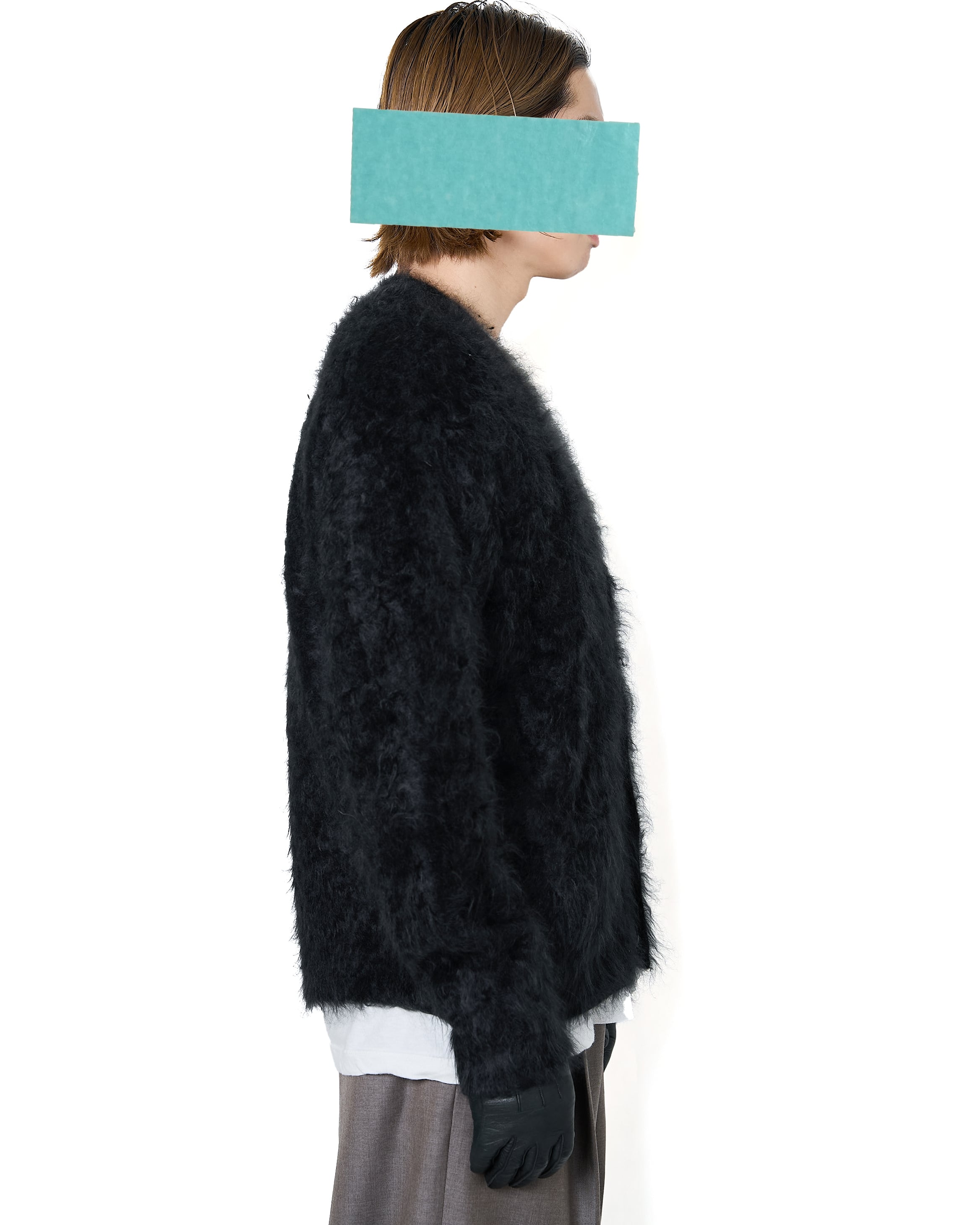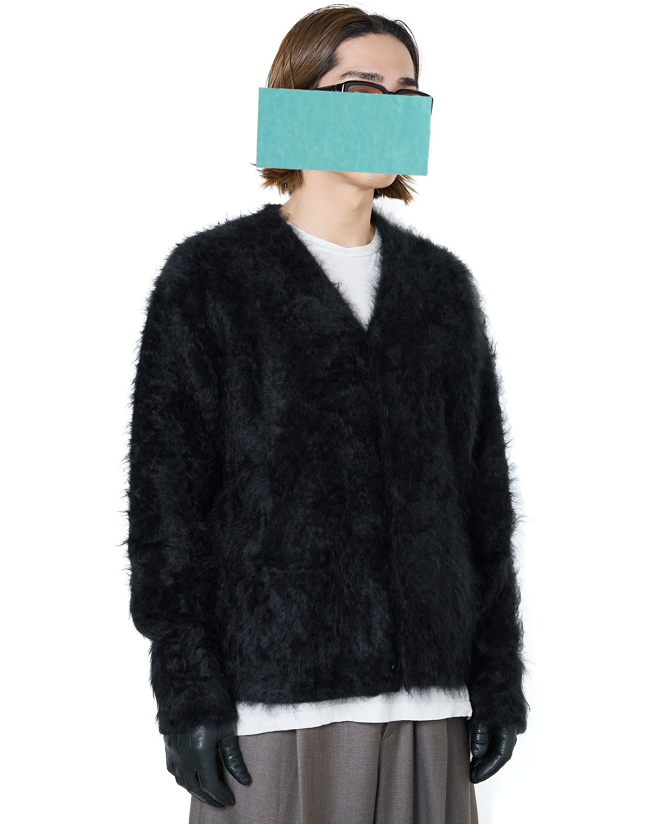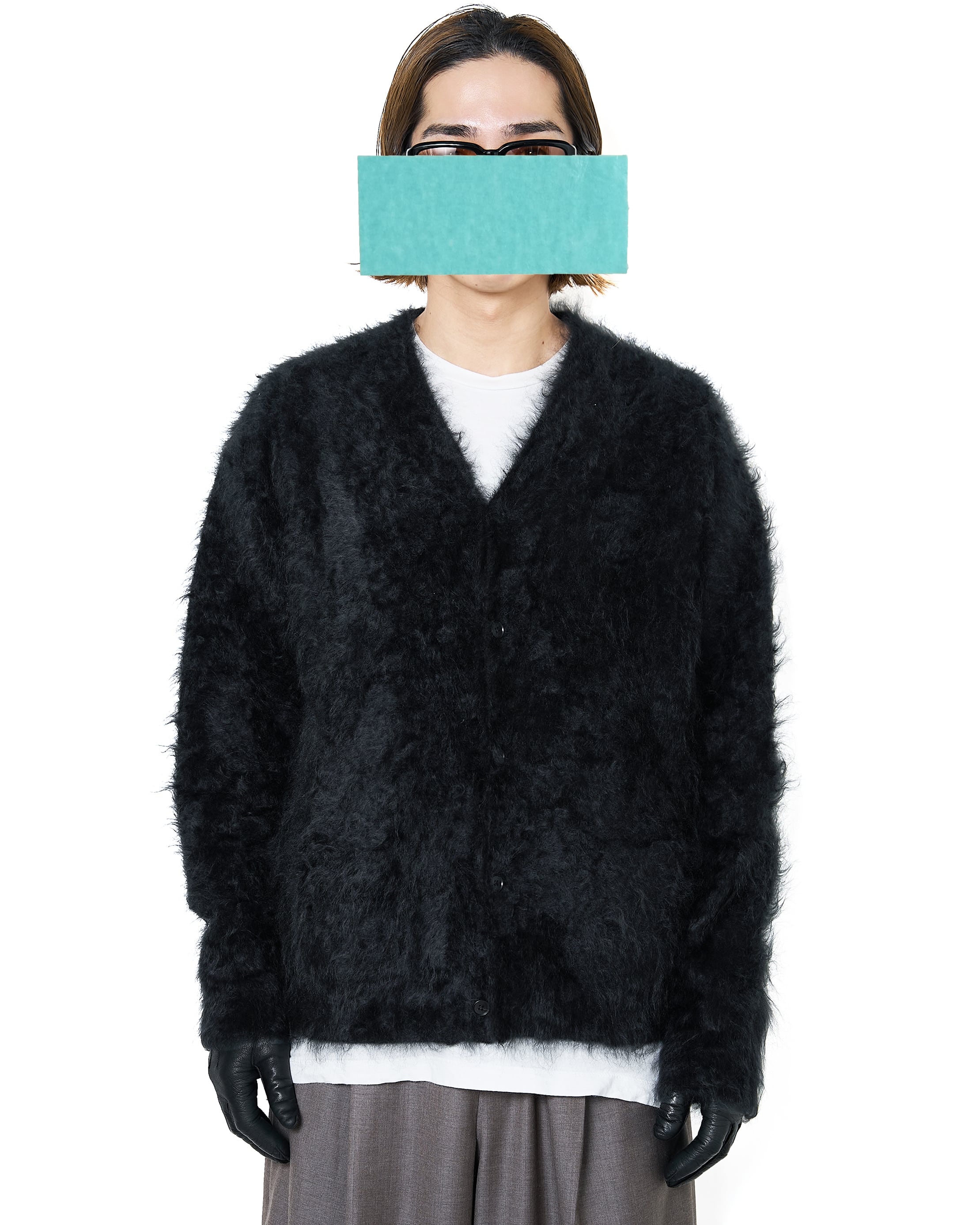 ssstein "CASHMERE SHAGGY KNIT V NECK CARDIGAN〔BLACK〕"