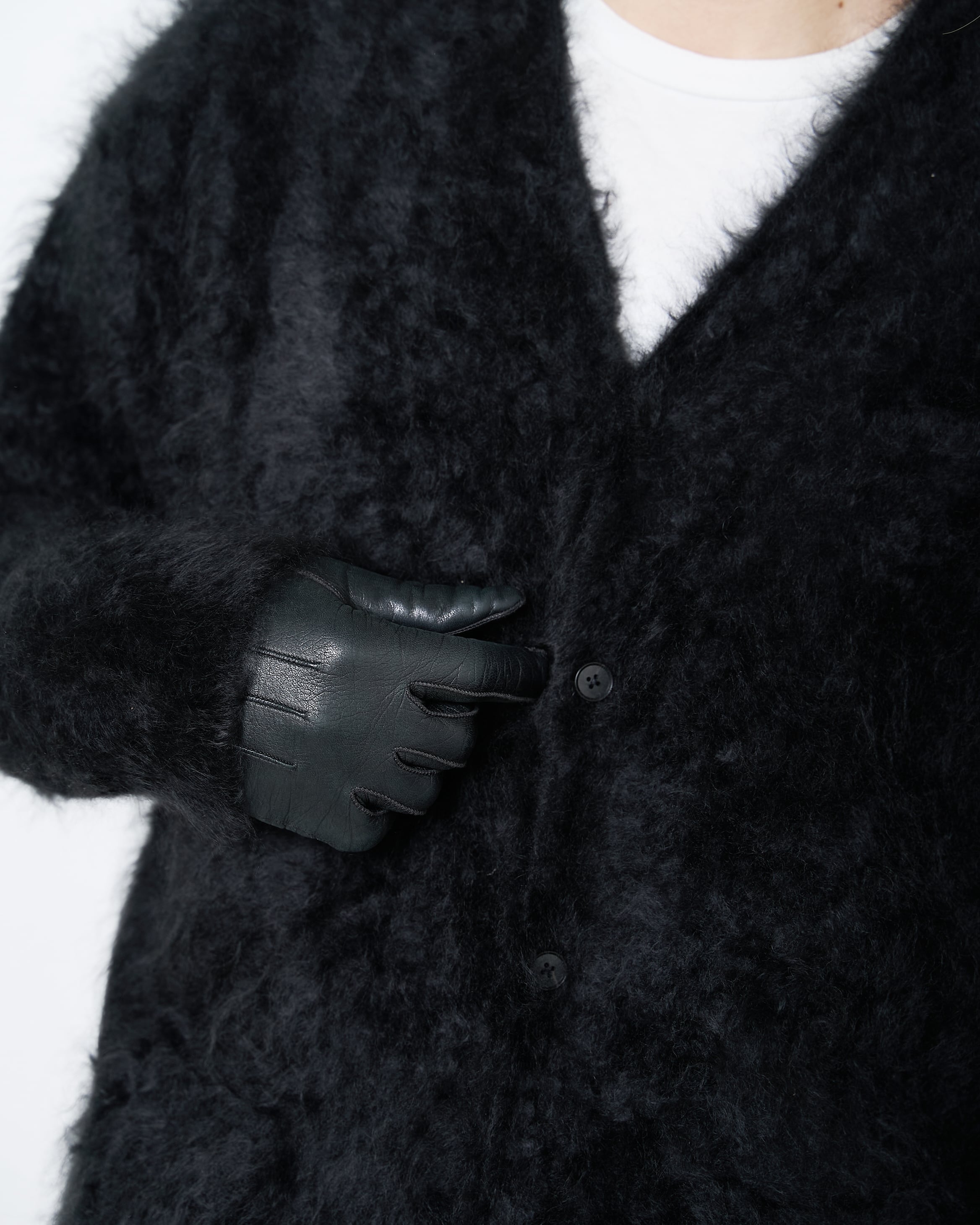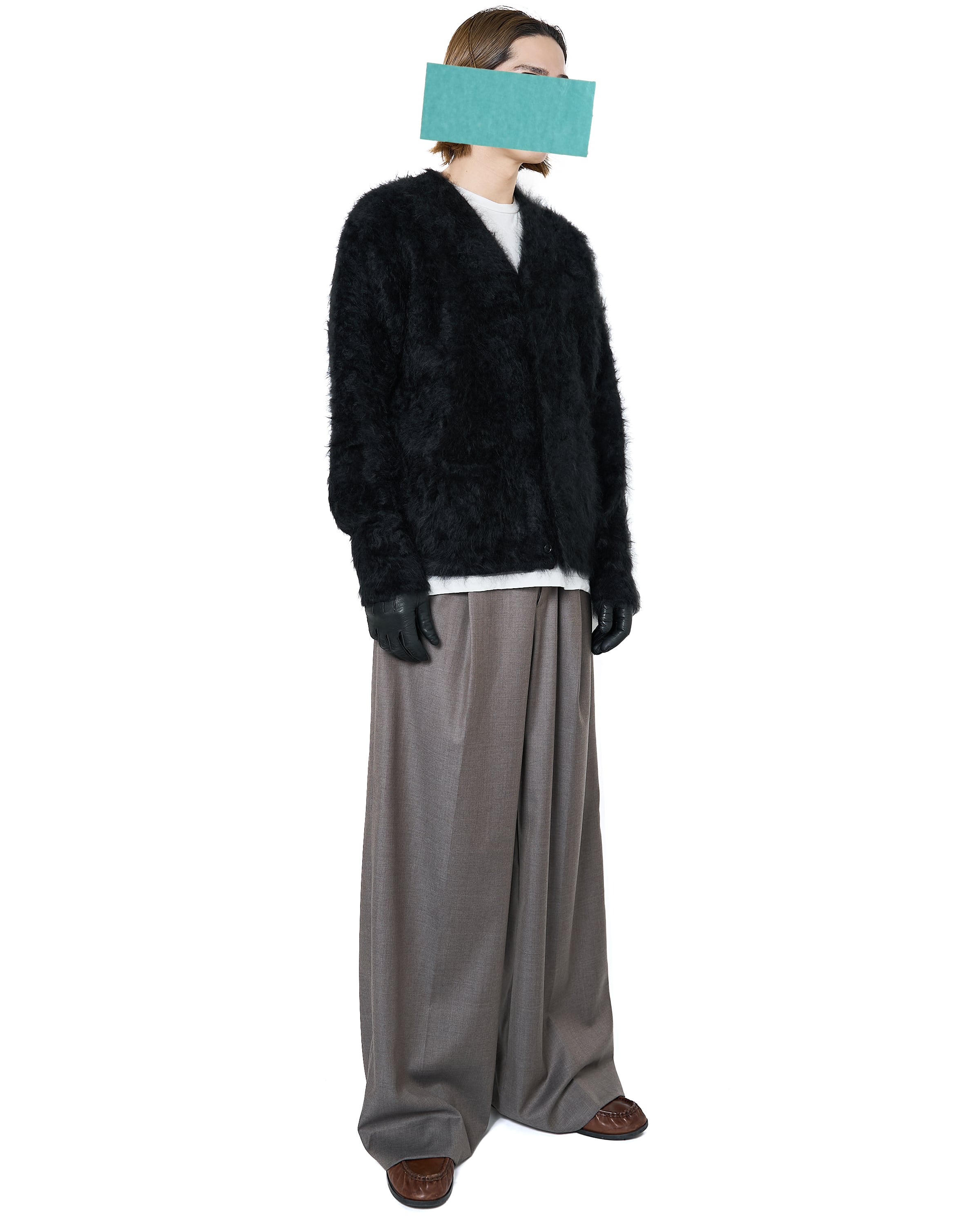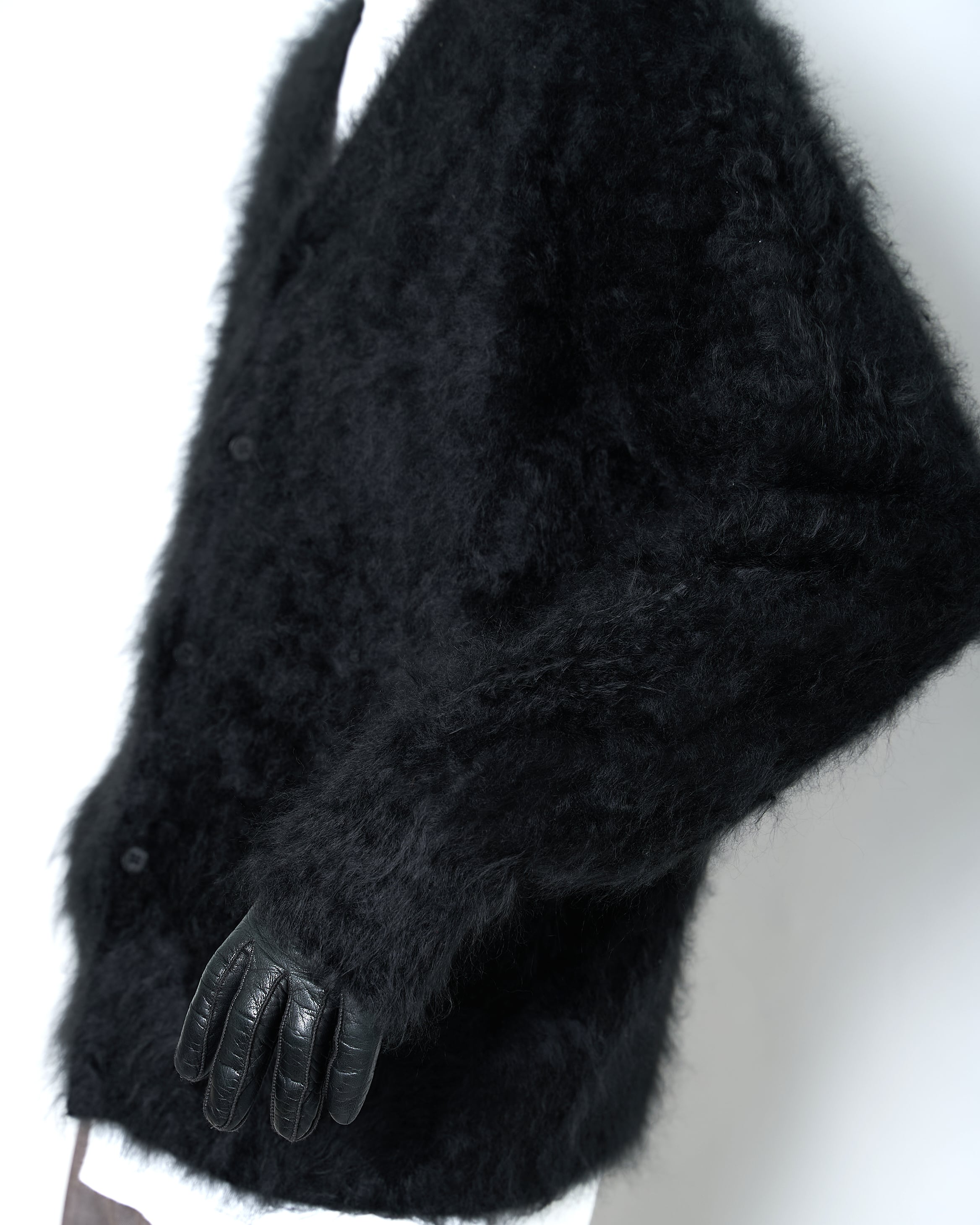 ssstein "CASHMERE SHAGGY KNIT V NECK CARDIGAN〔BLACK〕"