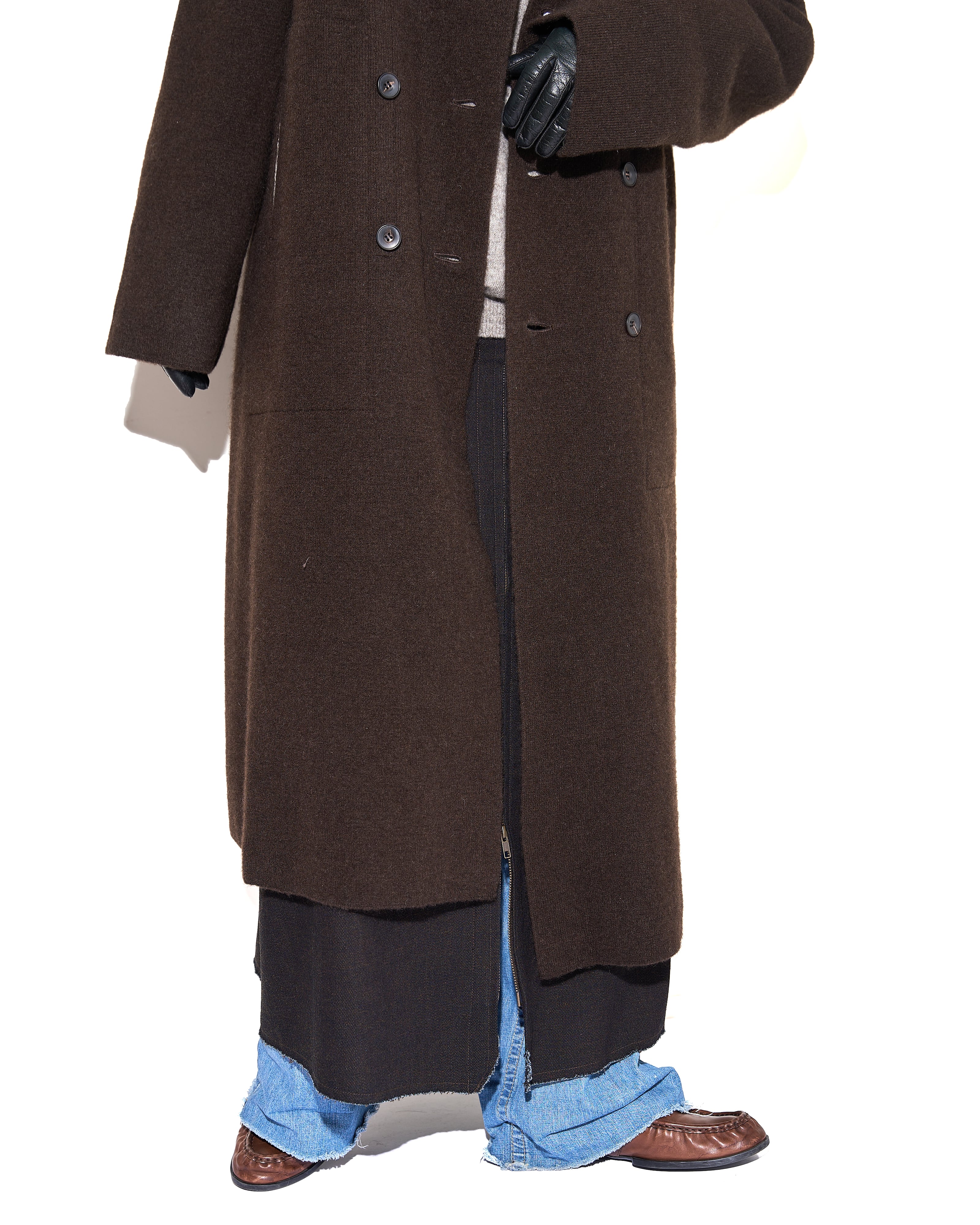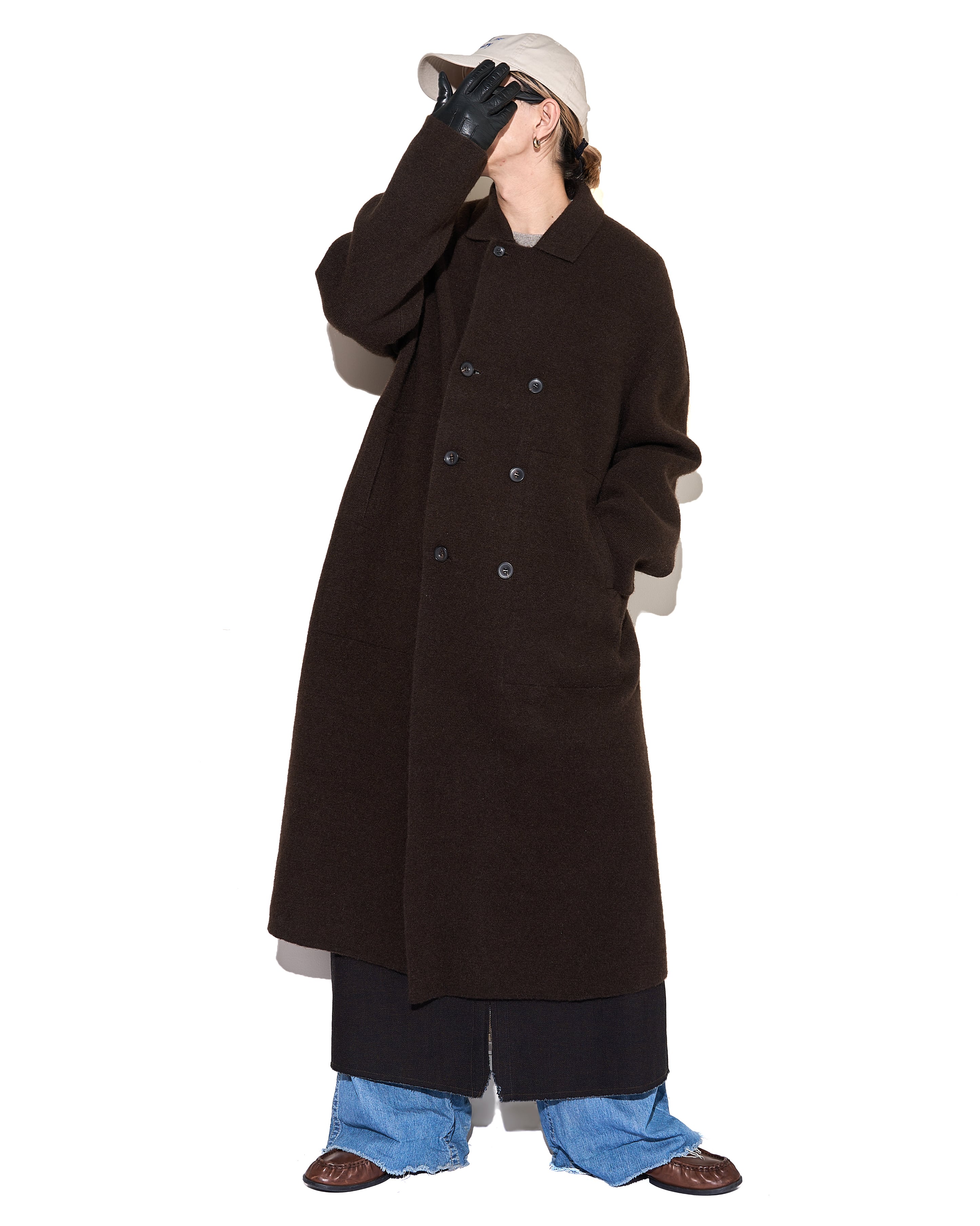 Nomàt "YAK Double Breasted Knit Coat〔Dark Brown〕"