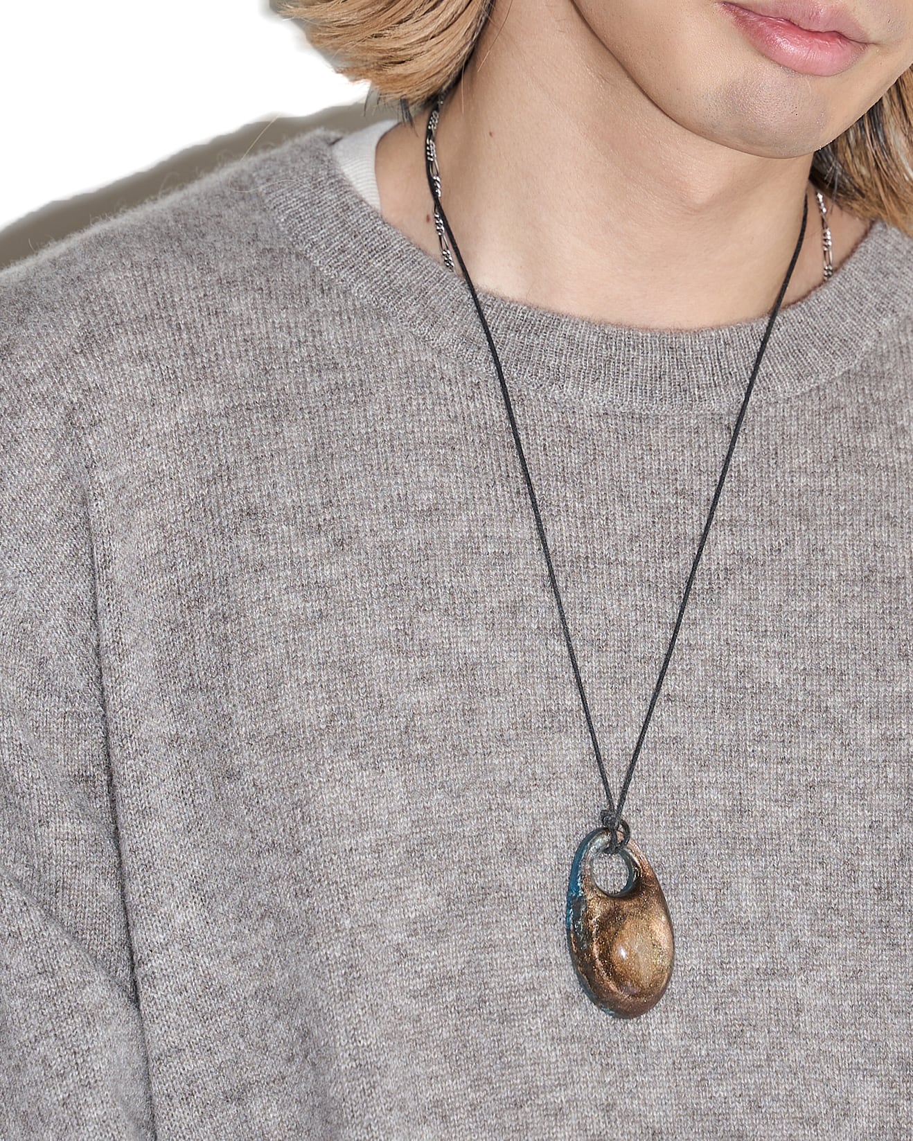 今シーズンのテーマでもあるヤクウールを使用したニットセーター。程よくルーズに仕上げられ、リラックスムードが漂う一枚です、ヤクの特徴は、軽いことや、荒々しい表情などがありますが、肌へのタッチは硬かったりします。オリジナルで開発された今回のファブリックは、とてもふわふわとした触り心地。ついつい手に取ってしまうセーターになりそう。