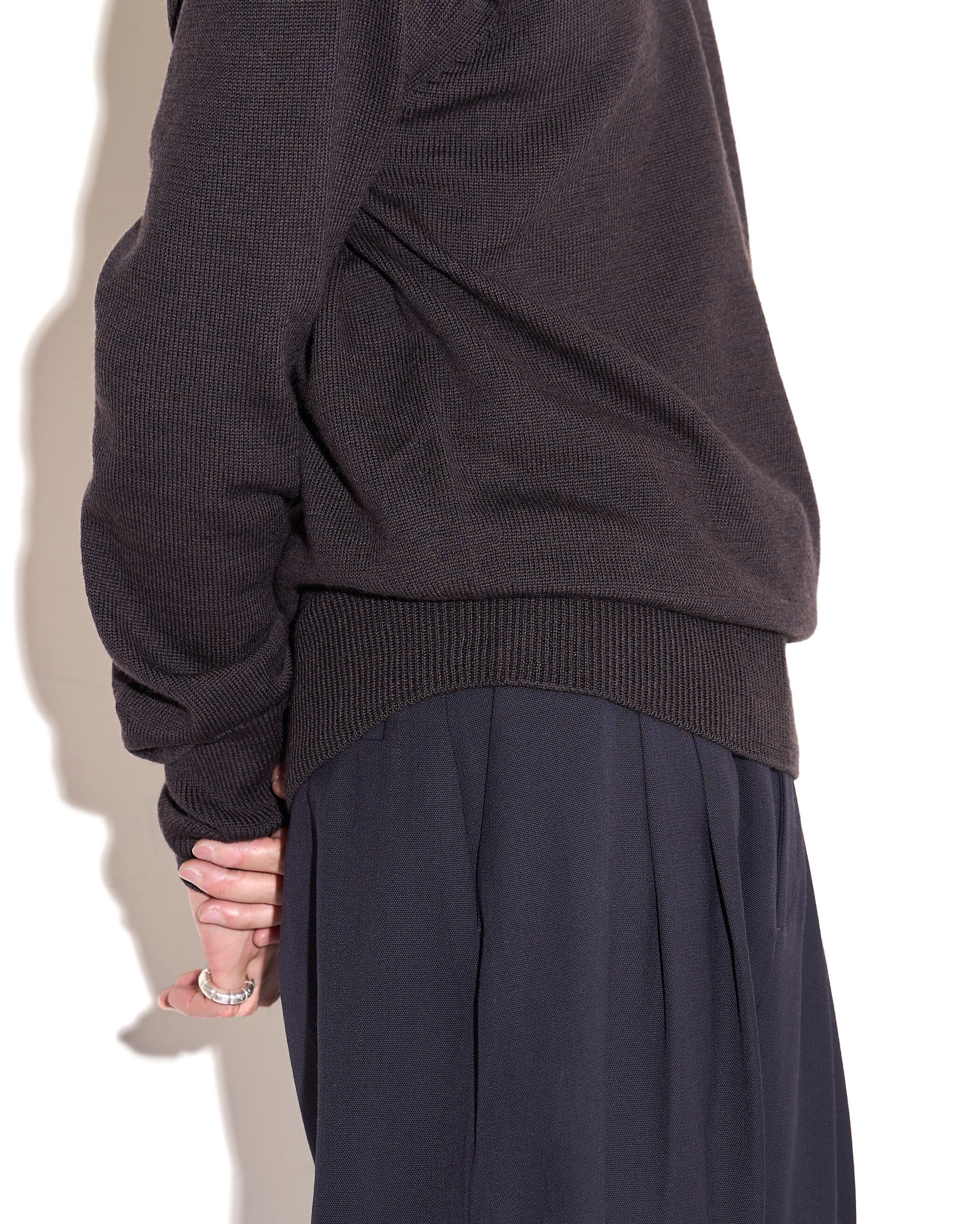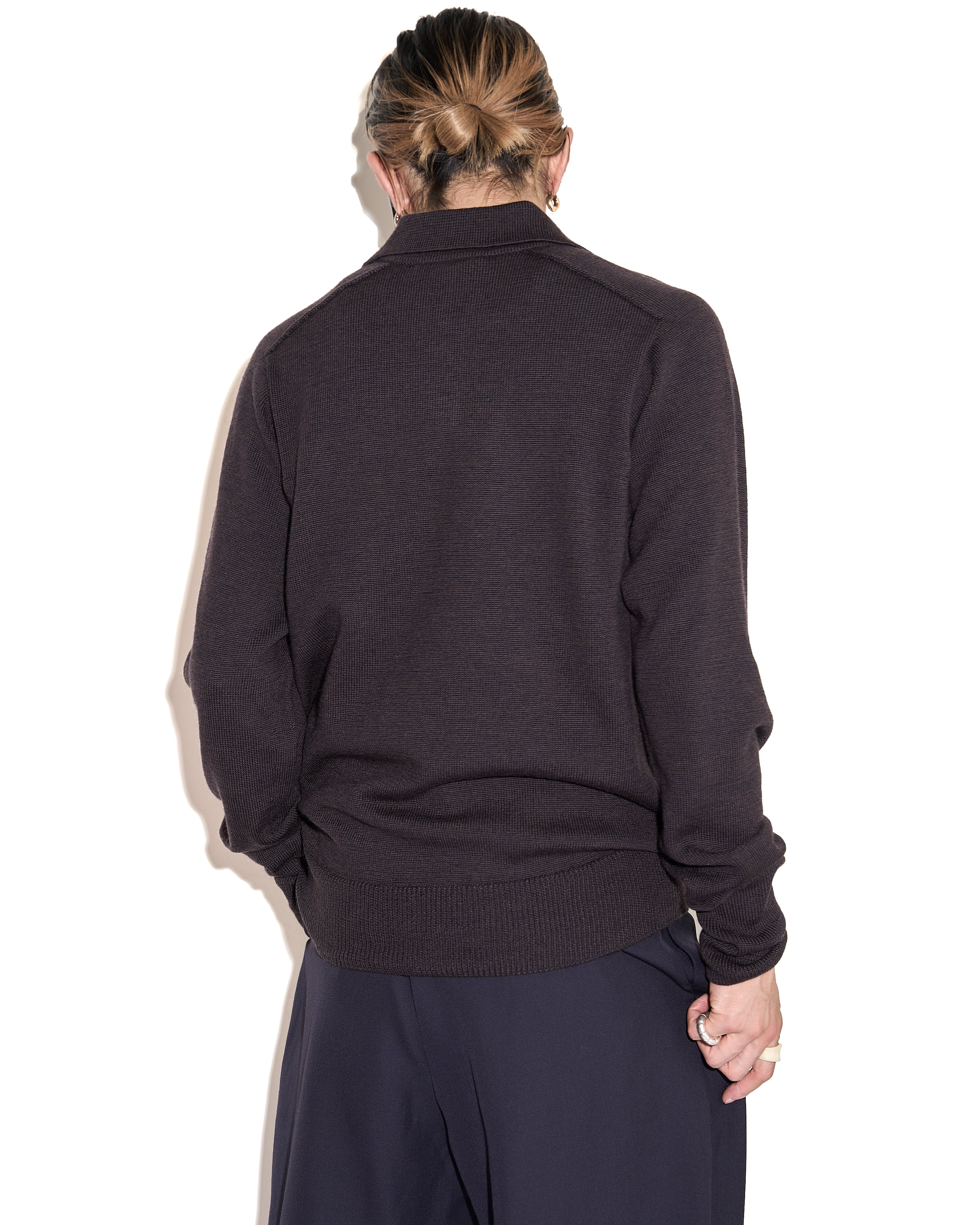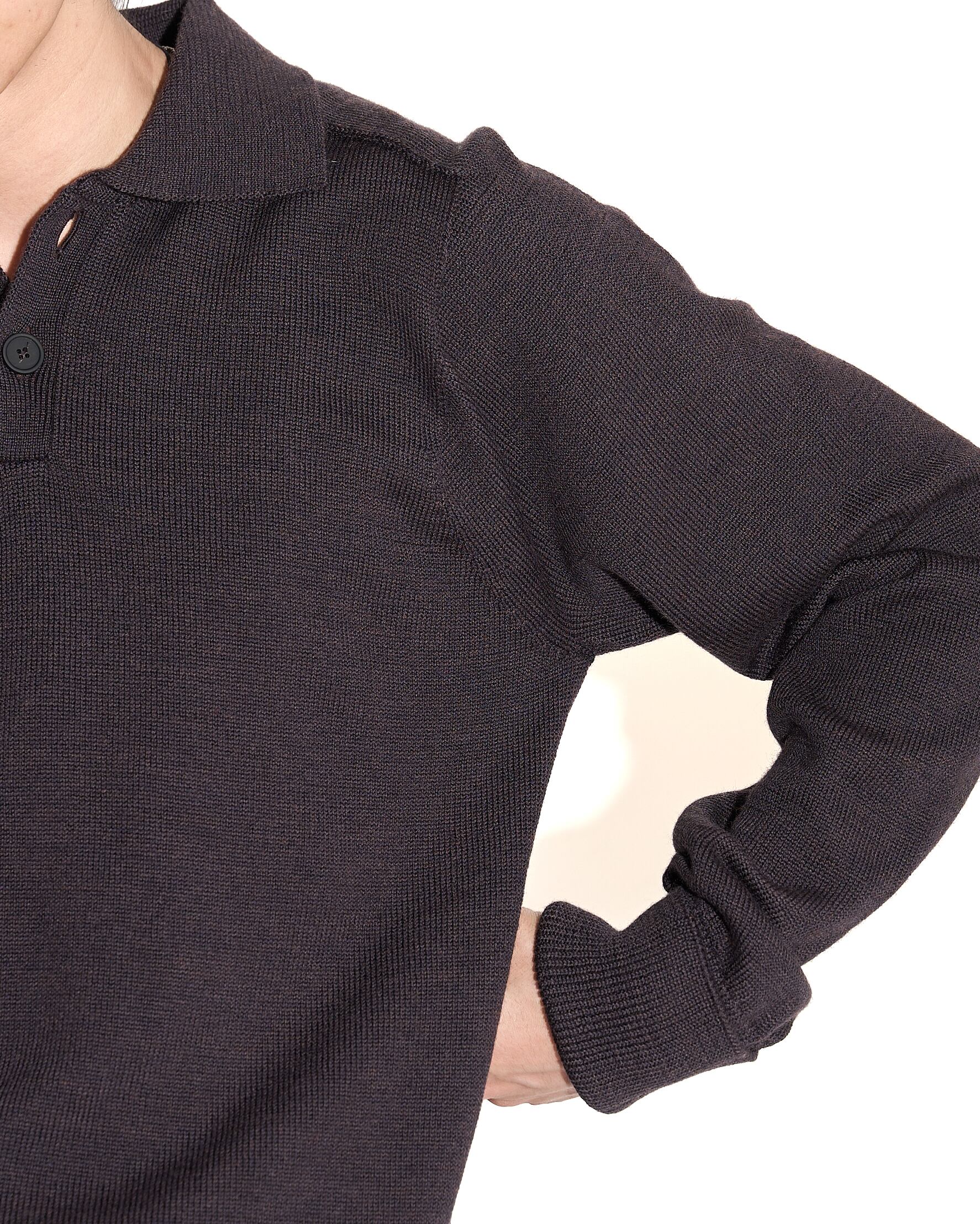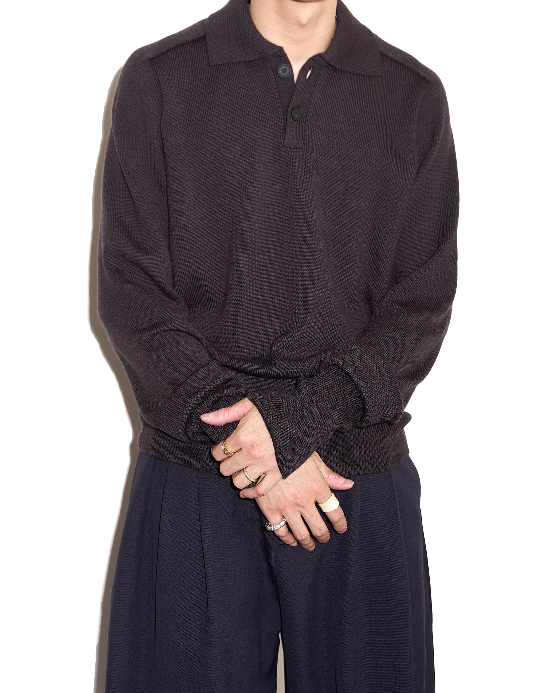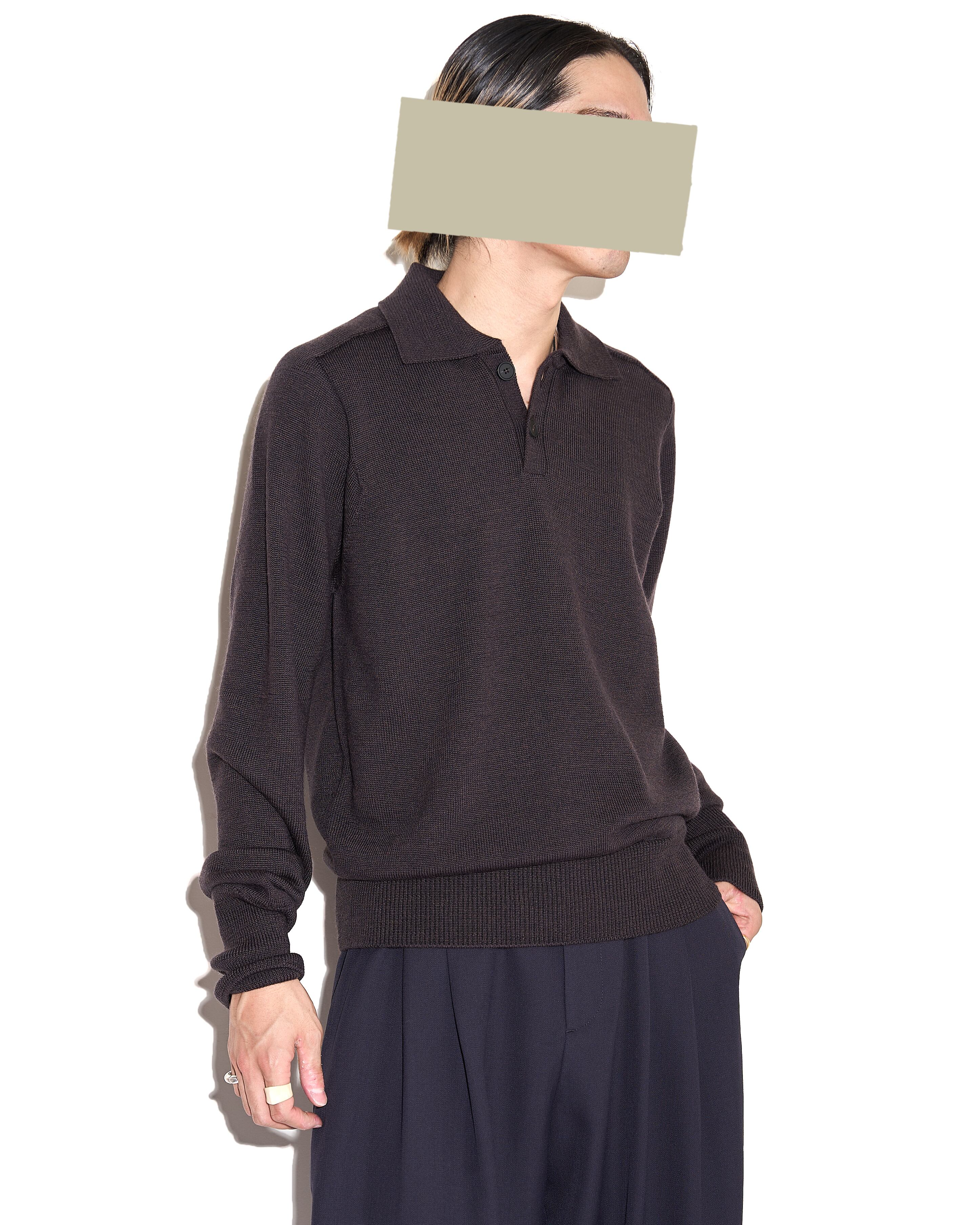 ポロシャツのシルエットから着想を得たウールニット。極細のメリノウールで編まれており、贅沢で心地の良い肌触りが特徴的。比較的コンパクトなサイジングになり、スタイリッシュにご着用いただける仕上がりで、ワイドパンツとの相性抜群。ジャケットとのレイヤードなど、インナー使いにも最適です。
