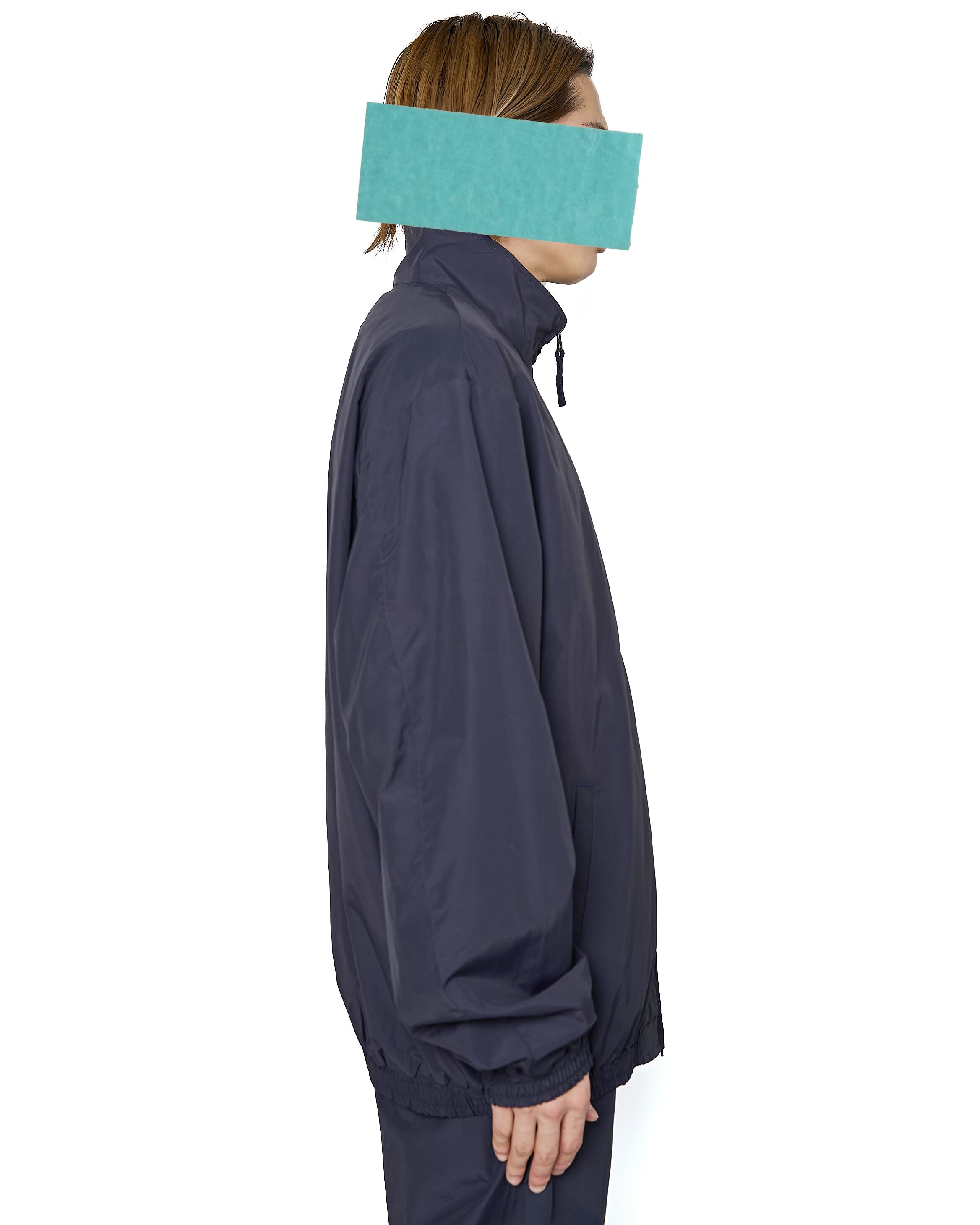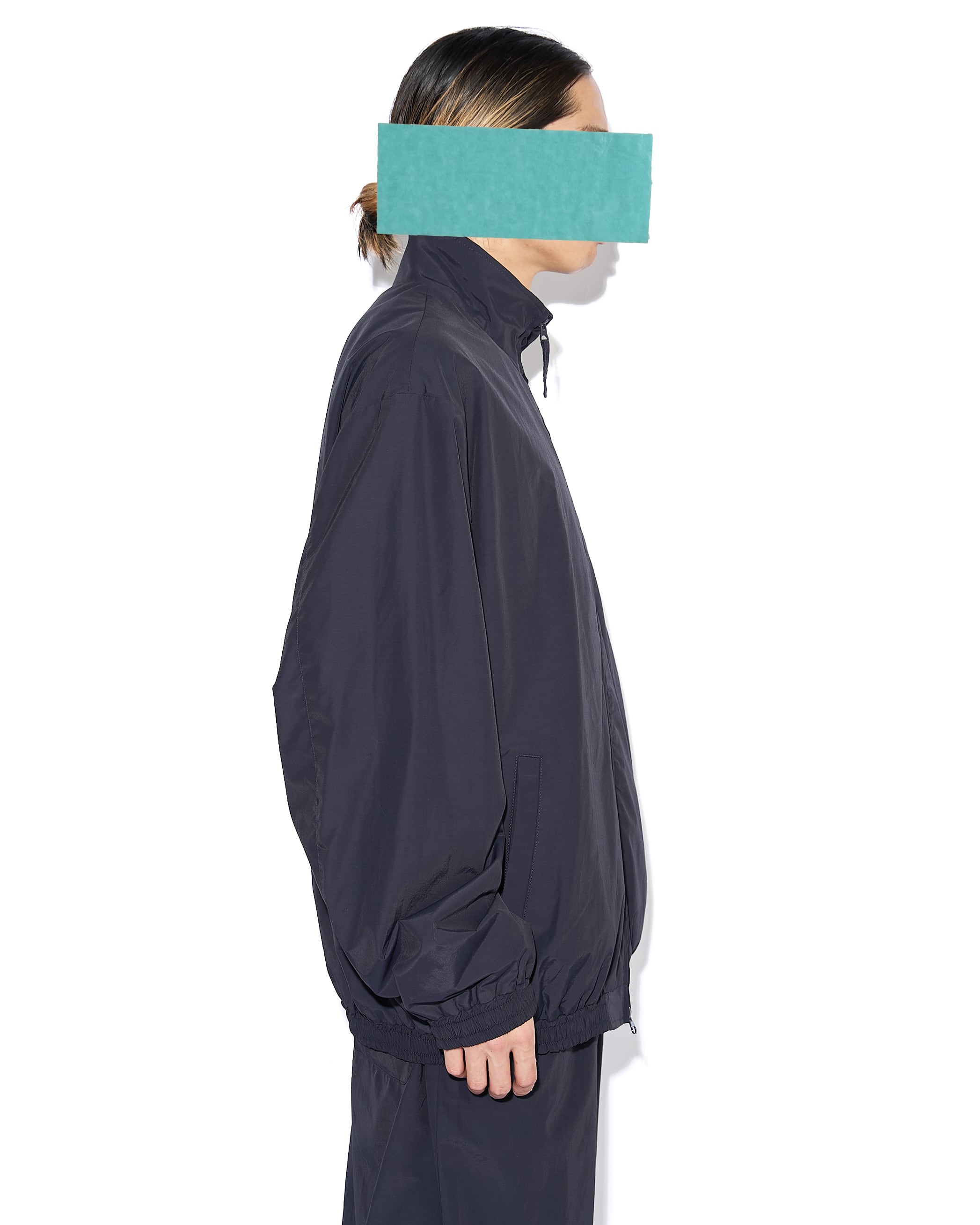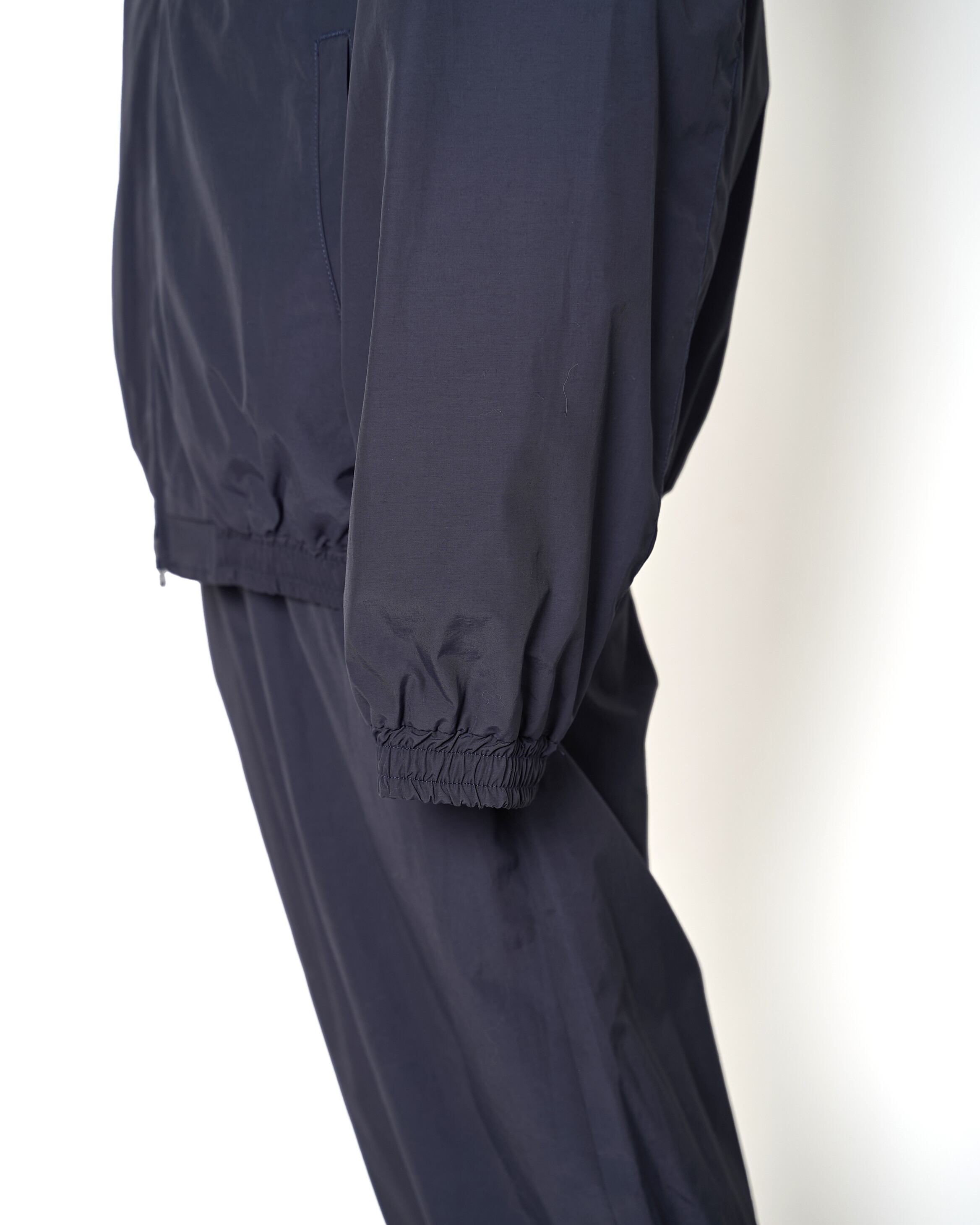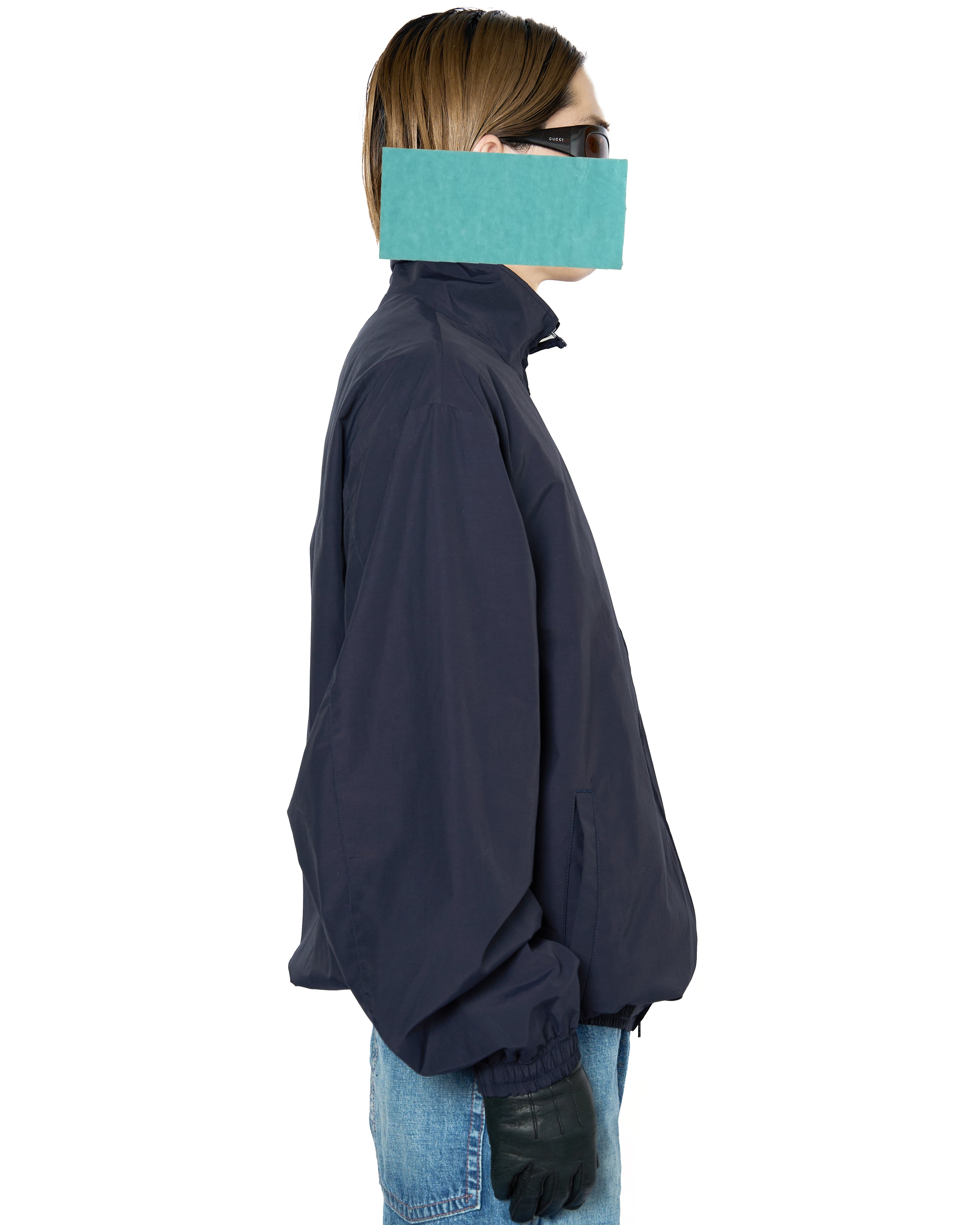 コットンナイロンのポプリンを使用したトラックジャケット。左胸、襟後ろにはブランドロゴ刺繍を施し、袖口・裾にギャザーを寄せることで、ほどよいフィット感と丸みのあるフォルム、内側にはメッシュを採用。