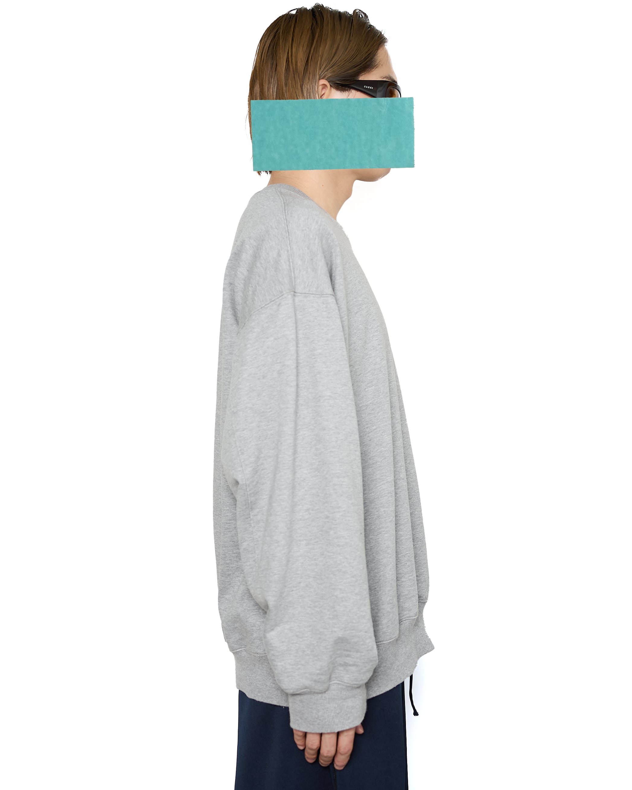 通常だと18Gで編む番手を、28G編み機で超度詰めに編み立てたハイゲージ裏毛生地を使用し、目面の美しい表面感と、シルケット加工による光沢感、適度のハリ感が特徴的なスウェット。左胸、左袖部分にはブランドロゴ刺繍を配置しています。