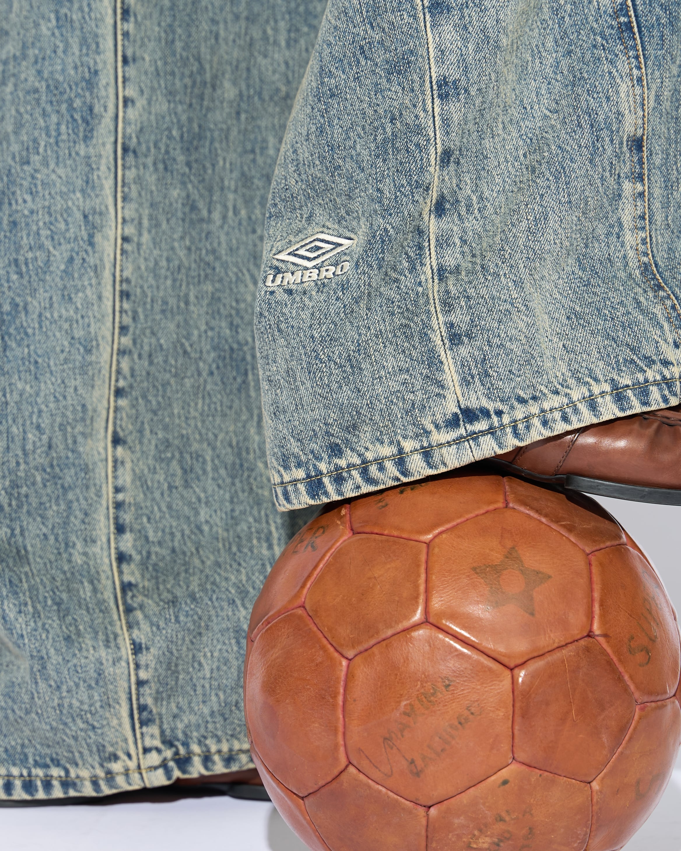 sssteinとUMBROのカプセルコレクション。1966年のワールドカップイングランド大会において、選手の日常着までサポートしていたUMBROとイングランド代表との関係性を着想源とし、sssteinのシルエットや素材感に、デザイナーが偏愛する1990年代のUMBROサッカーユニフォームのムードを組み合わせた、サッカーカルチャーと日常着の関係性を昇華させたコレクションとなっております。