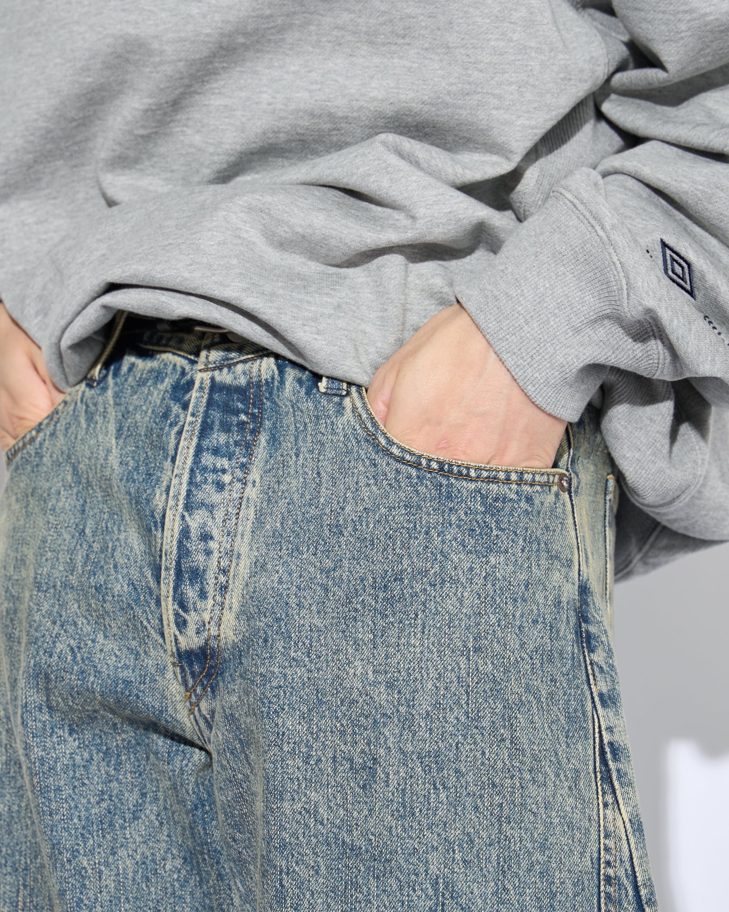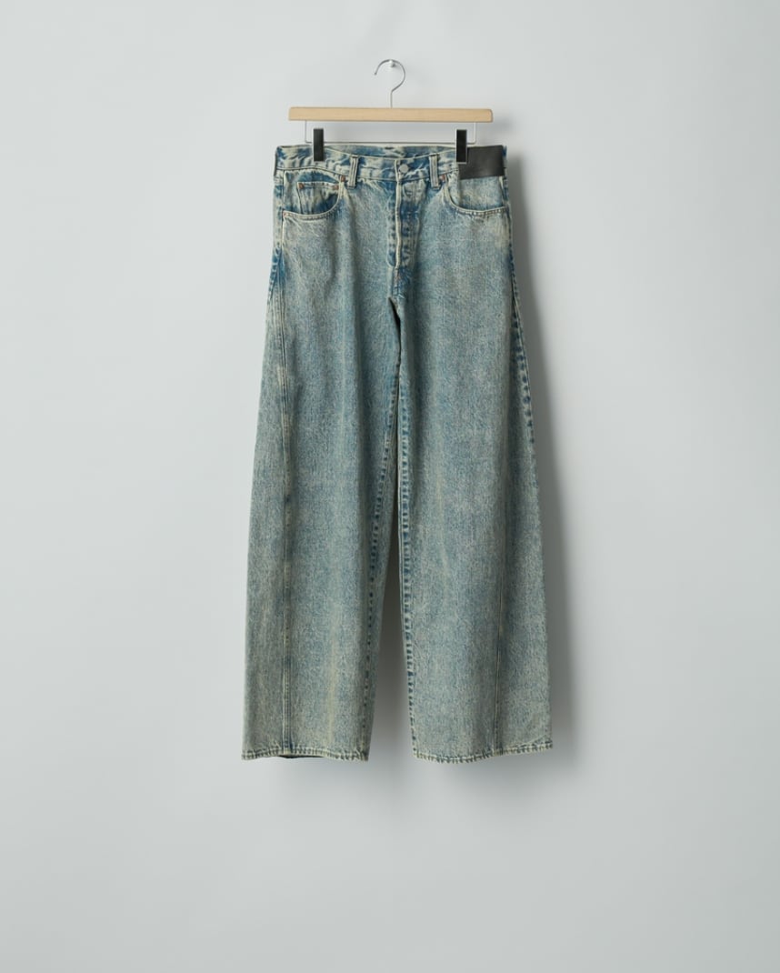 13ozの特濃ロープ染色で染めた糸を使用し、旧式力織機でゆっくりと時間をかけて織られたヴィンテージデニム生地を使用したジーンズ。タテ糸のムラ糸はシャープな形状で、エイジングによりリアルな色落ち感が出るの特徴で、脇線を内側にツイストすることで、裾にかけて広がっていく美しいAラインに仕上がっています。