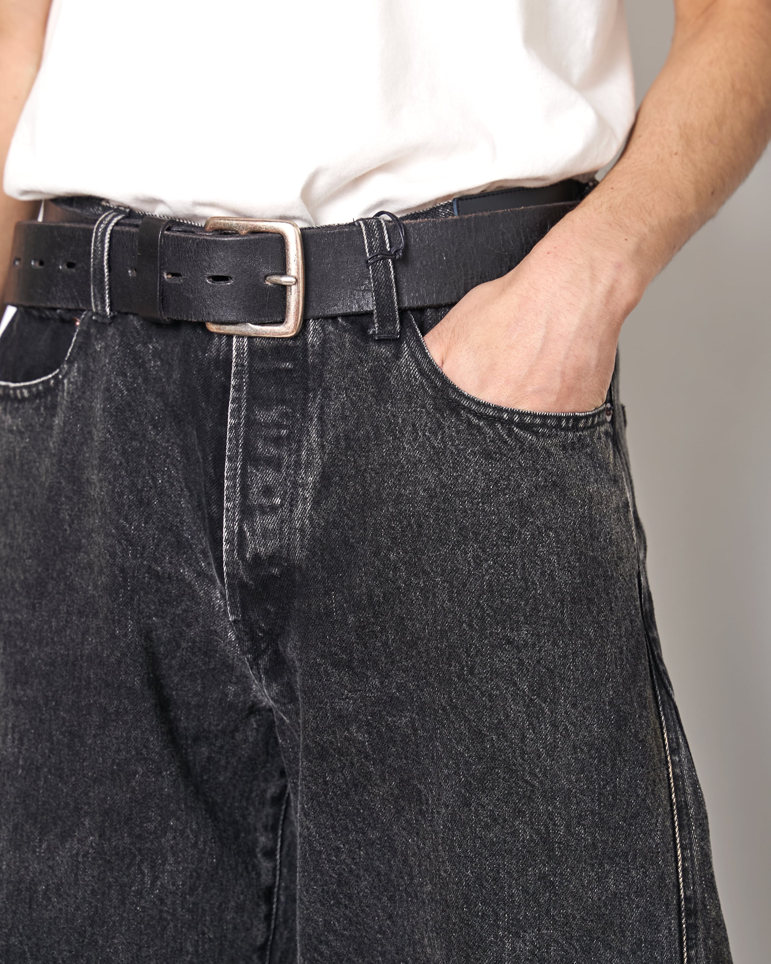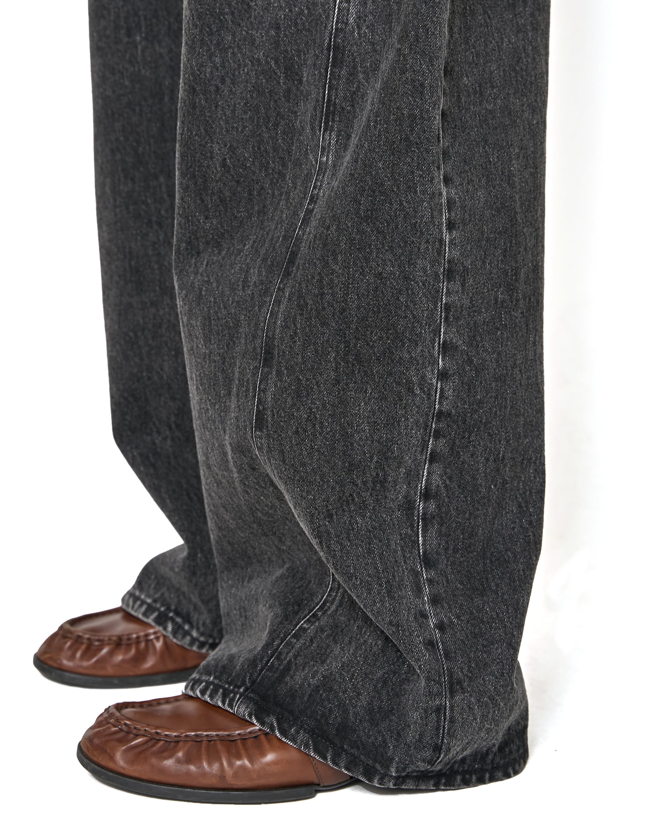 13ozの特濃ロープ染色で染めた糸を使用し、旧式力織機でゆっくりと時間をかけて織られたヴィンテージデニム生地を使用したジーンズ。タテ糸のムラ糸はシャープな形状で、エイジングによりリアルな色落ち感が出るの特徴で、脇線を内側にツイストすることで、裾にかけて広がっていく美しいAラインに仕上がっています。