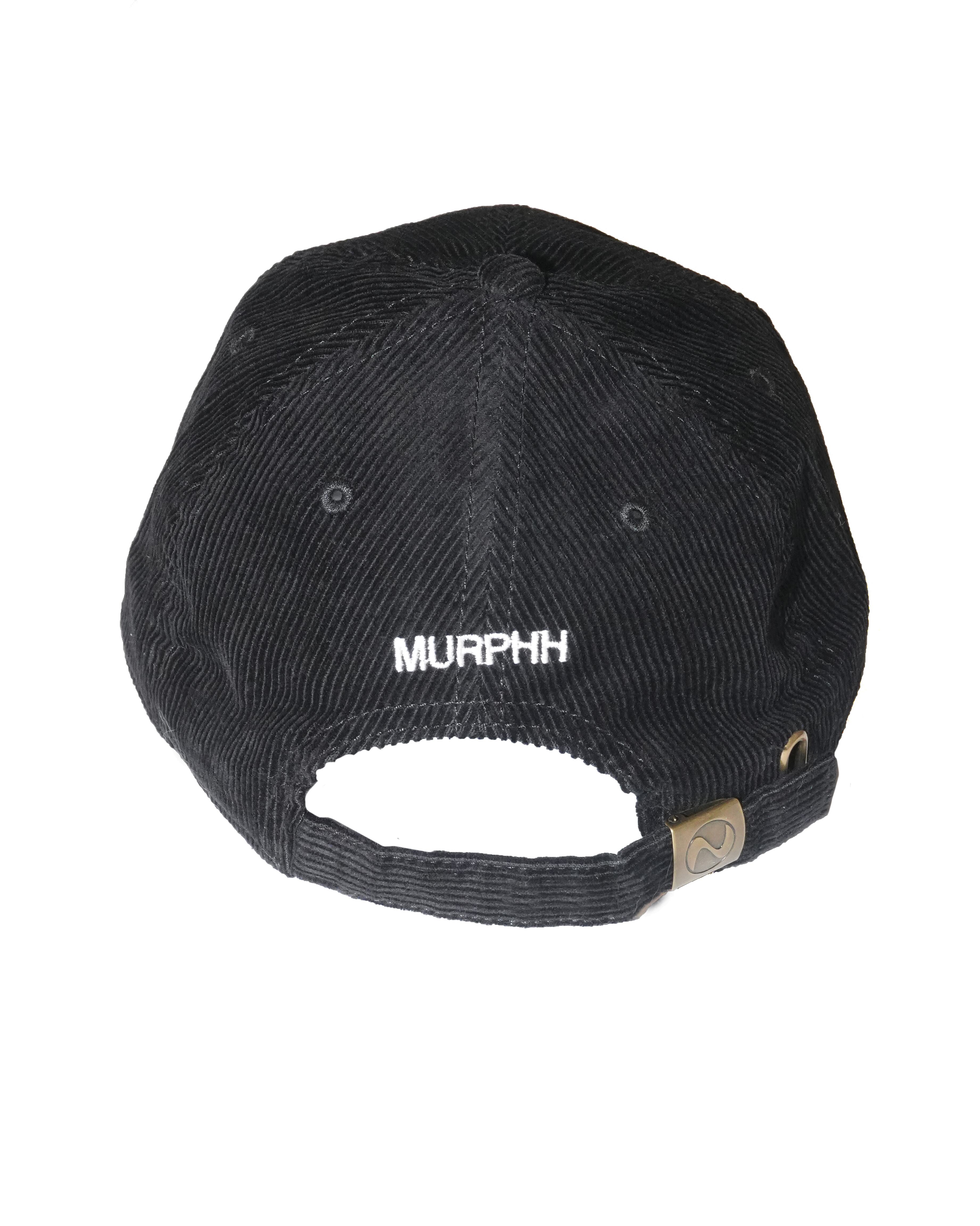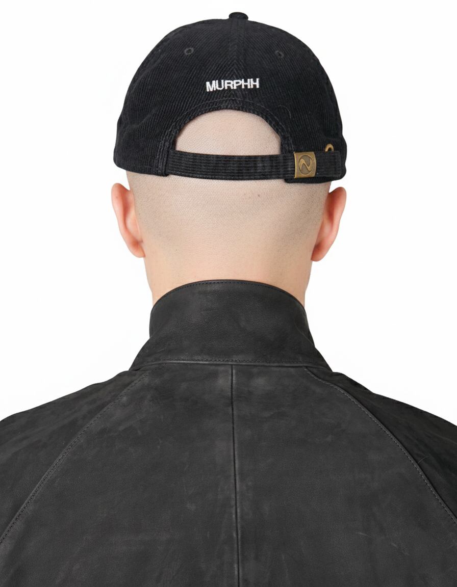 コンセプトを刺繍したベースボールキャップ。深みが出て秋冬のムードに馴染むコーデュロイを使用し、使い込んだ後の表情も楽しみです。バックには”MURPHH”を4mm傾けて刺繍。