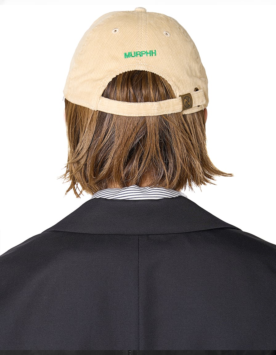 コンセプトを刺繍したベースボールキャップ。深みが出て秋冬のムードに馴染むコーデュロイを使用し、使い込んだ後の表情も楽しみです。バックには”MURPHH”を4mm傾けて刺繍。 ※決して刺繍ミスではございません。 ○Size : ONE SIZE FITS ALL Made in China Material:COTTON 100% ※撮影環境や照明、お客様のお使いのモニター設定などの都合上、実際の色味とは異なる場合がございます。