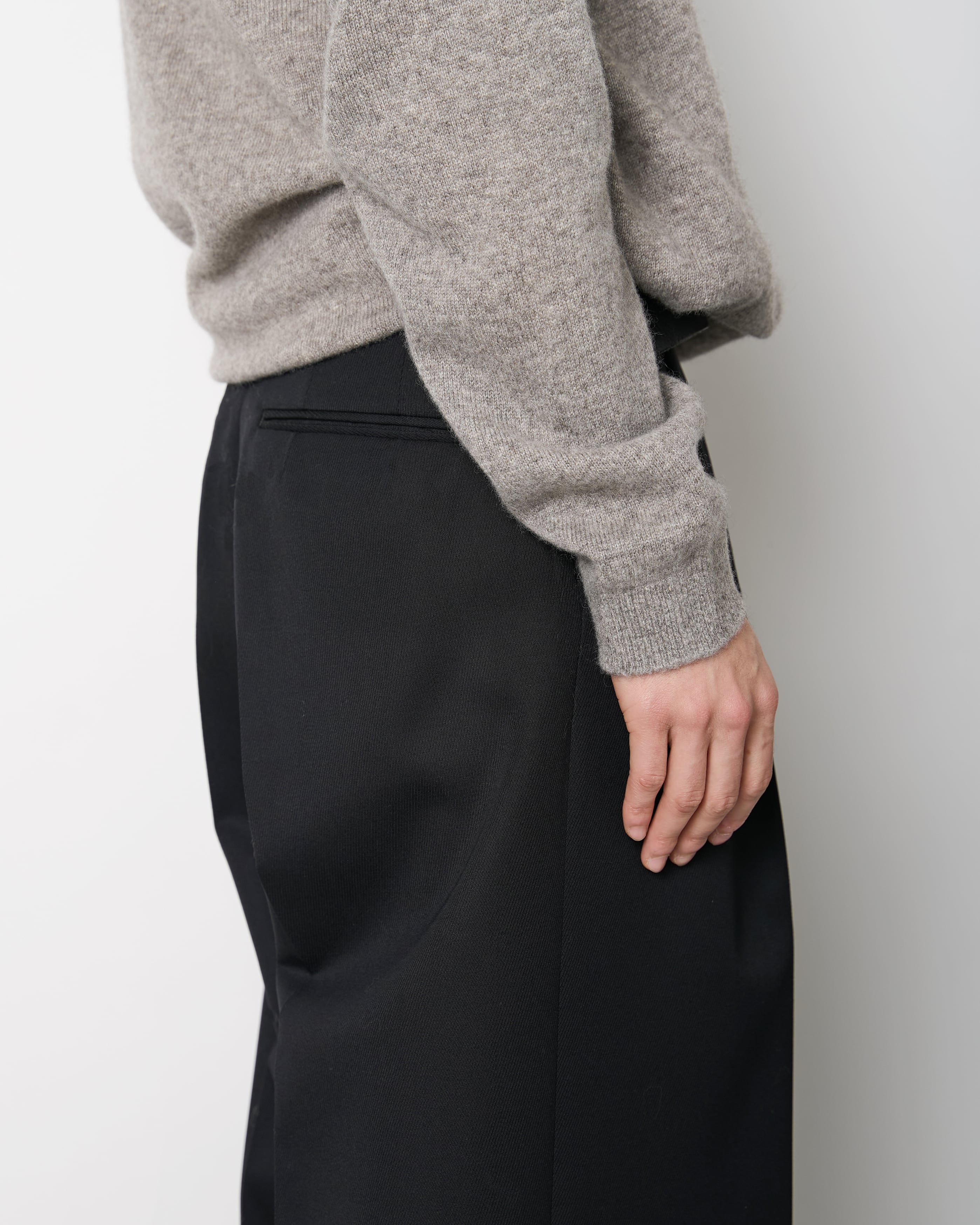 タテ×ヨコ上質なSuper100’s原料の80番双糸を贅沢に使用し、畝感をしっかり出す為にカルゼ組織に織り上げ、わたり幅から裾幅までスーパーワイドに設定した深めのワンタックトラウザーズ。腰回りはすっきりとしたフィット感になるよう調整し、ワイドなシルエットながら上品な、エレガントなバランスは、セーターやスウェットだけで様になり、コートなどにもボリューム負けしないインパクトのある一本。