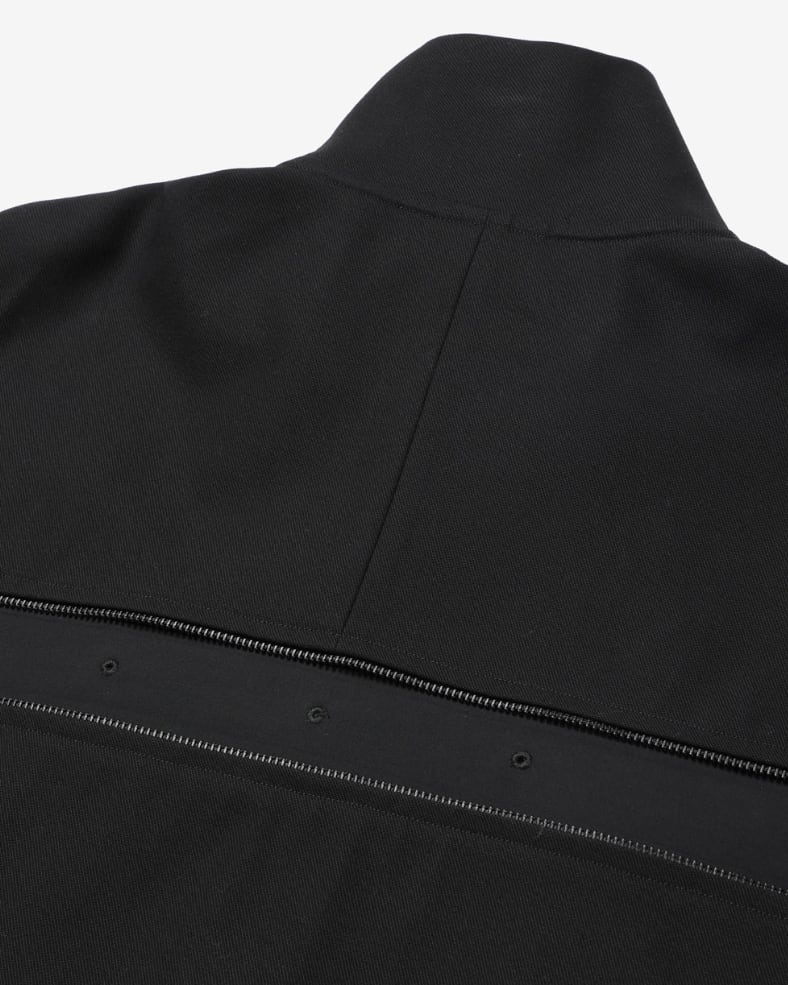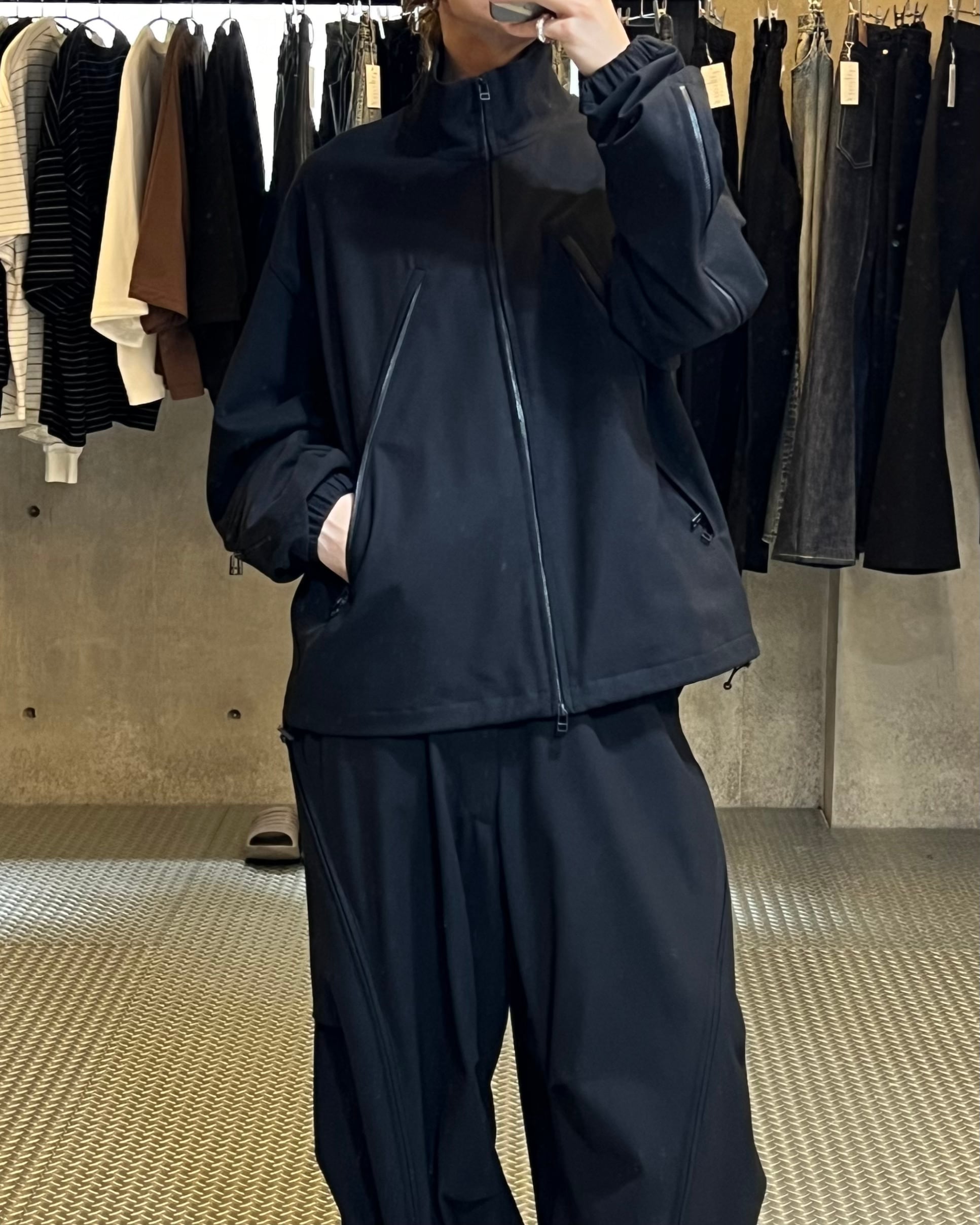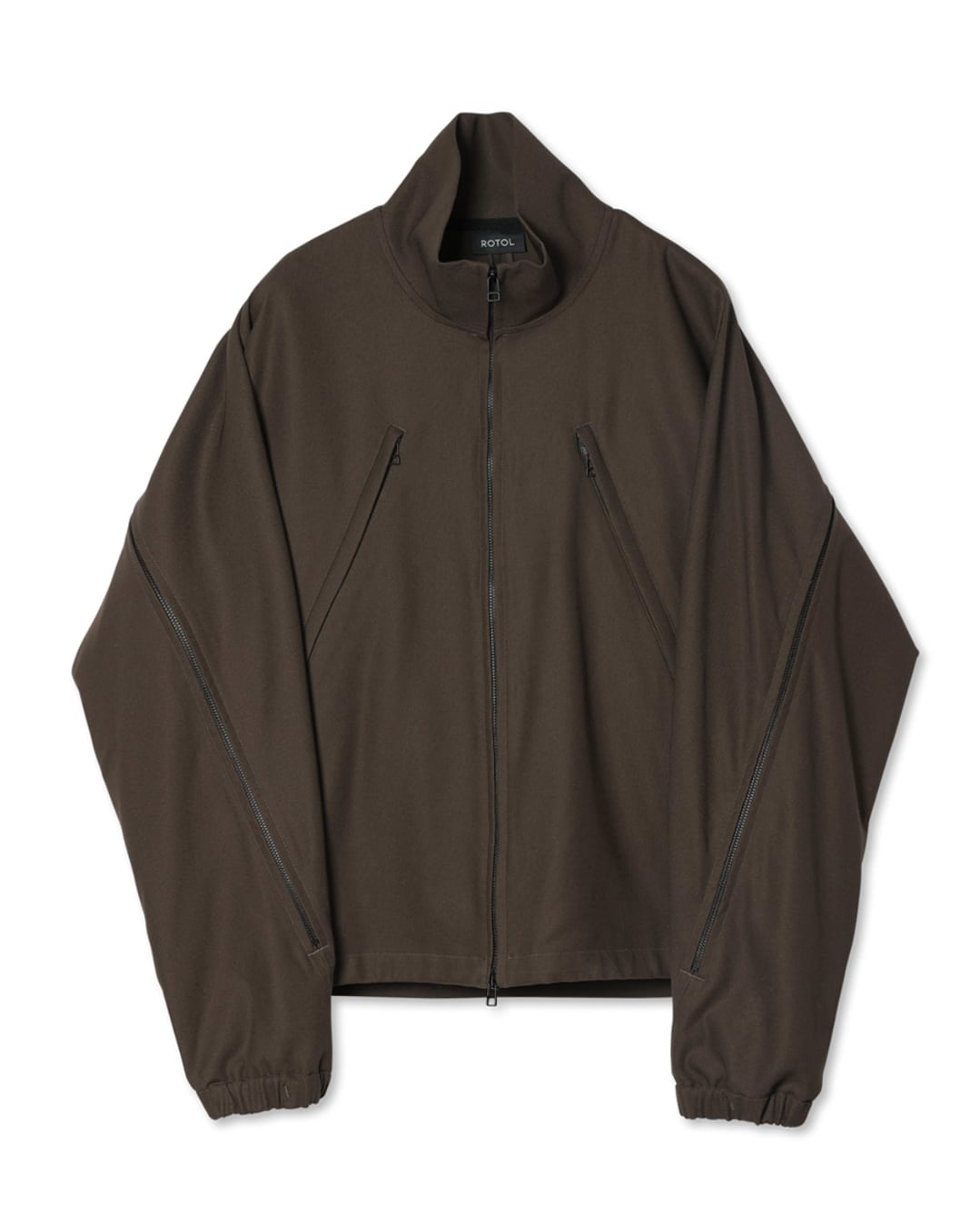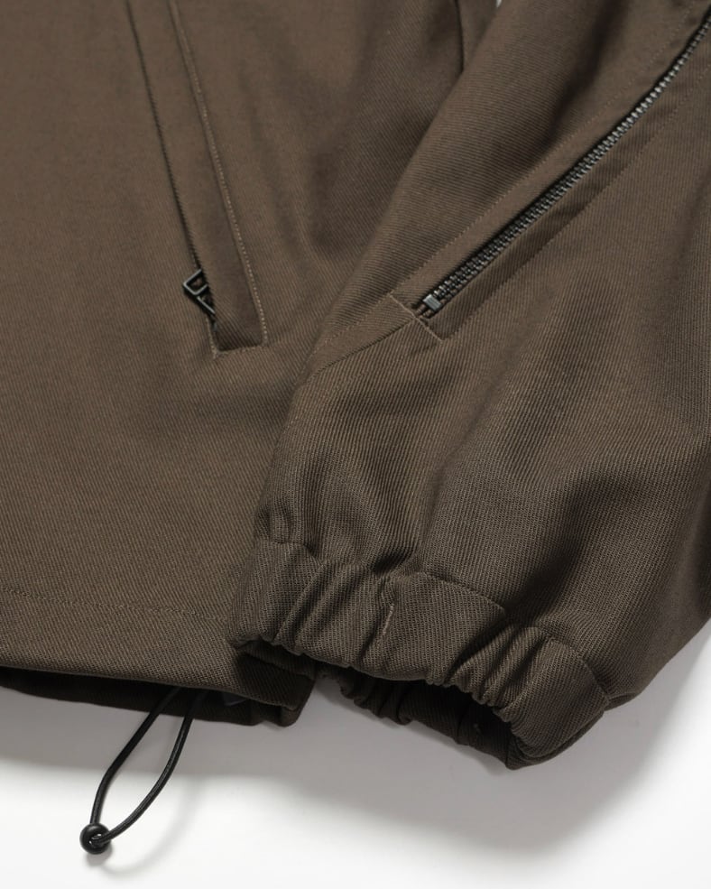 背中のジップは開閉することでシルエットを変化させるだけでなく、内側には菊穴を開けベンチレーションとしての機能します。袖口はゴム、裾にはシルエットを調節するためのドローコードを採用し、メリハリのあるフォルムを形成し、ハの字のジップ内は上下で仕切られており、ROTOLらしい機能美を備えた品の良いテックウェアです。