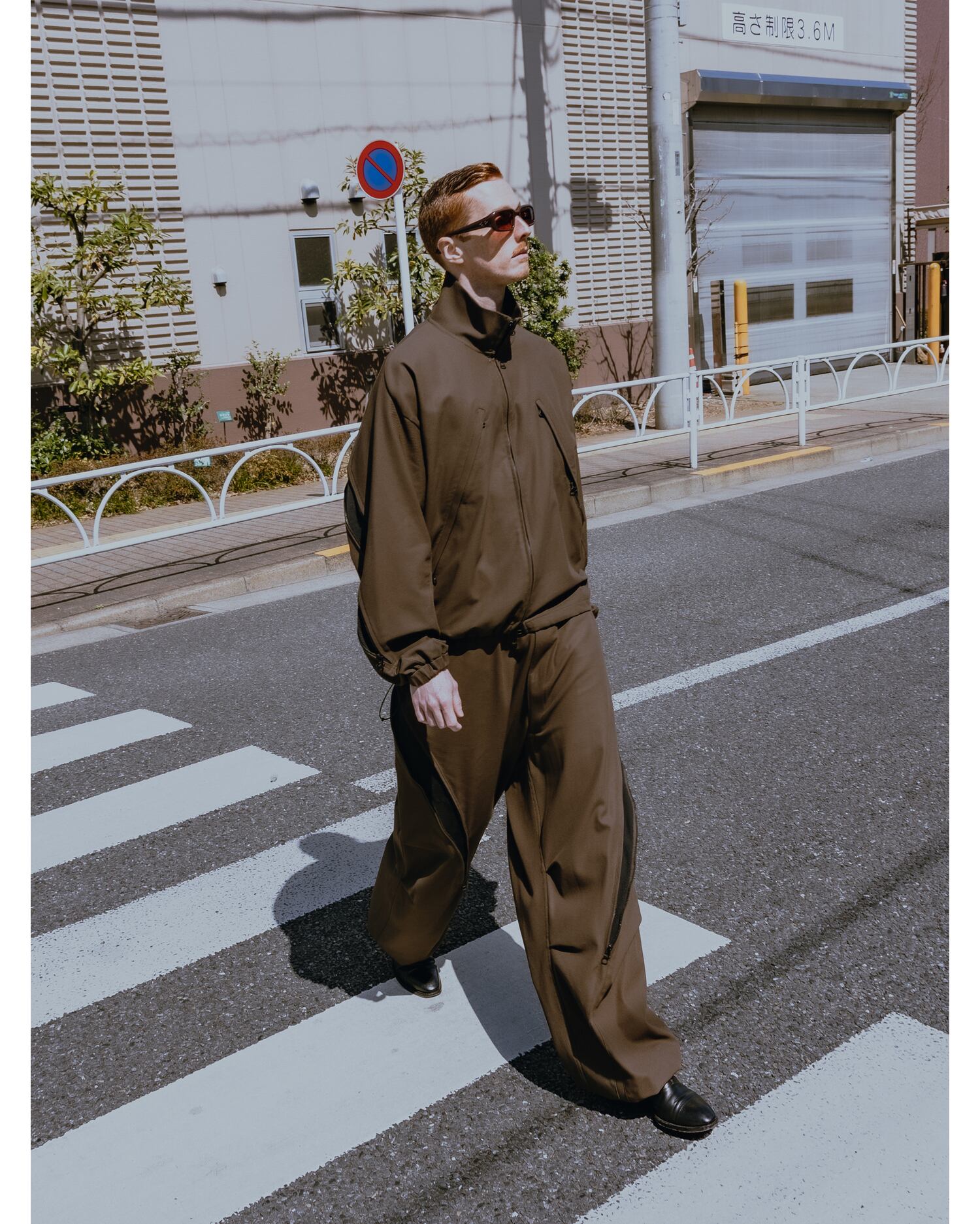 背中のジップは開閉することでシルエットを変化させるだけでなく、内側には菊穴を開けベンチレーションとしての機能します。袖口はゴム、裾にはシルエットを調節するためのドローコードを採用し、メリハリのあるフォルムを形成し、ハの字のジップ内は上下で仕切られており、ROTOLらしい機能美を備えた品の良いテックウェアです。
