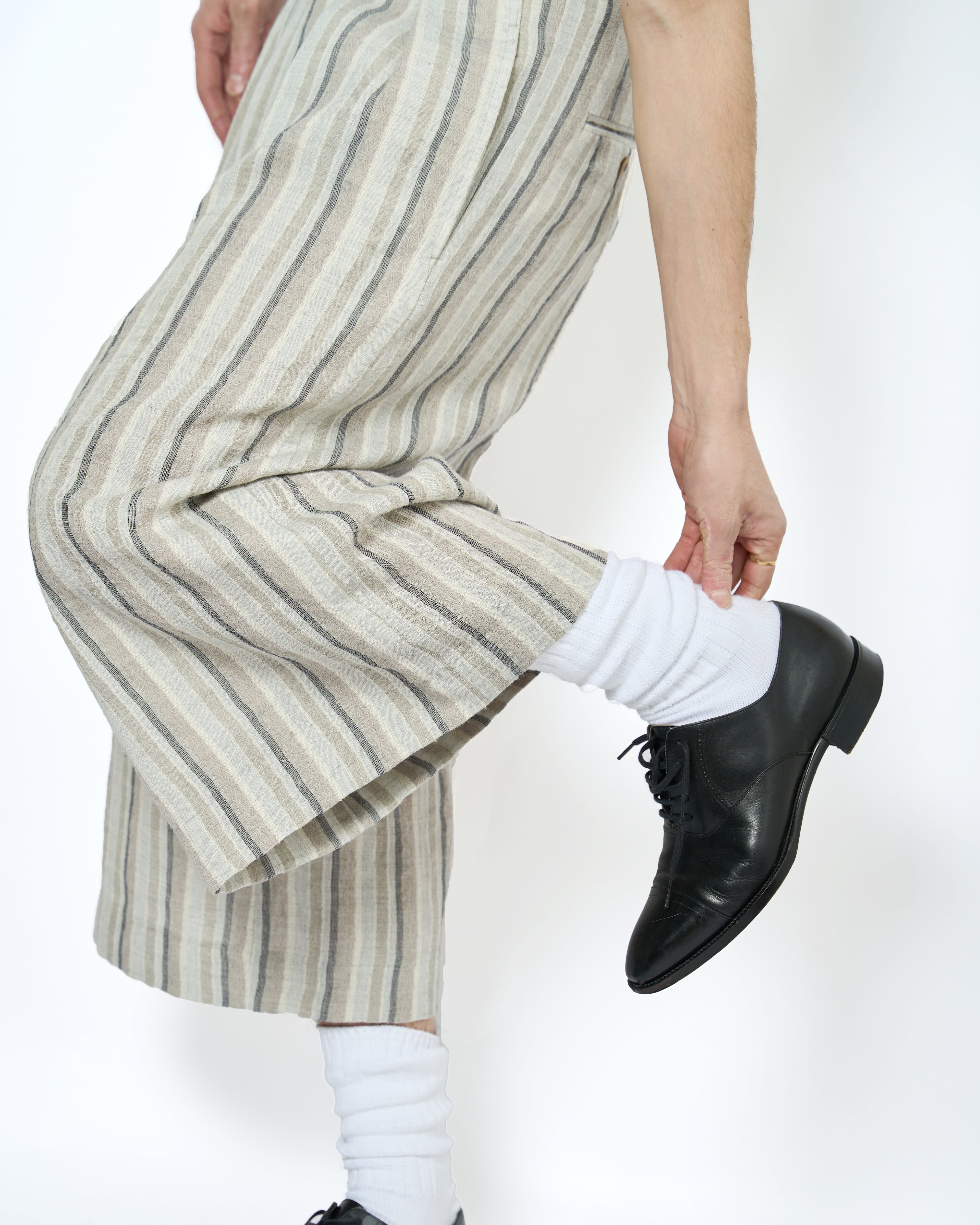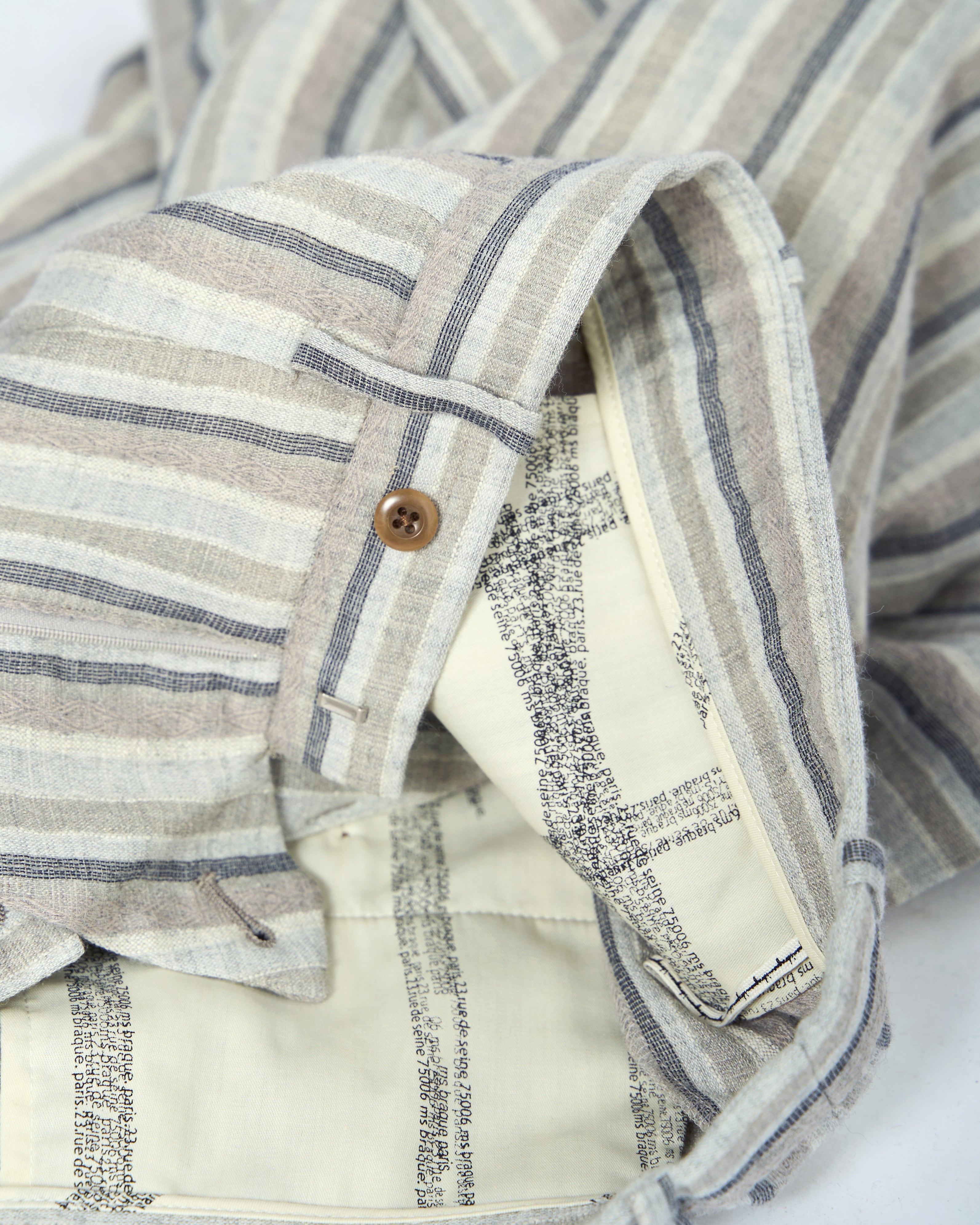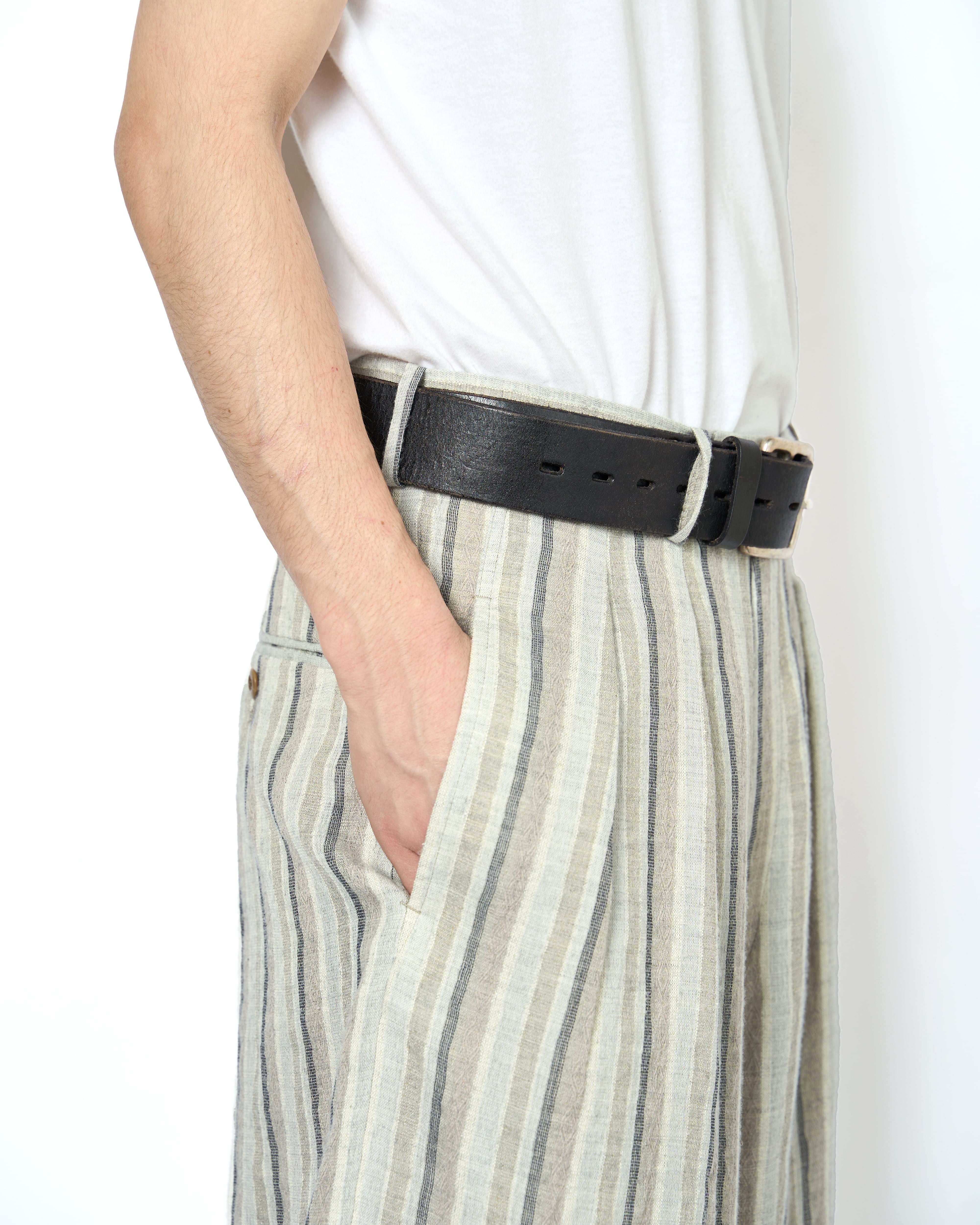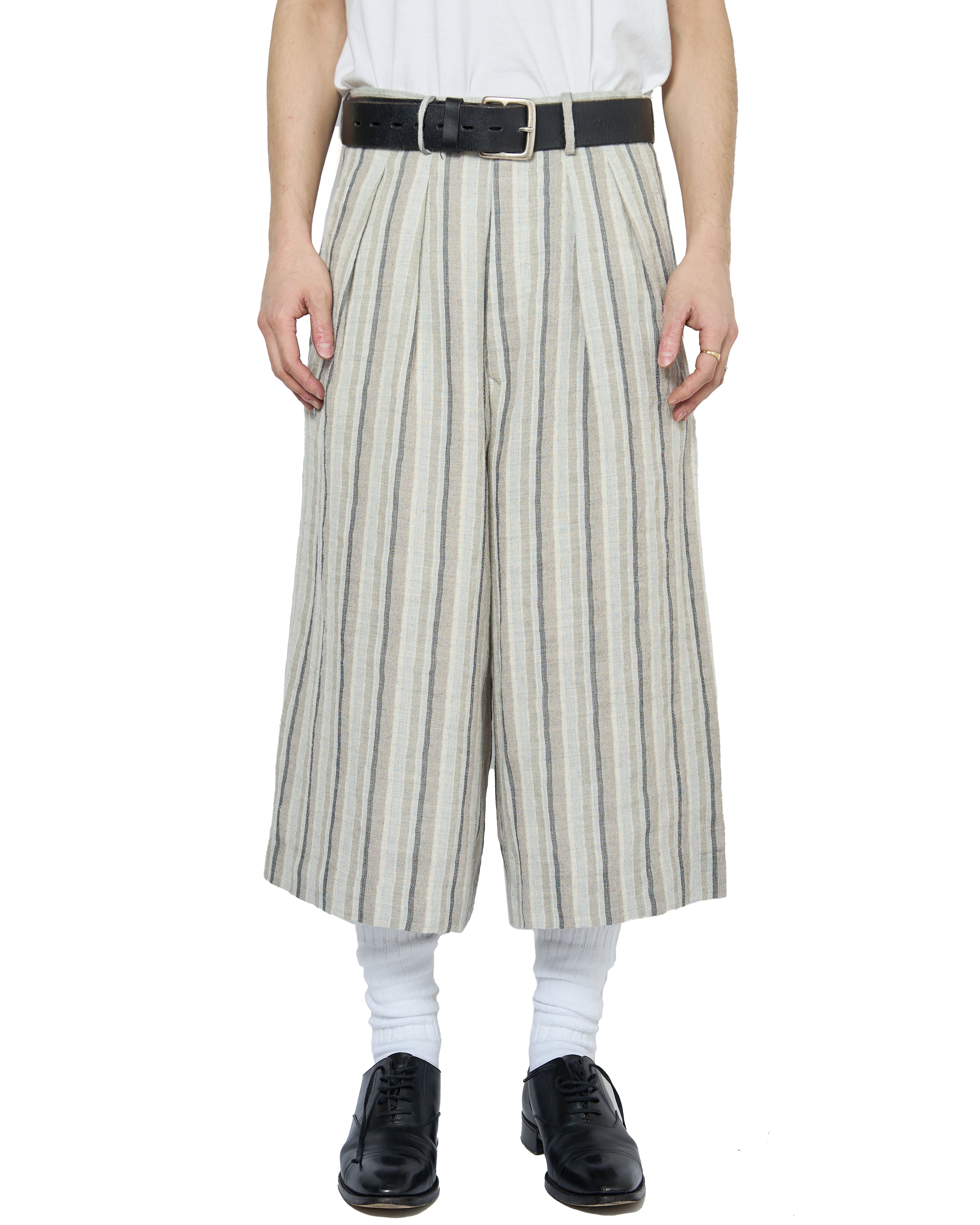 m's braque "CROPPED TUCKED BAGGY PANTS〔BEIGE/GRAY STRIPE〕"