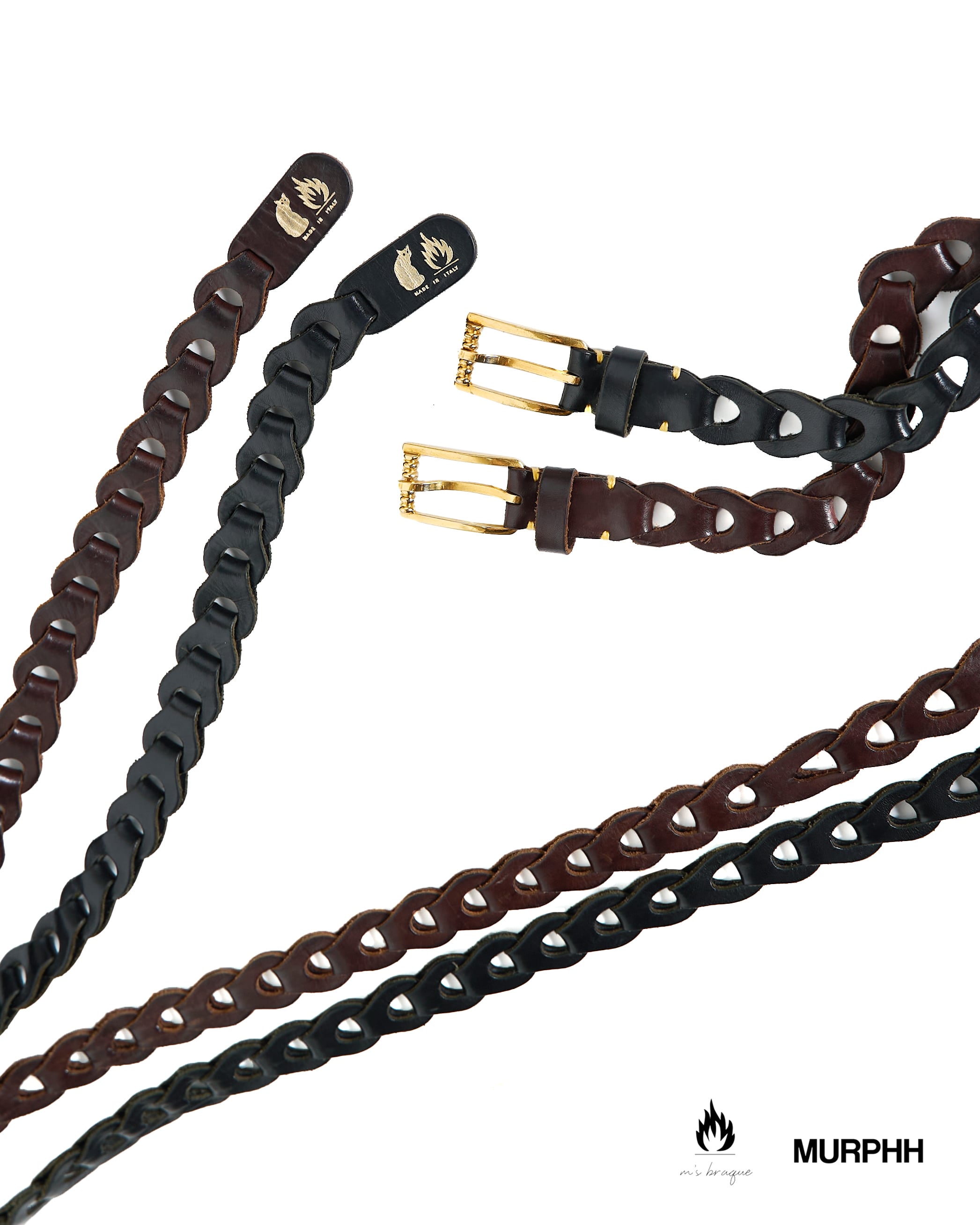 m's braque×ilmicio "Boho 20 MESH LEATHER LONG BELT〔DARK BROWN〕"
