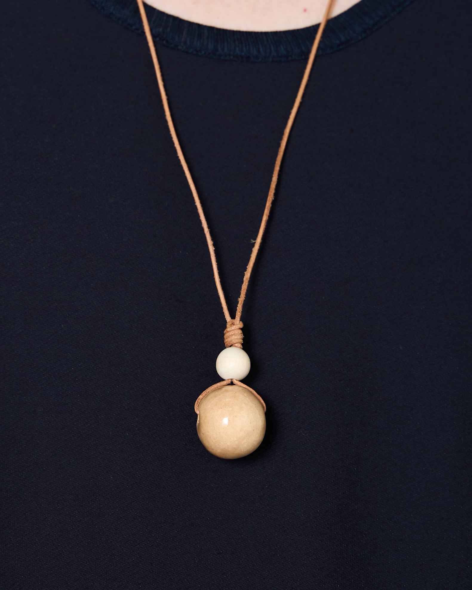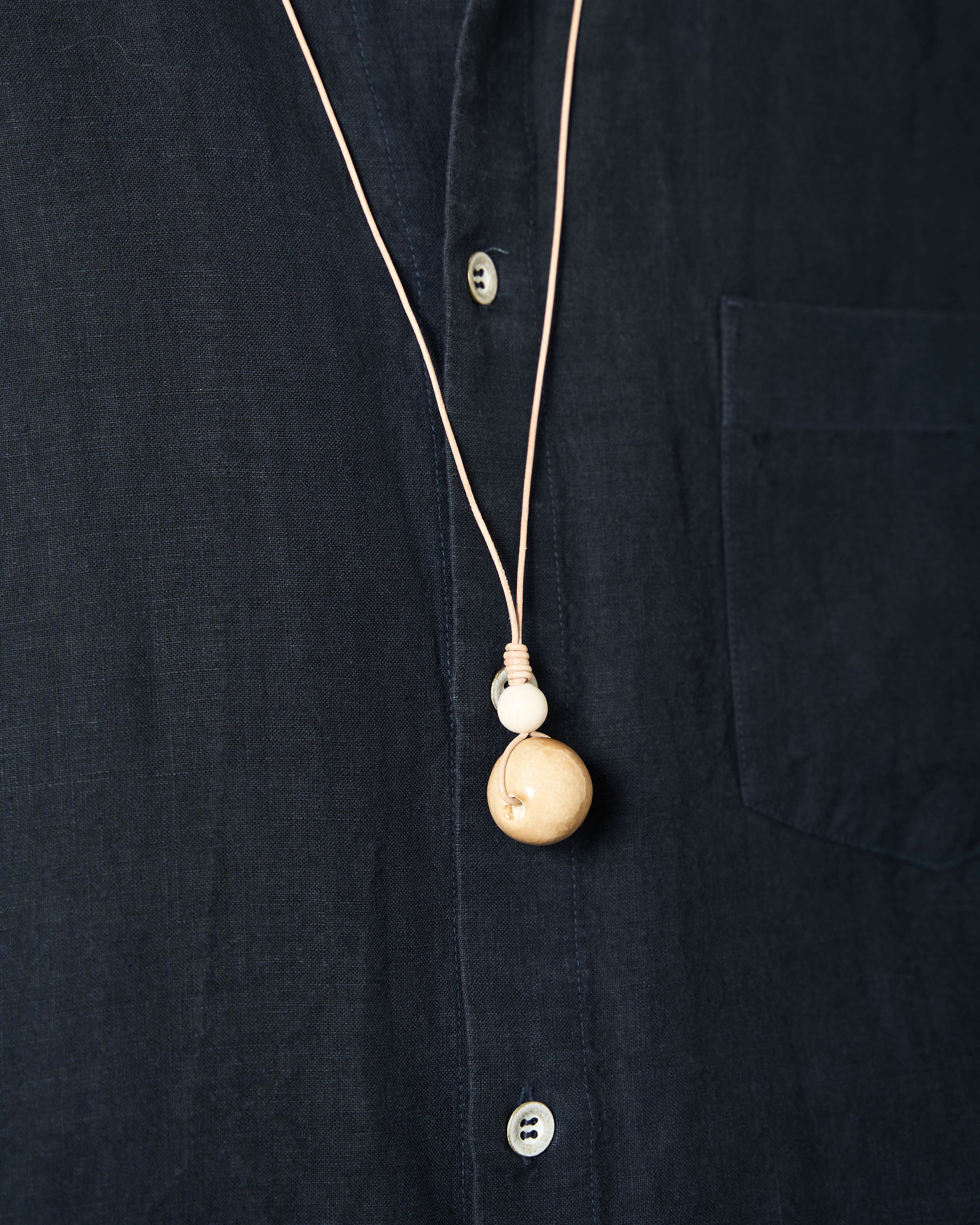 m's braque "LEATHER CORD CERAMIC&WOODS NECKLACE〔BEIGE〕"