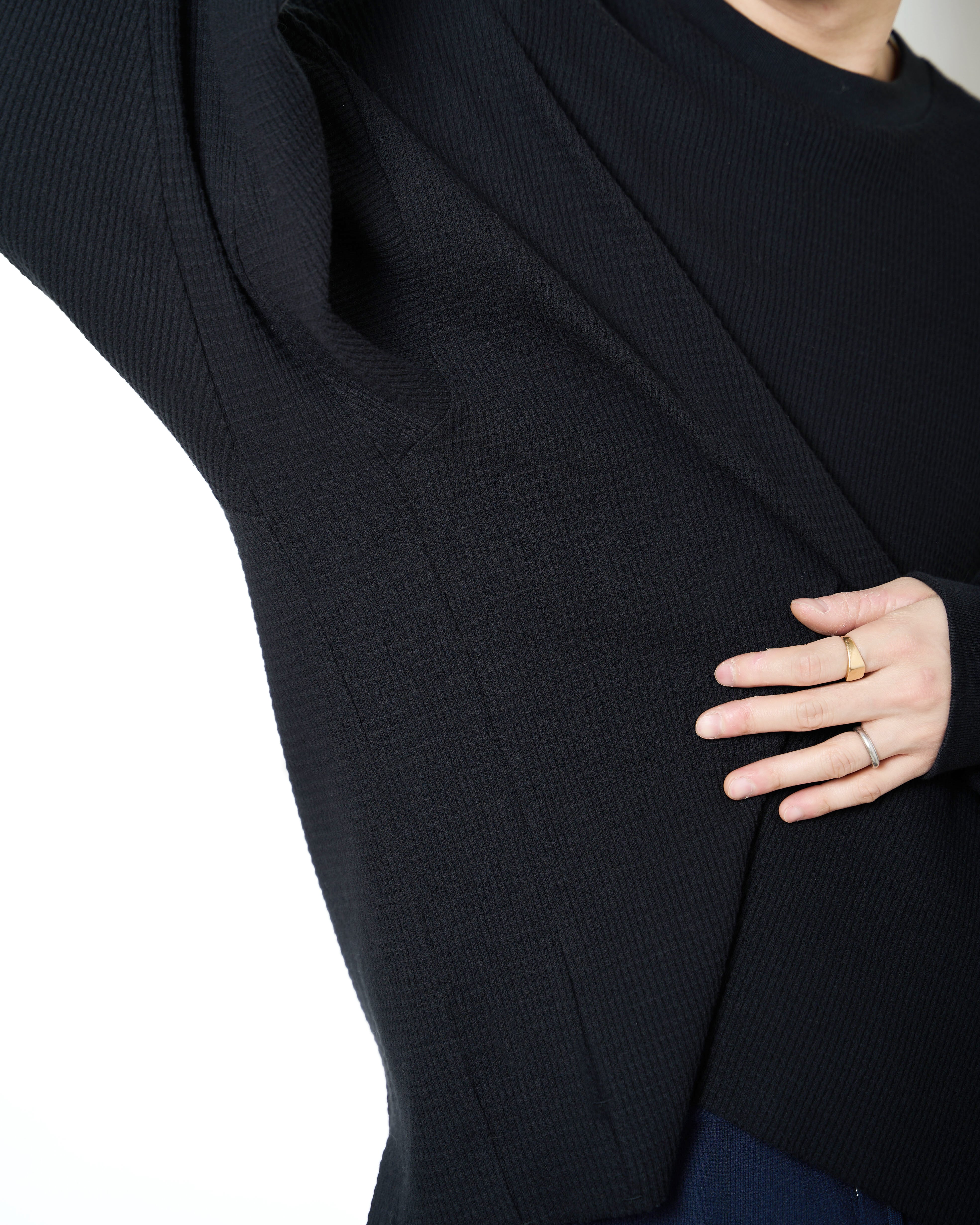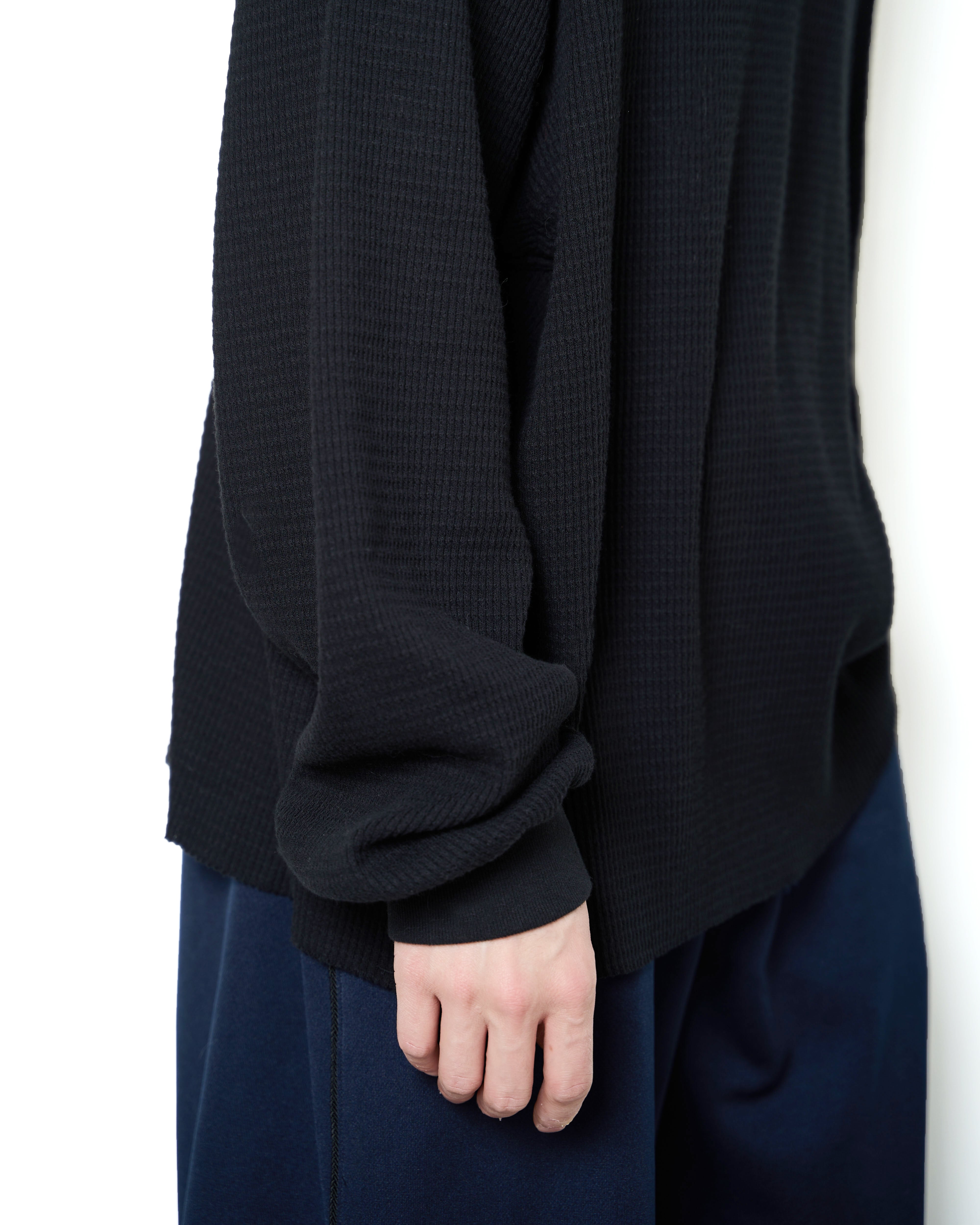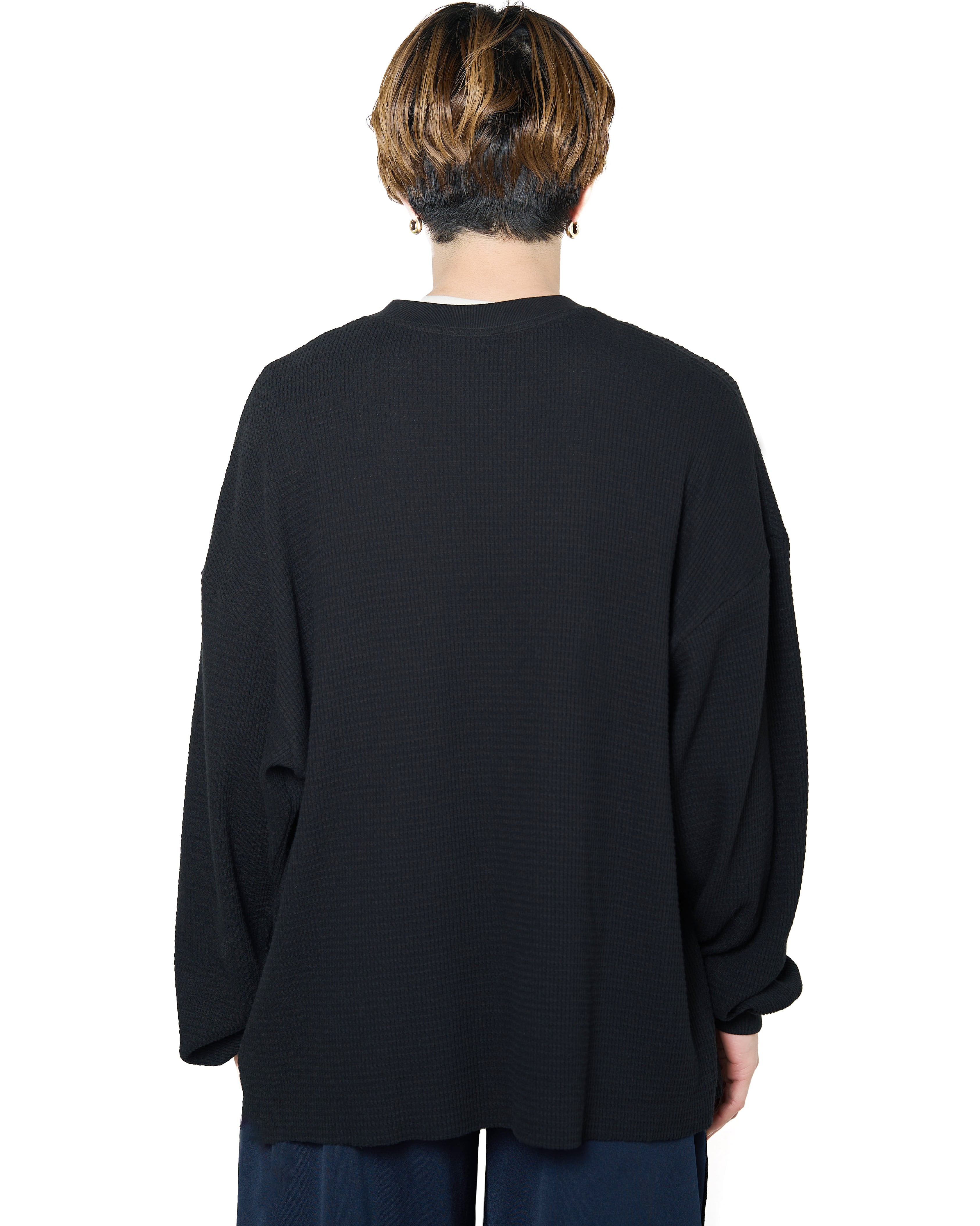柔らかく編み立てた通気性のあるオリジナルのワッフル素材を使用したロングスリーブカットソー。身幅とアームを大きめに設定したワイドシルエットで、メインにもインナーにも。
