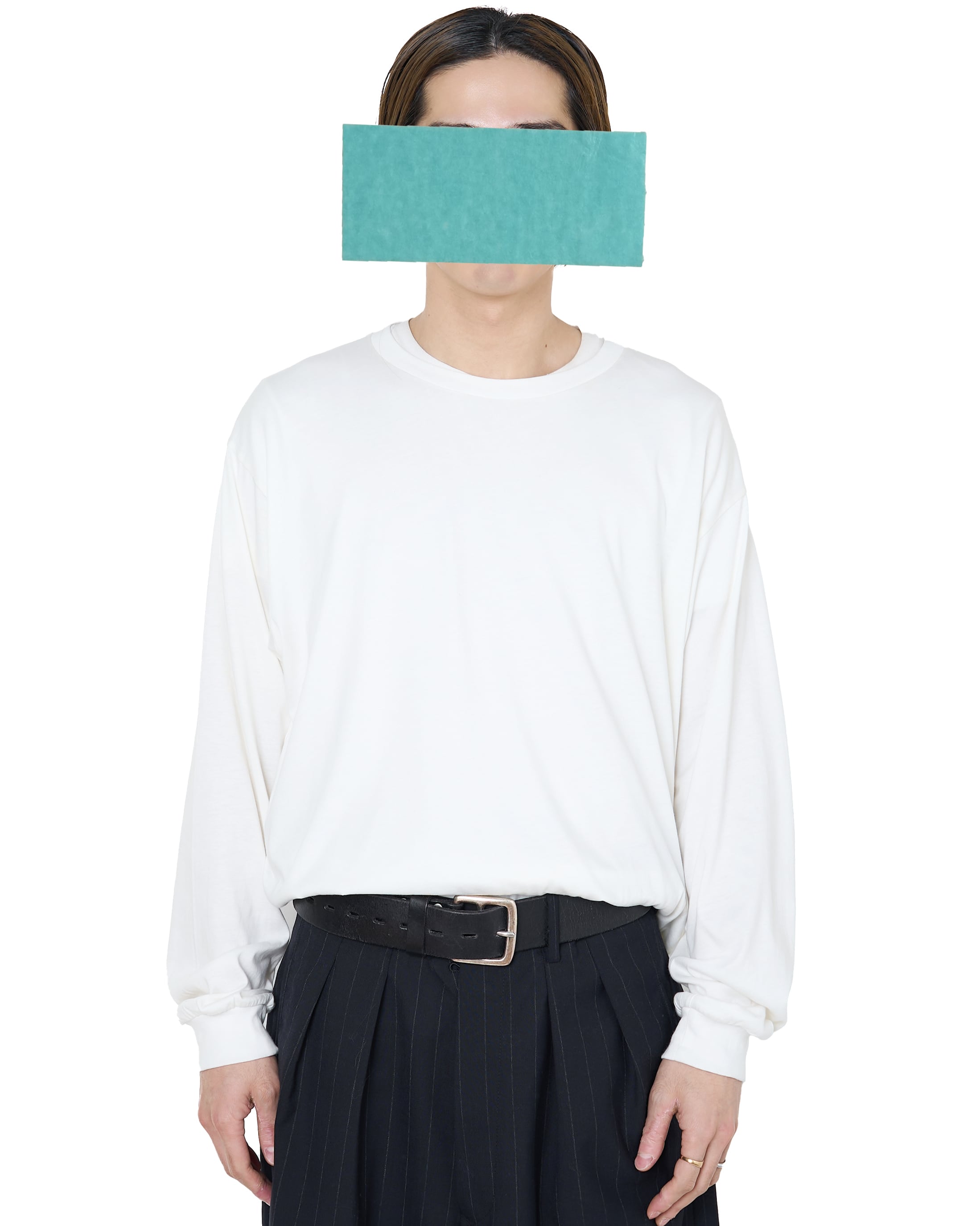 ロンTと呼ばれるものは長いこと避けていましたが、すっきりとしたサイズ感バランス、インナーとしての見え方、一枚でもさまになる面構えに惹かれてオーダーしました。