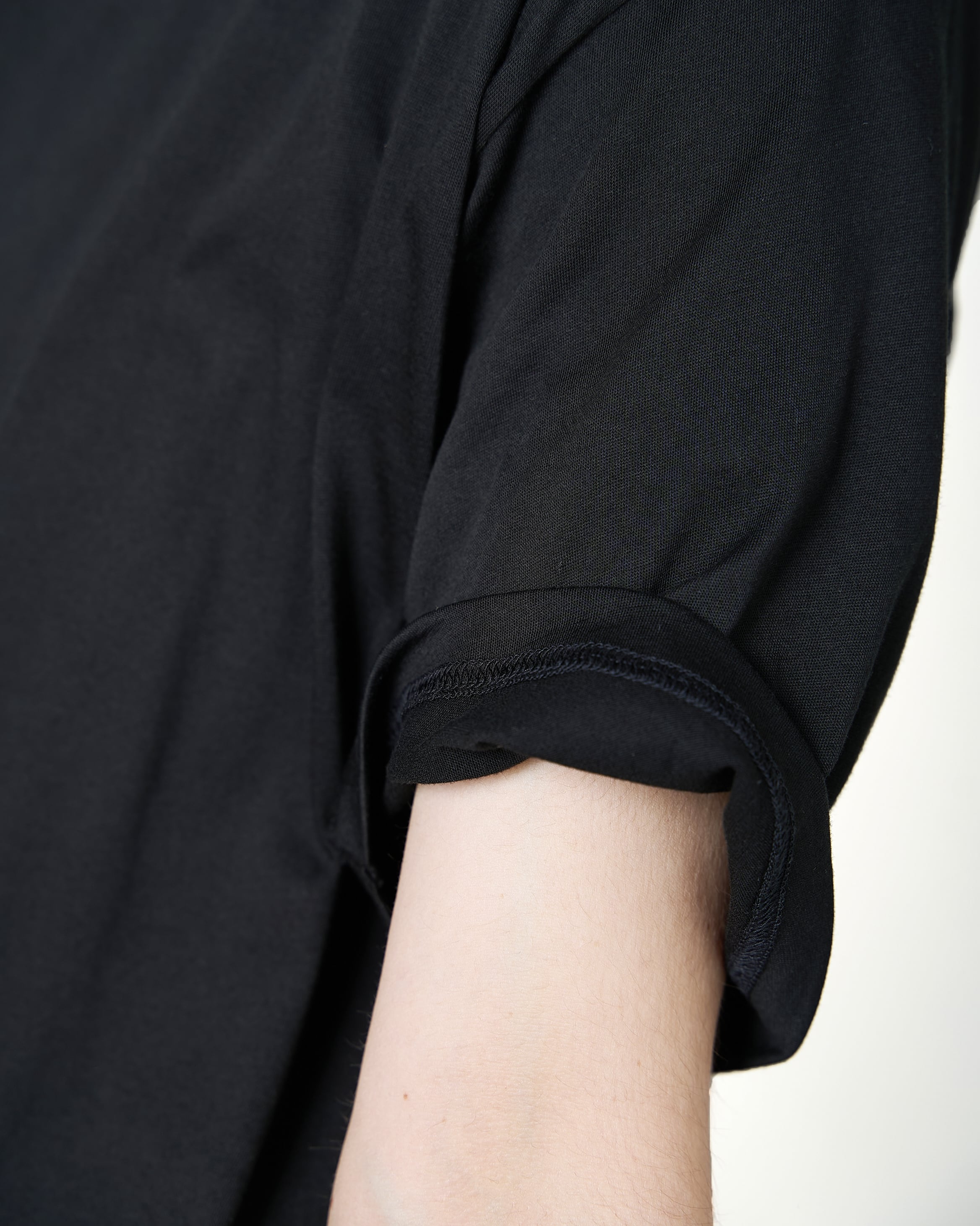 35/1で25Gで編まれた天竺素材はふわっと柔らかいタッチが魅力で、スビン独特の油分を多く含む滑らかさと柔らかさが特徴。まるでウールのような品のいい見え方に、原料の良さからくる非常に柔らかくソフトな着心地。