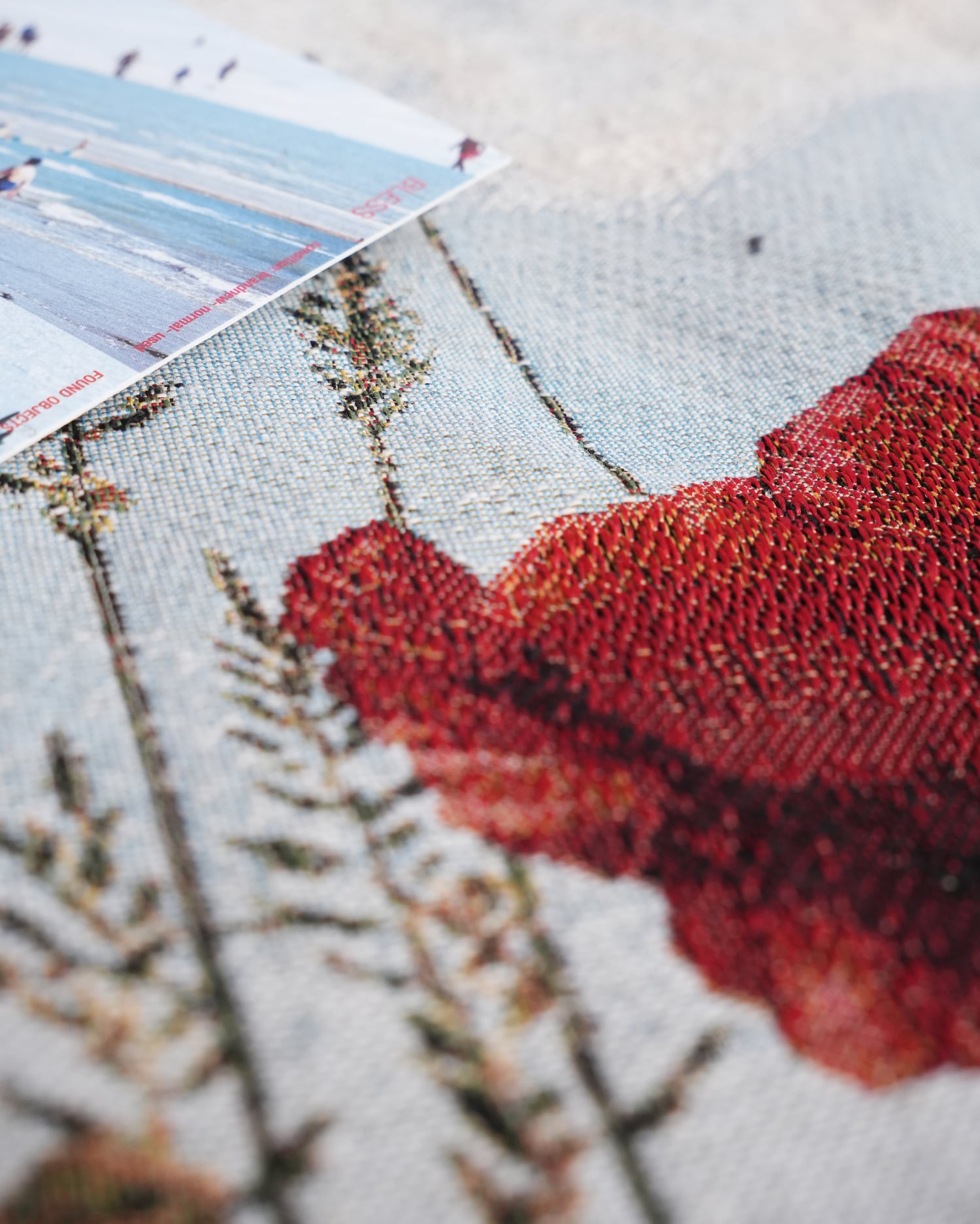 ゴブラン織りで作られたハンドバッグ。ポピーが風で靡くようなエモーショナルなデザイン。 ○Size : 縦40cm / 横33cm / 持ち手48cm Made in France Material:Polyester 65% Cotton 35% ※撮影環境や照明、お客様のお使いのモニター設定などの都合上、実際の色味とは異なる場合がございます。