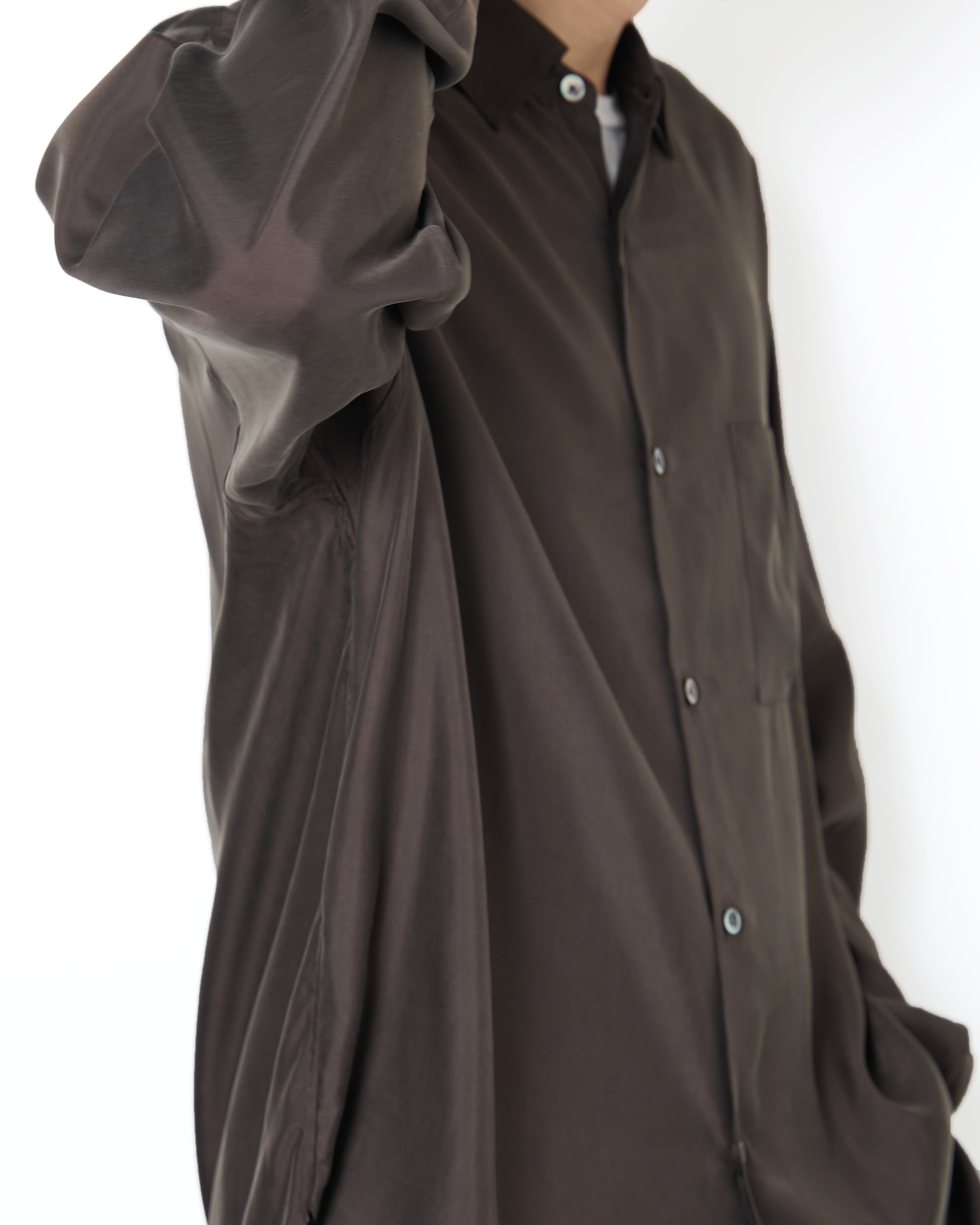 ssstein "CUPRO TWILL OVERSIZED LS SHIRT〔DARK BROWN〕"