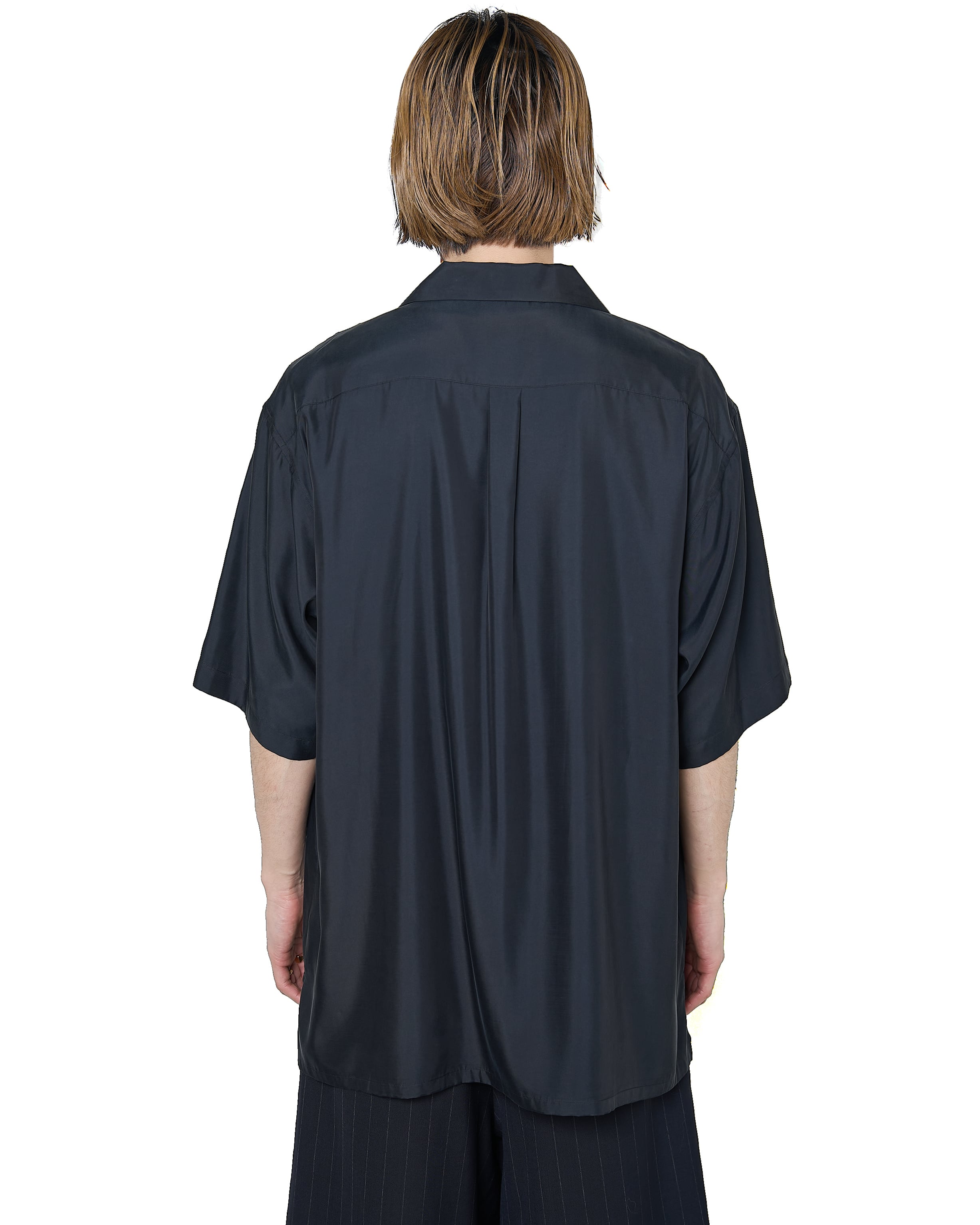 ssstein "CUPRO TWILL OVERSIZED OPEN COLLAR SS SHIRT〔BLACK〕"